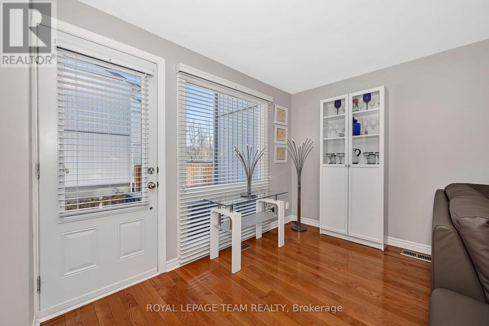 Welcome to 18C Benlea Drive, a bright and well maintained 2 storey condo townhome in a desirable central Nepean location. Ideal for first time buyers, families, or investors, this home offers a functional layout and convenient access to nearby amenities. The main floor features a spacious living and dining area with hardwood flooring, filled with natural light from large windows. The updated white kitchen offers ample cabinetry, tile backsplash, crown molding, quality stainless steel appliances, and a cozy breakfast area. Upstairs, you will find three generously sized bedrooms and a full bathroom. The primary bedroom features a large walk-in closet. The finished basement provides additional living space with a family room, 2-piece bathroom, and extra storage. Enjoy a private fenced backyard patio with access to NCC walking and biking trails. Parking is located at your doorstep with visitor parking nearby. Conveniently located close to schools, parks, transit, Algonquin College, shopping, restaurants, and Pinhey Forest. (id:64974)