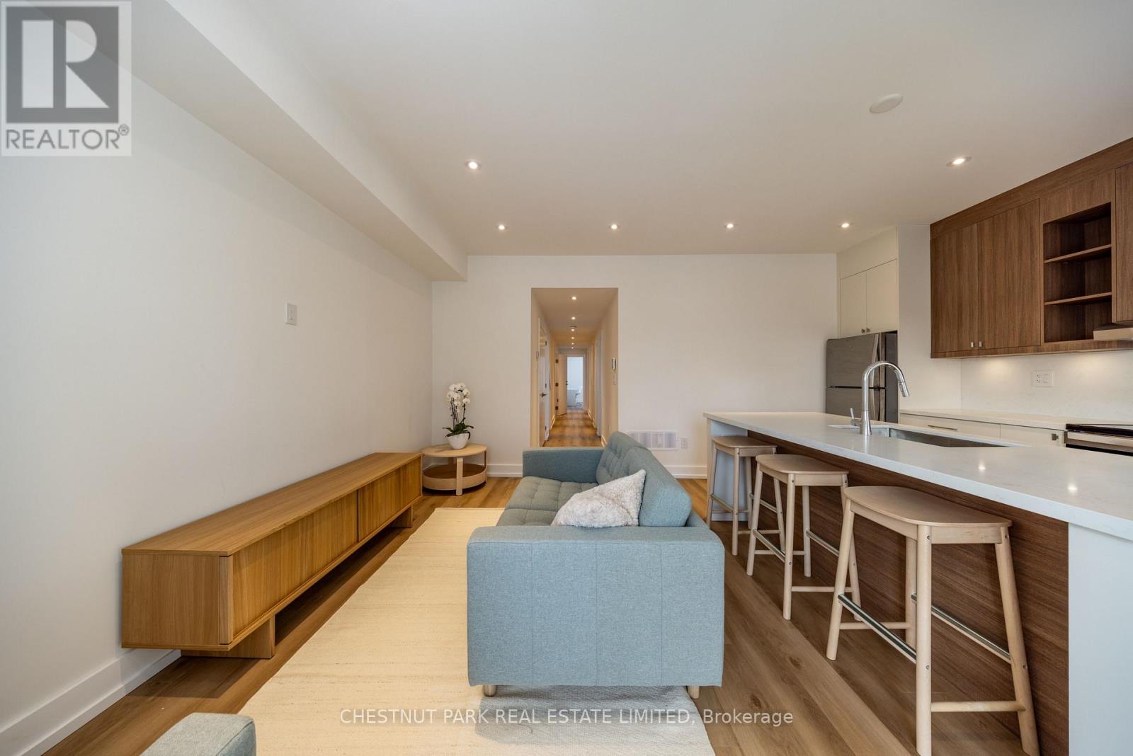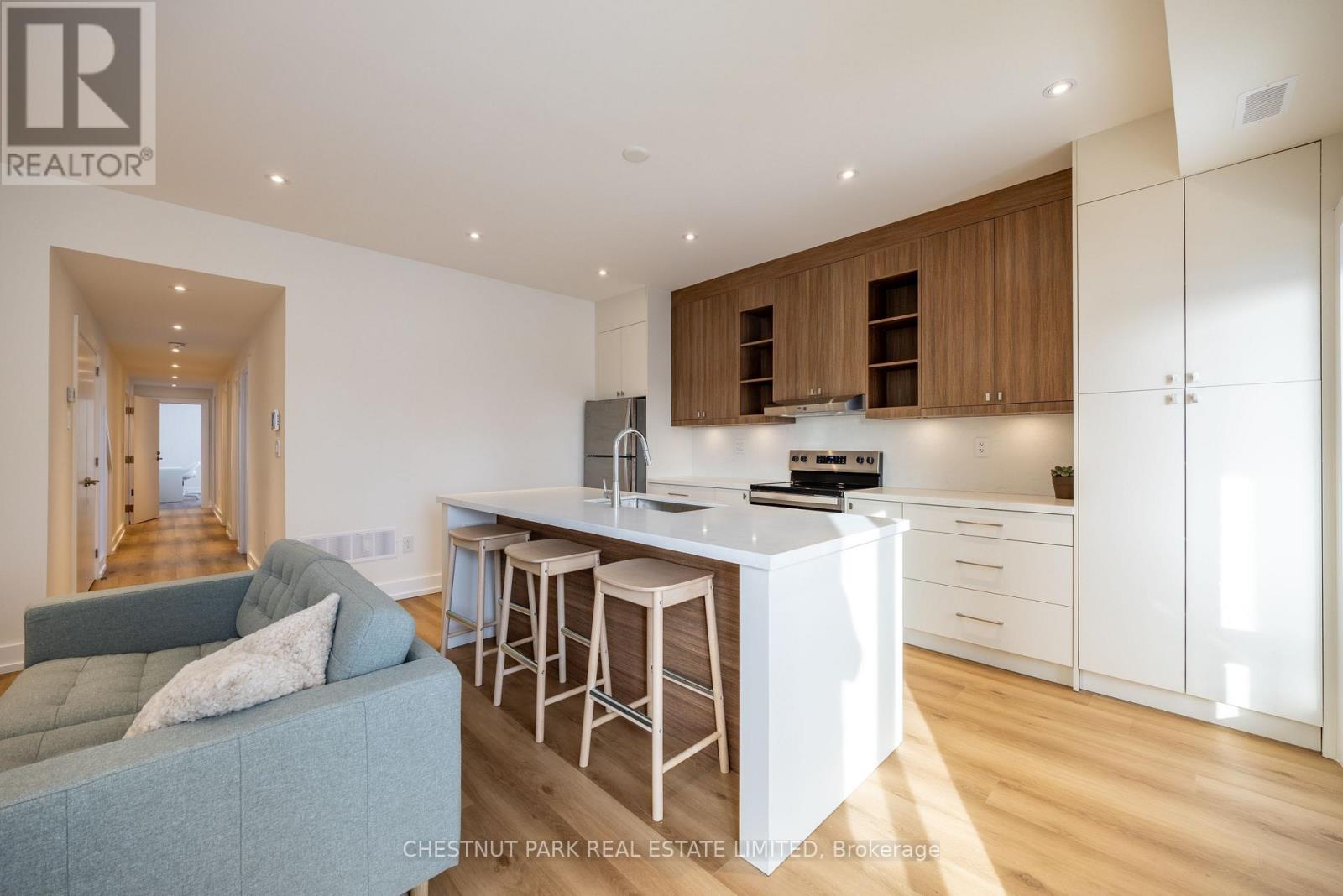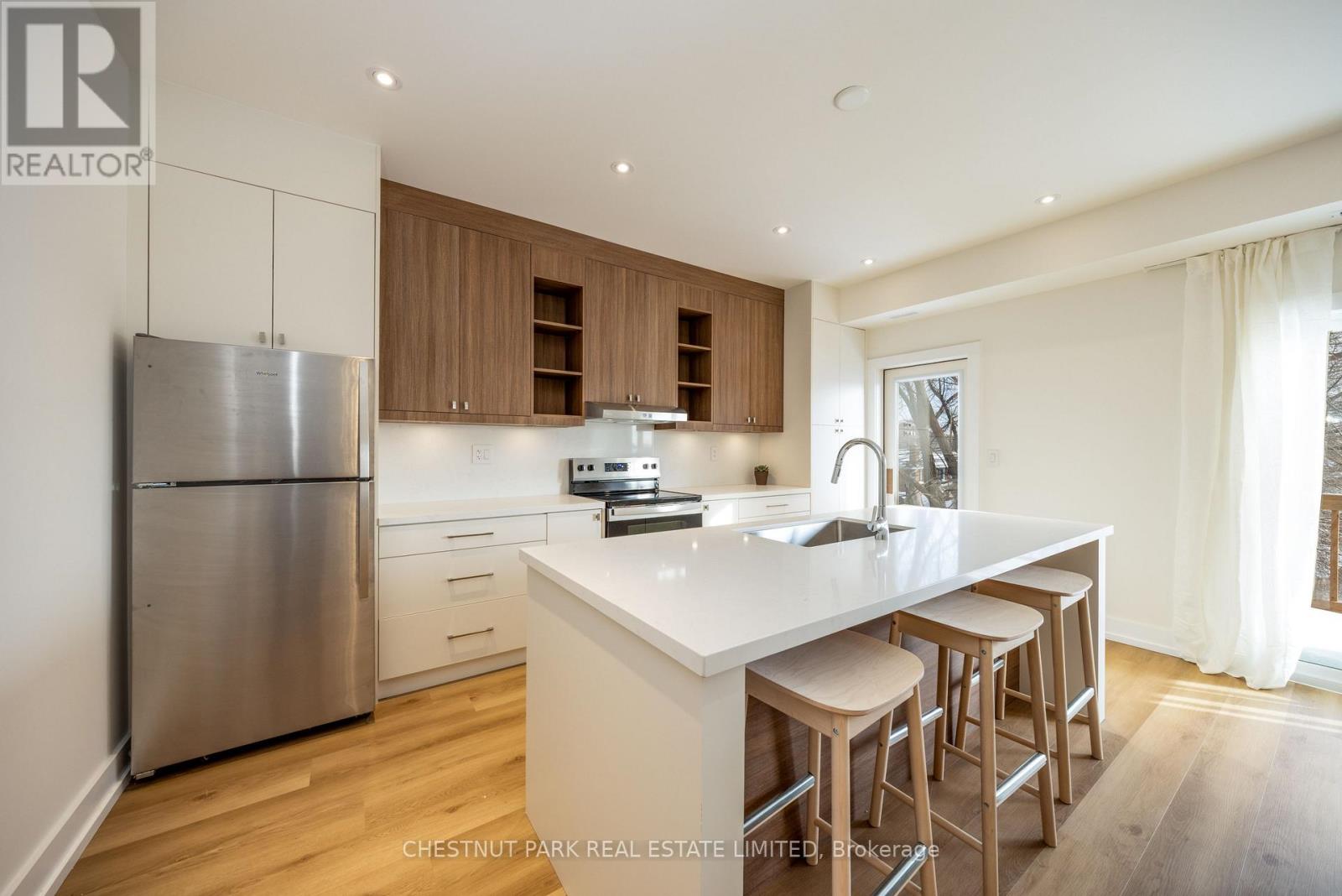 The Hatherley Collection. Experience modern urban living in this brand-new light-filled fourplex suite by the award-winning Arthaus Development, a firm known for architectural precision and luxury design-build quality. Located in Fairbank Village, this 1,041 sq ft 3 bedroom/2-bathroom executive suite plus terrace offers the privacy and quieter living environment of a boutique fourplex with luxury condo finishes. Step into this thoughtfully designed second-floor living space featuring soaring 9' ceilings and large windows with abundant natural light. Enjoy a custom chef's kitchen with full-sized stainless steel appliances, sleek cabinetry, and plenty of counter space. Bathrooms feature contemporary finishes and double sinks, while all three bedrooms include double closets for efficient storage. Built in 2025 to high energy standards, this suite includes an ensuite stacked full-size washer/ dryer, a large extra storage closet, and separately metered utilities for total control. Located in Fairbank Village, this transit-oriented home is steps from the Eglinton Crosstown LRT and within walking distance of local schools and community centres, providing a sophisticated urban lifestyle in a vibrant and rapidly evolving west-end community. Move in today and experience the best of modern, boutique urban living. (id:64974)