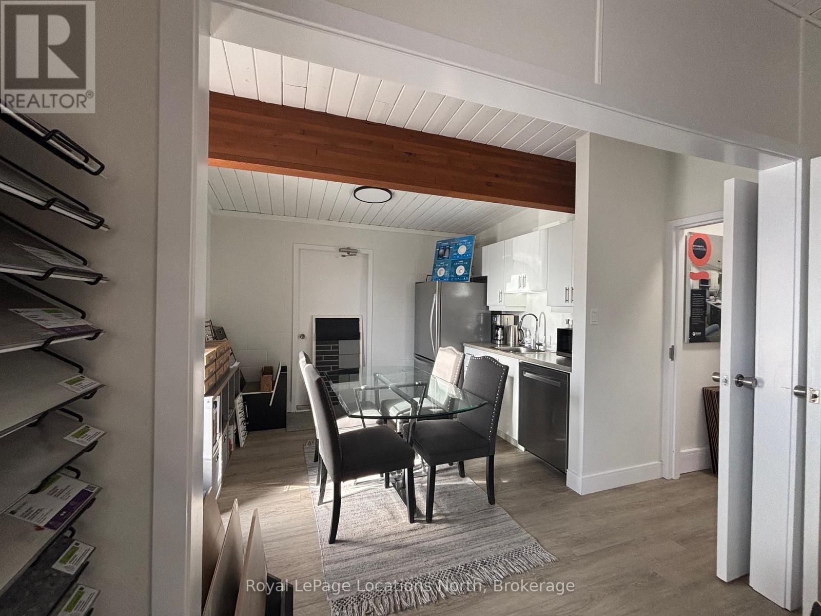 Renovated professional space in central Meaford in a building of other Professional Services. Located within walking distance to post office, banks and local shops. Large front reception/waiting area with vinyl plank flooring, two multi use rooms with windows, cabinetry and sink, a smaller private office and a 2pc washroom. Municipal Lot across the street. All utilities (hydro/gas/water) maintenance, snow removal and lawncare are in addition to the base rent at a breakdown of $525.76/month. (id:64974)