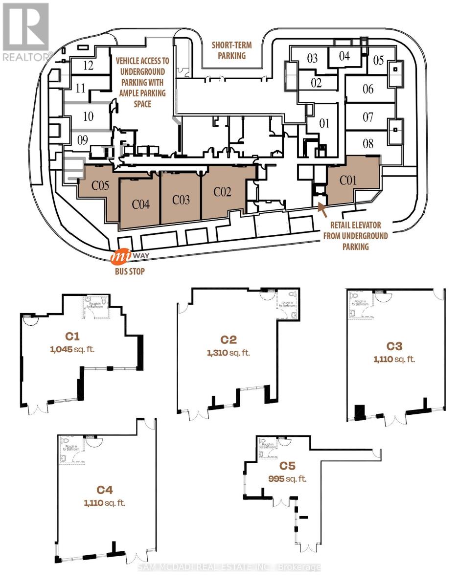 Exceptional 1,110 SF commercial space for lease at Exhale Condos, Lakeview's premier waterfront address. Can be combined with other adjacent units. Ideally positioned within one of Mississauga's fastest-growing communities, the property benefits from strong pedestrian and vehicular activity supported by affluent surrounding demographics. Located at the prominent intersection of Lakeshore Road East and Dixie Road, this high-visibility corner captures consistent exposure from both vehicular and foot traffic. The suite includes a rough-in bathroom and is delivered as a clean canvas, ready for your vision and customized build-out. Developed by Brixen Developments, the space features contemporary architecture with expansive glazing, soaring ceiling heights, and premium finishes designed to elevate the customer and client experience. Situated within a designated Major Transit Station Area, the location offers excellent connectivity with MiWay transit steps away, Long Branch GO Station under 1 km, and proximity to planned rapid transit improvements along the Lakeshore corridor. Anticipating significant transformation through the Lakeview Village master-planned community, the trade area is supported by approximately 105,000 residents within 3 km, average household incomes exceeding $94,000, and projected population growth of 15 percent. The property offers generous on-site parking with both at-grade visitor spaces and secure underground parking. Flexible RA-5 zoning permits a wide range of uses including wellness and spa services, medical practices, retail, and professional offices. Ideal for aesthetics or beauty spas, physiotherapy or massage therapy clinics, yoga or fitness studios, boutique retail, or medical users. Occupancy anticipated Q1 2027. (id:64974)