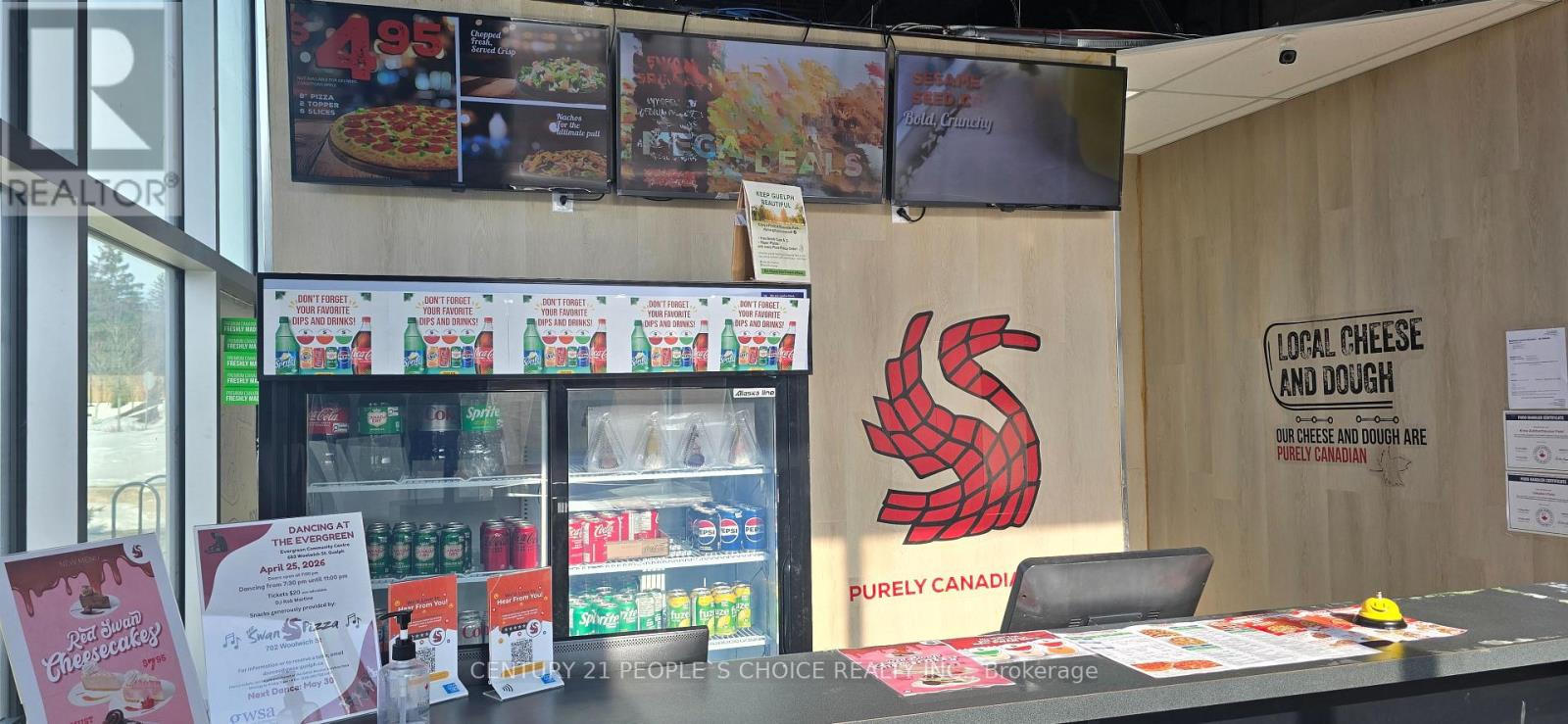 Red Swan Pizza franchise for sale in Guelph, located in a busy plaza with strong visibility and steady customer traffic. This fully equipped and operational location features a modern buildout, established branding, and a loyal local customer base. Red Swan Pizza is a fast-growing franchise known for its unique menu and strong franchise support, making this an excellent opportunity for an owner-operator or investor looking to step into a ready-to-run pizza business. This opportunity comes with a long-term lease of 8.5 + 5 + 5 years, with rent approximately $3,497.08/month + TMI. Retail area of 1,199 square feet (id:64974)
