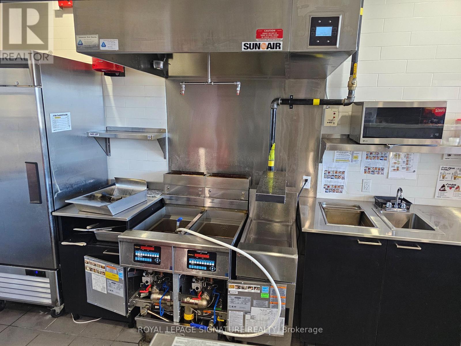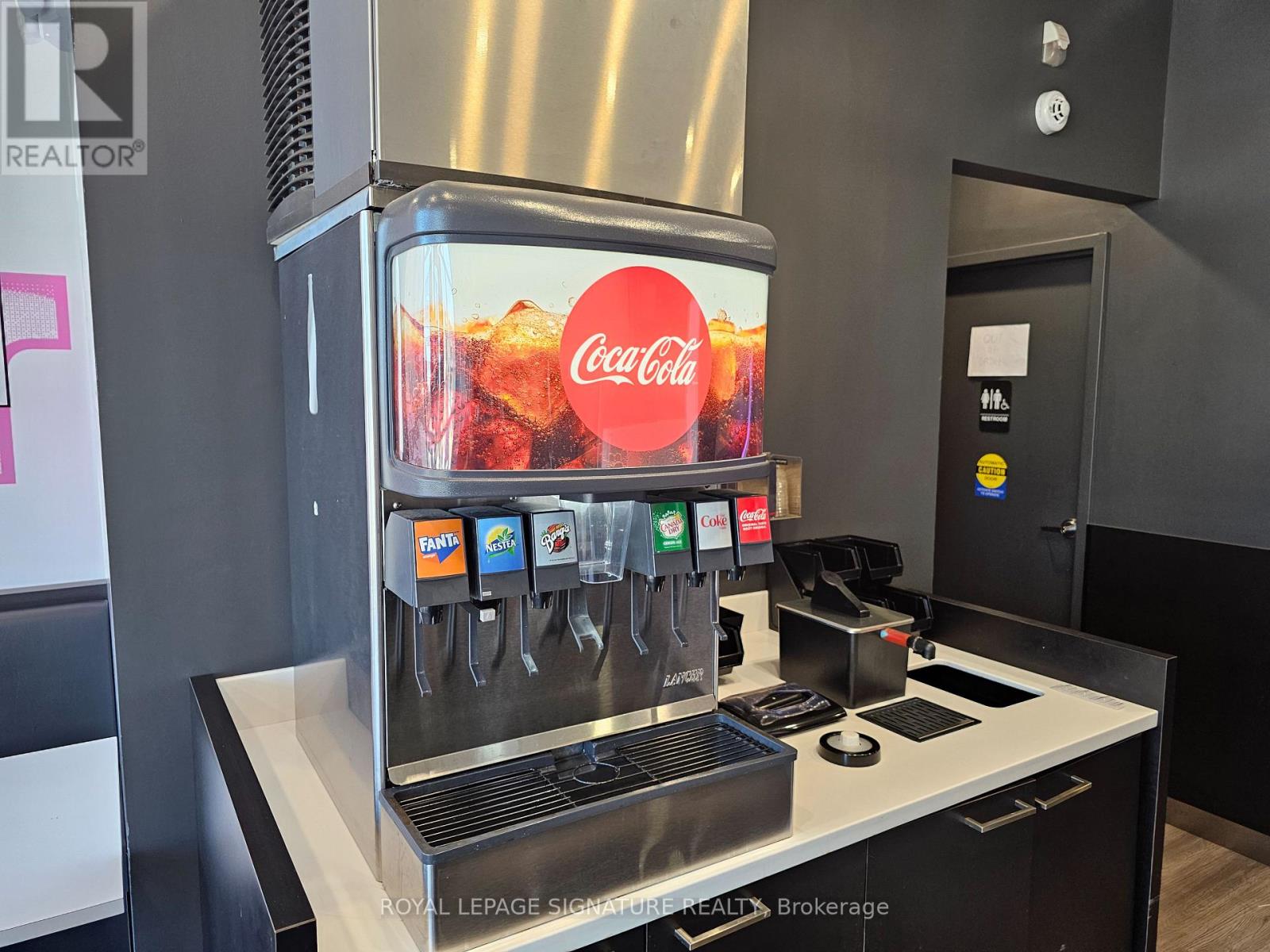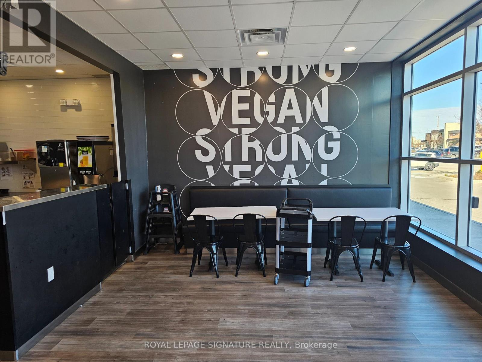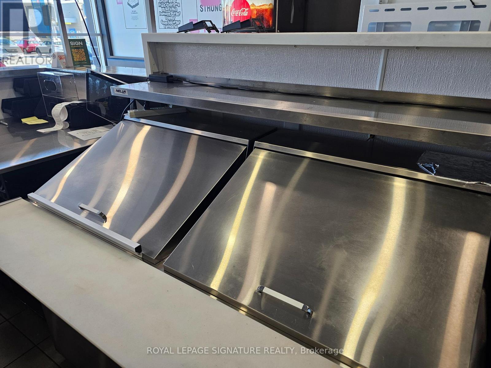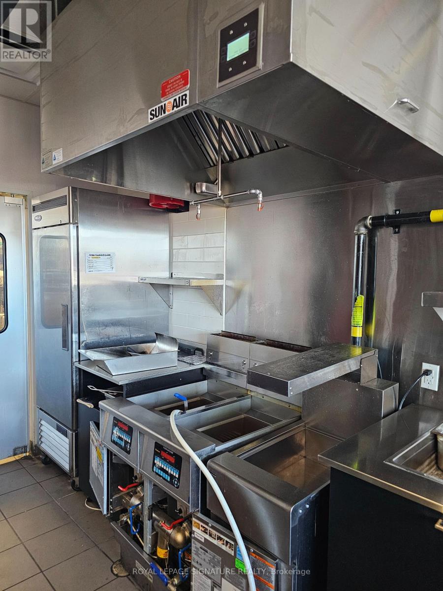 Turnkey quick service restaurant opportunity available for rebranding in a high-traffic plaza on Ritson Road in Oshawa. This efficient QSR setup is ideal for operators looking to introduce a new concept, cuisine, or franchise into a well-established commercial node. The space is fully equipped with a commercial hood, two walk-ins (fridge + freezer), and a stream lined layout with seating for 16. The plaza offers excellent visibility, abundant signage, and over100 parking spaces to support both dine-in and takeout traffic. An attractive gross rent of$4,449 including TMI, paired with a long remaining term of 7 + 5 + 5 years, makes this an outstanding opportunity for a wide range of foodservice operators. Please do not go direct or speak with staff. (id:64974)