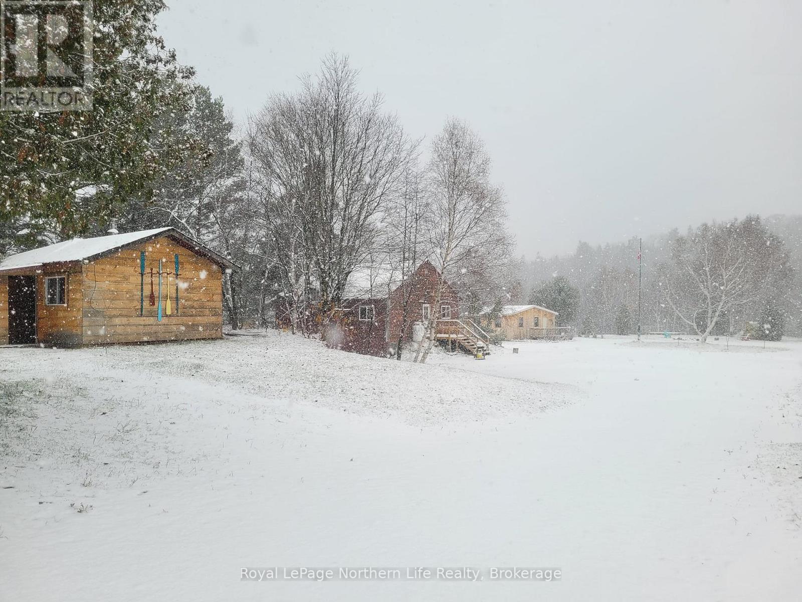 Discover Bull Lake Outfitters, an off-grid retreat set on 5.5 acres just 32 km north of Massey, Ontario. The property features approximately 525 meters of waterfront on Bull Lake and includes a private boat launch, offering excellent access to the water for boating, fishing, and recreation. The property includes six winterized cabins, each accommodating 4-6 guests, with flexible options to host larger groups when needed. Cabins are equipped with wood stoves, propane appliances, and generator hookups for comfortable off-grid living year-round. A central main lodge offers an open living and dining area with a large stone fireplace, making it a natural gathering space for meals, meetings, or relaxing after a day outdoors. Shower and washroom facilities are available, along with traditional outhouses. The surrounding area provides year-round outdoor activities including fishing, kayaking, hiking, and snowmobiling. Suitable as a private retreat, family compound, or hospitality venture, Bull Lake Outfitters offers waterfront access, established buildings, and strong potential for continued use as a getaway destination. The owner will consider special pricing if this property is purchased together with the adjoining lot located across the road. (id:64974)