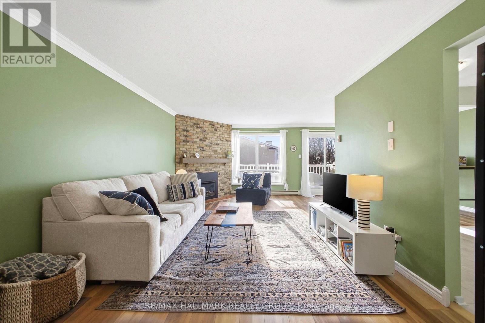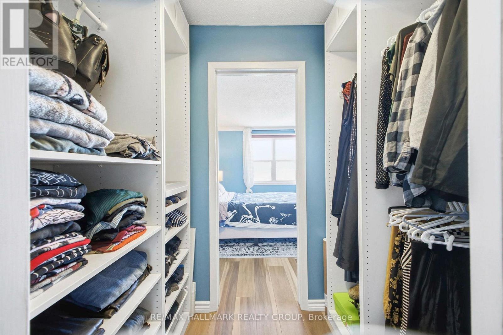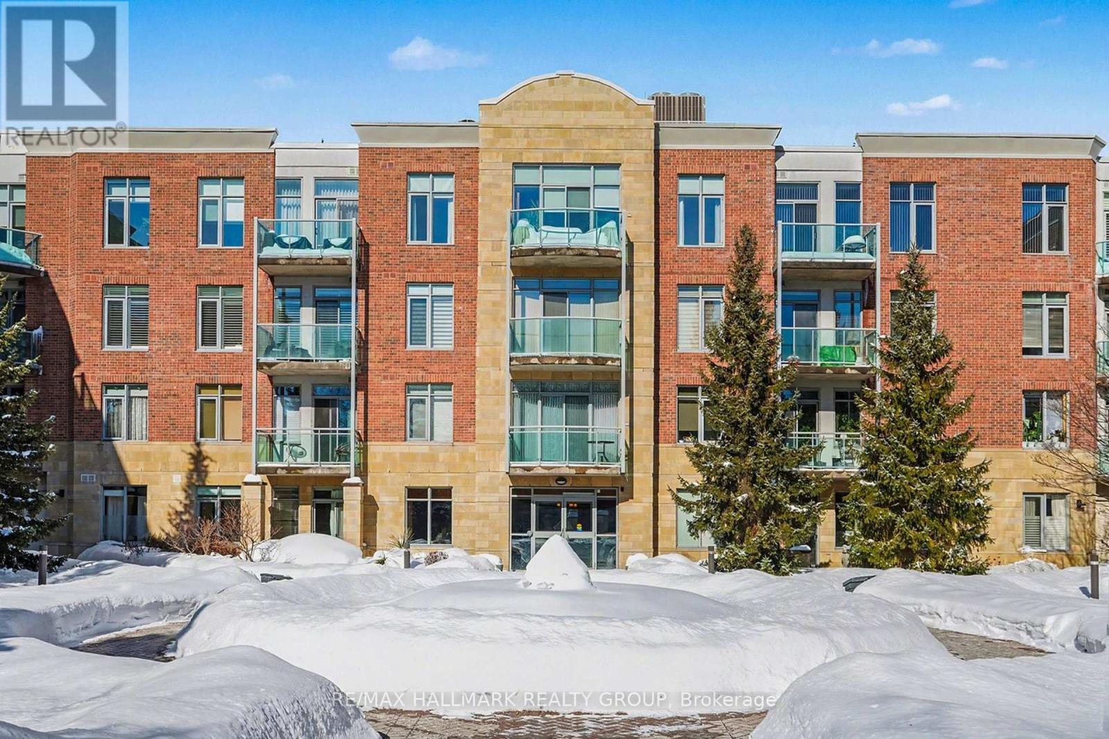 Welcome to this beautifully updated 2-bedroom, 2-bath second-floor end unit in the heart of Kanata's sought-after Bridlewood community. This move-in-ready home has been thoughtfully refreshed throughout, featuring fresh paint across the bedrooms, main living area, kitchen and ceilings, complemented by elegant crown moulding. The bright, functional kitchen was upgraded with new tile flooring (2026) and a stylish bar-top addition, perfect for casual dining and entertaining. The open-concept living and dining areas are warmed by a cozy fireplace and lead to a large private balcony overlooking quiet treed pathways and the community's outdoor inground pool, an ideal spot to unwind. The spacious primary bedroom offers a private ensuite and custom PAX storage, providing excellent organization and added functionality. A full 4-piece main bath, in-unit laundry, and ample storage complete the interior. Enjoy the convenience of one private garage parking space plus two surface parking spaces, along with plenty of visitor parking. Located just steps from Bridlewood Plaza, public transit, parks, walking paths, recreation facilities, schools, and everyday shopping, this home offers outstanding walkability and easy access to everything Kanata has to offer. A turnkey opportunity in a quiet, well-managed community, perfect for first time buyers or downsizers looking to move in and enjoy immediately. (id:64974)
