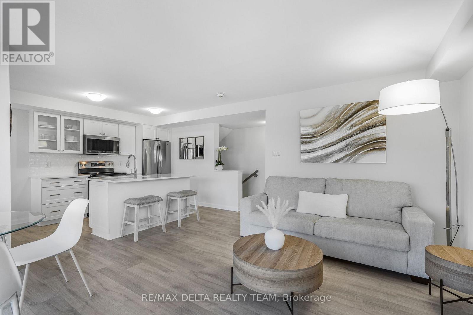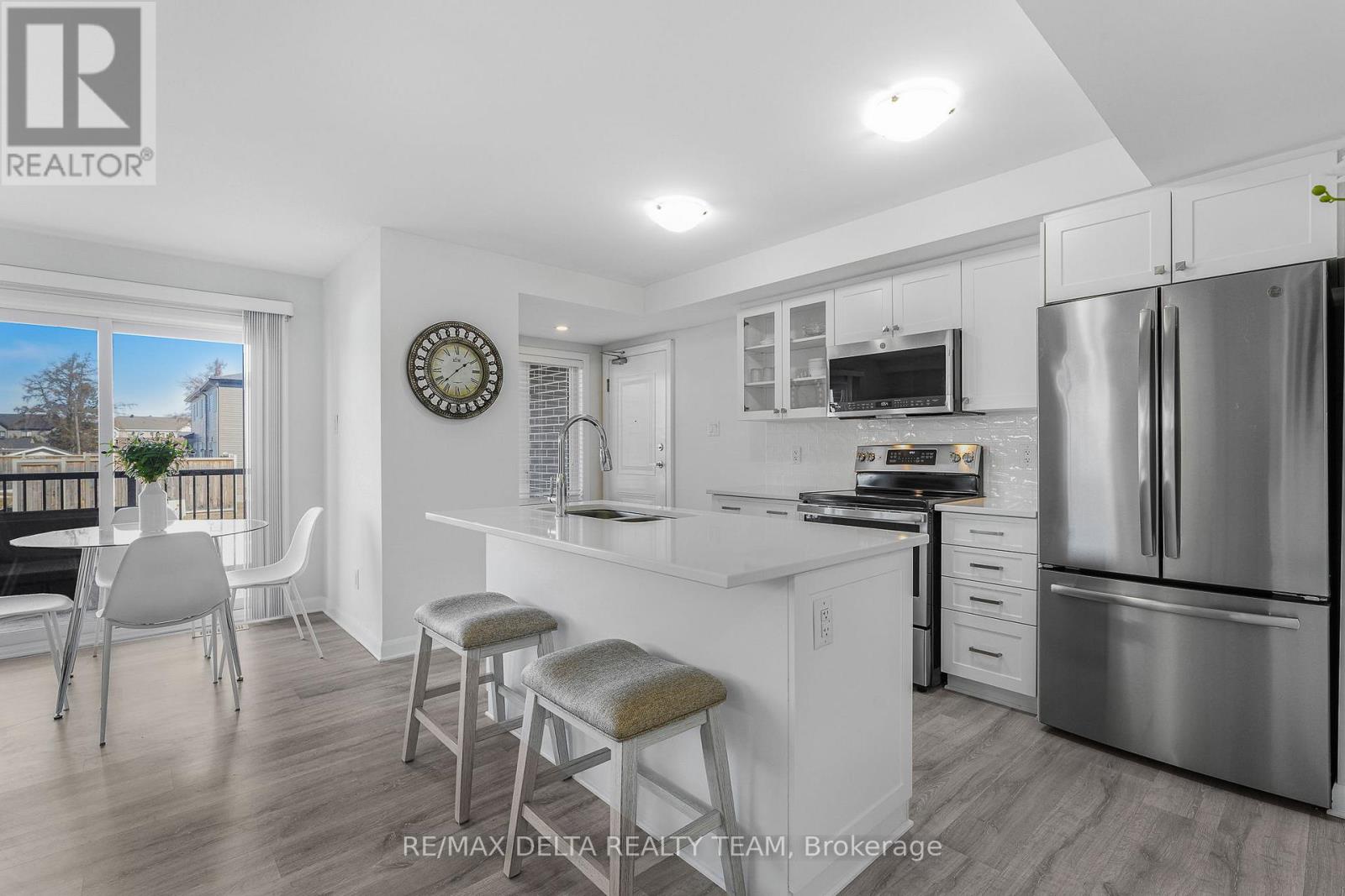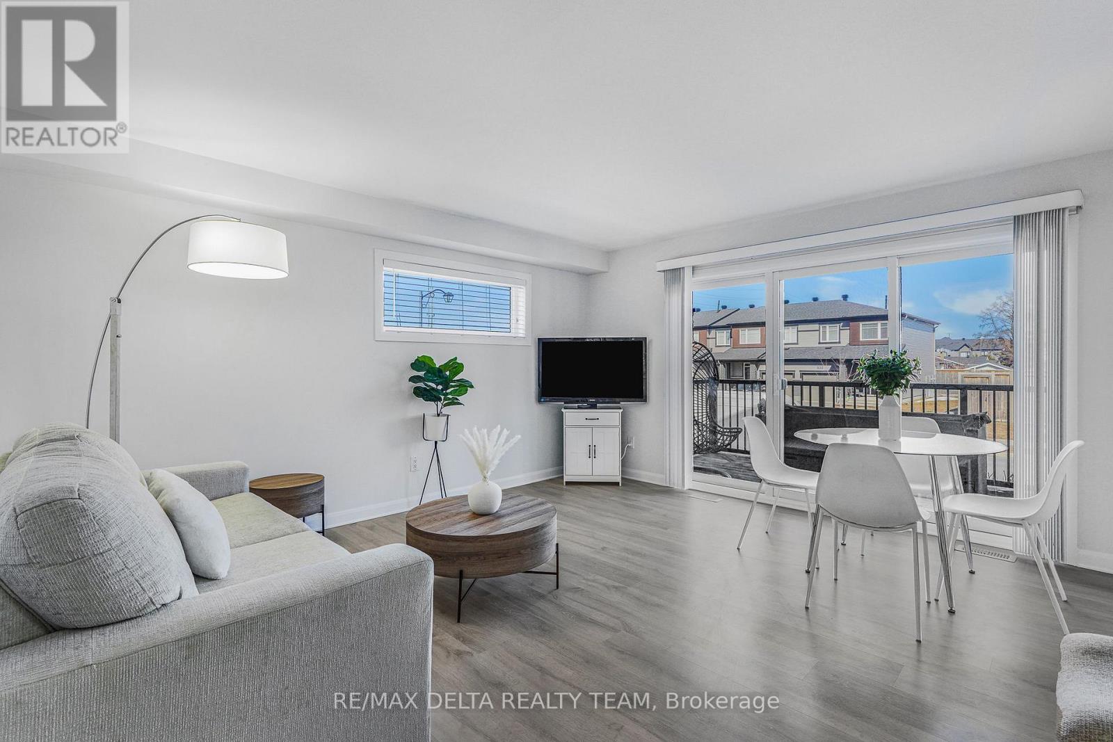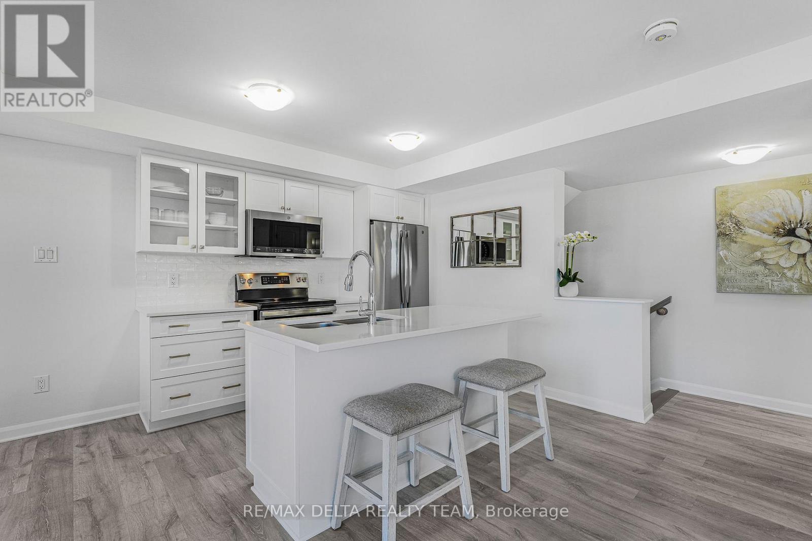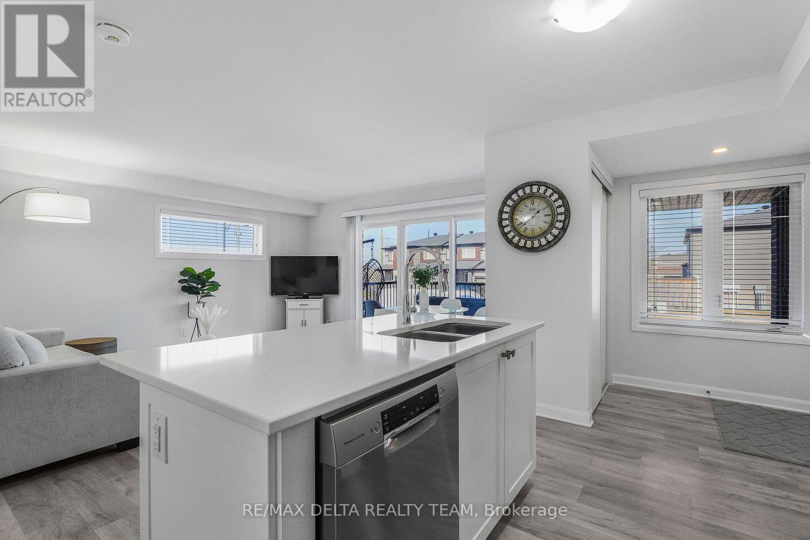 Welcome to this beautifully maintained and immaculate lower-level terrace home offering comfort, style, and exceptional value. This bright 2-bedroom unit features a well-designed open-concept layout with a spacious living and dining area, perfect for both everyday living and entertaining. The kitchen is both functional and stylish, showcasing quartz countertops and elegant glass cupboard doors, with ample cabinetry and workspace. Pride of ownership is evident throughout, with durable laminate flooring on both the main and lower levels, and cozy carpeting on the stairs for added comfort. The lower level offers two generously sized bedrooms with large windows, a full bathroom with quartz counters, and convenient in-unit laundry. Step outside to a large private deck that can easily accommodate patio furniture-ideal for relaxing or entertaining. Enjoy the added benefit of a tankless hot water system and very low condo fees of just $245.81/month, helping keep ownership affordable. Parking #5. Located in a desirable neighbourhood close to parks, schools, shopping, transit, and all amenities, this home is perfect for first-time buyers, downsizers, or investors. A true turnkey opportunity-move in and enjoy! (id:64974)