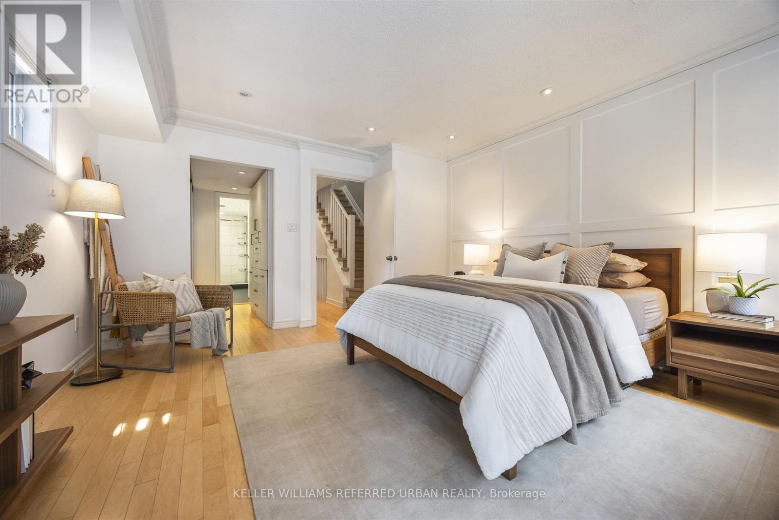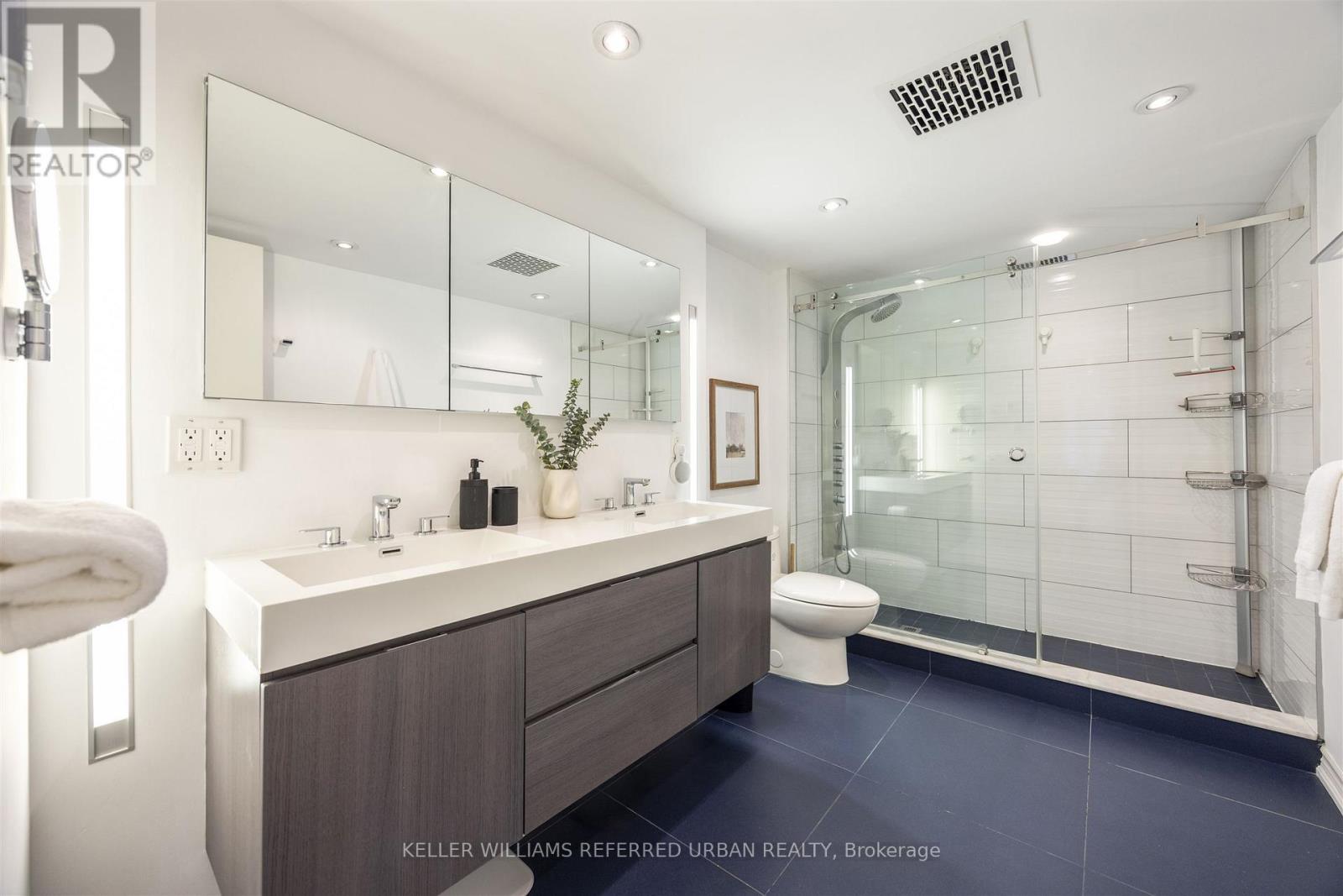 Rarely Offered for Sale. Designer-renovated 4-bedroom 3-bath end-unit condo townhouse offering approximately 1,917 sq. ft. of thoughtfully designed living space across three levels. Includes one underground parking space and a storage locker.Turnkey and upgraded throughout, this home features a modern kitchen with high-end stainless steel appliances, ample cabinetry, generous counter space, and excellent natural light. The open-concept living and dining area is anchored by a wood-burning fireplace and walks out to a private deck with access to a quiet community courtyard. A main-floor powder room adds everyday convenience.The second level offers a spacious primary retreat with balcony, custom built-ins, ensuite bathroom, and direct access to laundry. An additional bedroom on this level is ideal for a nursery or home office. The third floor includes two well-sized bedrooms and a full bath. Custom built-in closets and integrated smart-home features enhance comfort and functionality throughout.Located on a quieter street in the heart of vibrant King and Queen West - just steps to Trinity Bellwoods Park, Ossington Avenue, cafés, restaurants, boutique shopping, groceries, outdoor tennis courts, Liberty Village, and transit. Walk Score 97. (id:64974)