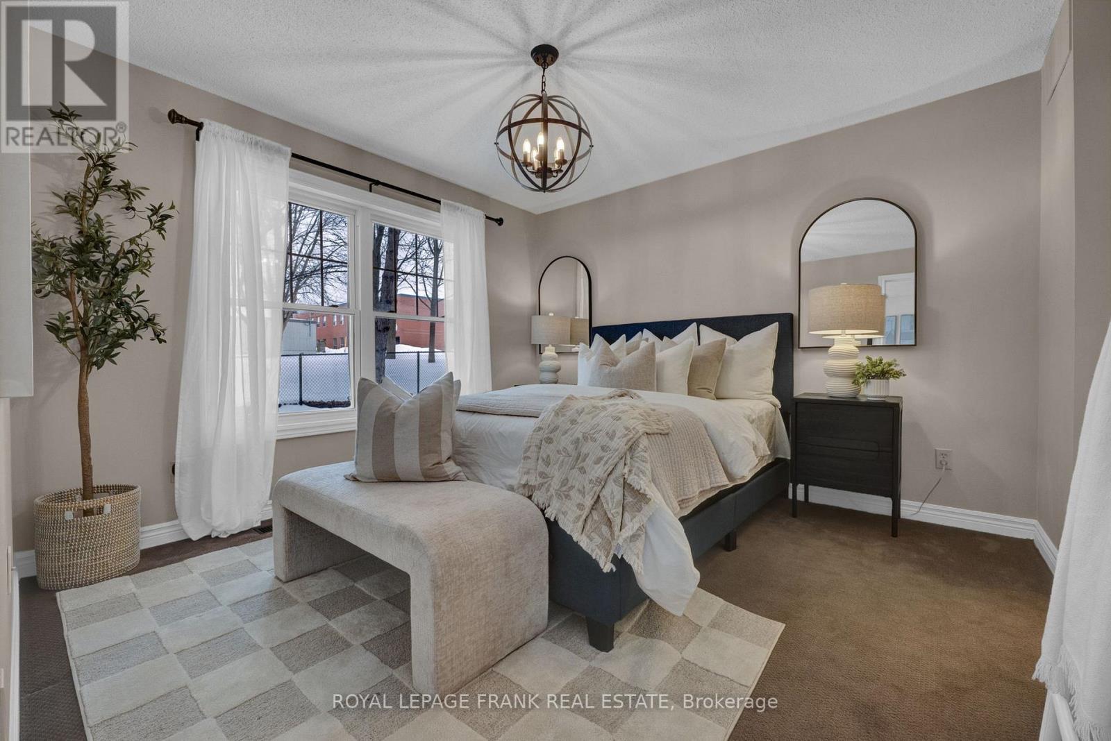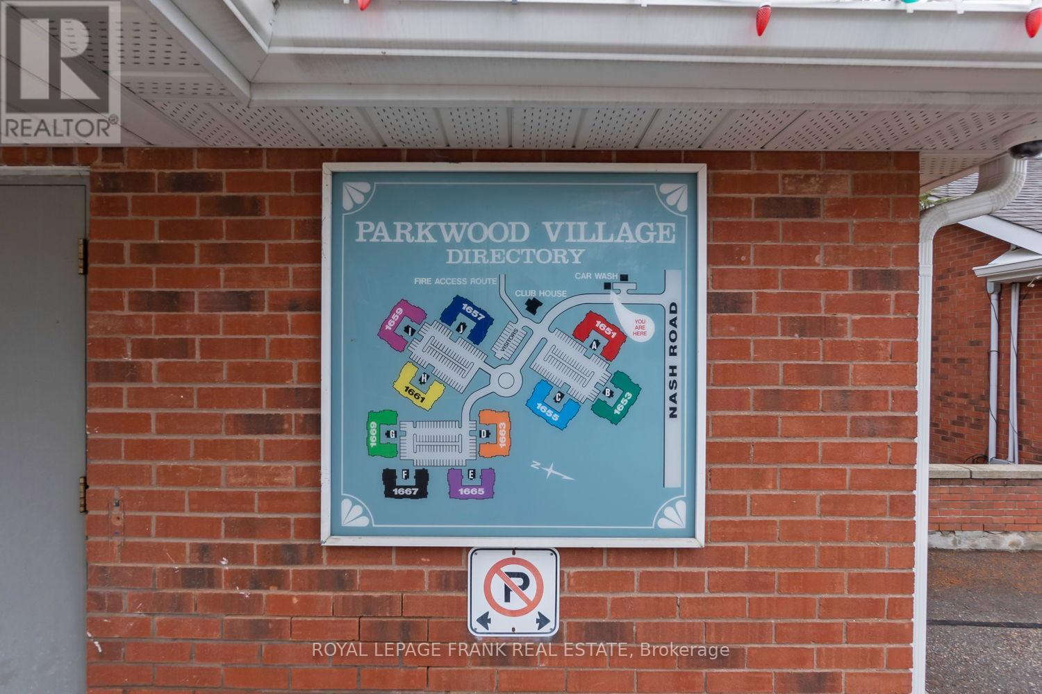 Welcome to this beautifully maintained ground floor 2-bedroom bungalow condo in desirable Parkwood Village. This bright and inviting unit features hardwood flooring in the main living and dining areas and double garden doors with walk-out to a private interlock patio overlooking green space. The spacious primary bedroom offers a walk-in closet and convenient semi-ensuite access. The updated bathroom includes a glass shower. This well-appointed layout provides comfortable, stair-free living and shows beautifully throughout. Enjoy a worry-free lifestyle with access to fantastic amenities including tennis courts, party room, car wash and beautifully maintained grounds. Ideally located within walking distance to public transit, elementary and secondary schools, restaurants, shopping and recreation centre. Just minutes to Hwy 401, 407 and 418 for easy commuting. Move-in ready and perfect for downsizers, first-time buyers or anyone seeking low-maintenance living in a prime Courtice location. (id:64974)