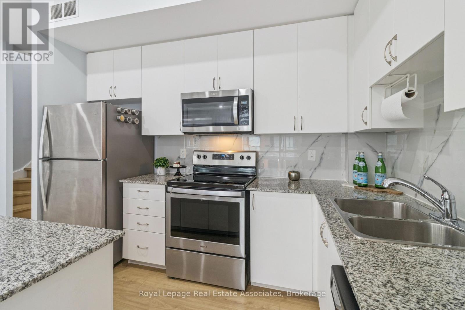 Discover modern living in this beautifully maintained 3-level stacked townhome featuring 2 bedrooms and 3 bathrooms. Designed with a bright open-concept layout and contemporary finishes, this home offers two balconies and a rare oversized private terrace-perfect for entertaining or unwinding outdoors. Highlights include pot lights, granite kitchen countertops, and a stylish backsplash. Ideally situated near shops, cafés, bakeries, transit, and major highways, offering both convenience and lifestyle. A perfect opportunity for first-time buyers or professionals seeking low-maintenance living in a prime location. (id:64974)