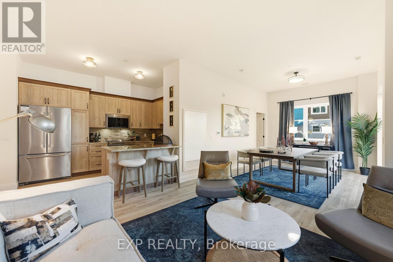 Bright and modern, this 2-bedroom, 2-bath unit in the sought-after Johanne's Gardens community of Carleton Place offers comfortable and stylish living. The open-concept living and dining area is filled with natural light from large windows, while the kitchen features elegant granite countertops. The primary bedroom boasts a private ensuite bathroom, while the second bedroom offers convenient Jack-and-Jill access to the full bathroom. Additional highlights include a private balcony, in-unit laundry, and access to high-end amenities such as a games lounge, yoga studio, indoor pool, fitness centre, and a tranquil communal garden and courtyard. Ideally located close to shopping, dining, and stunning outdoor spaces, this unit combines convenience with a vibrant community lifestyle. (id:65010)