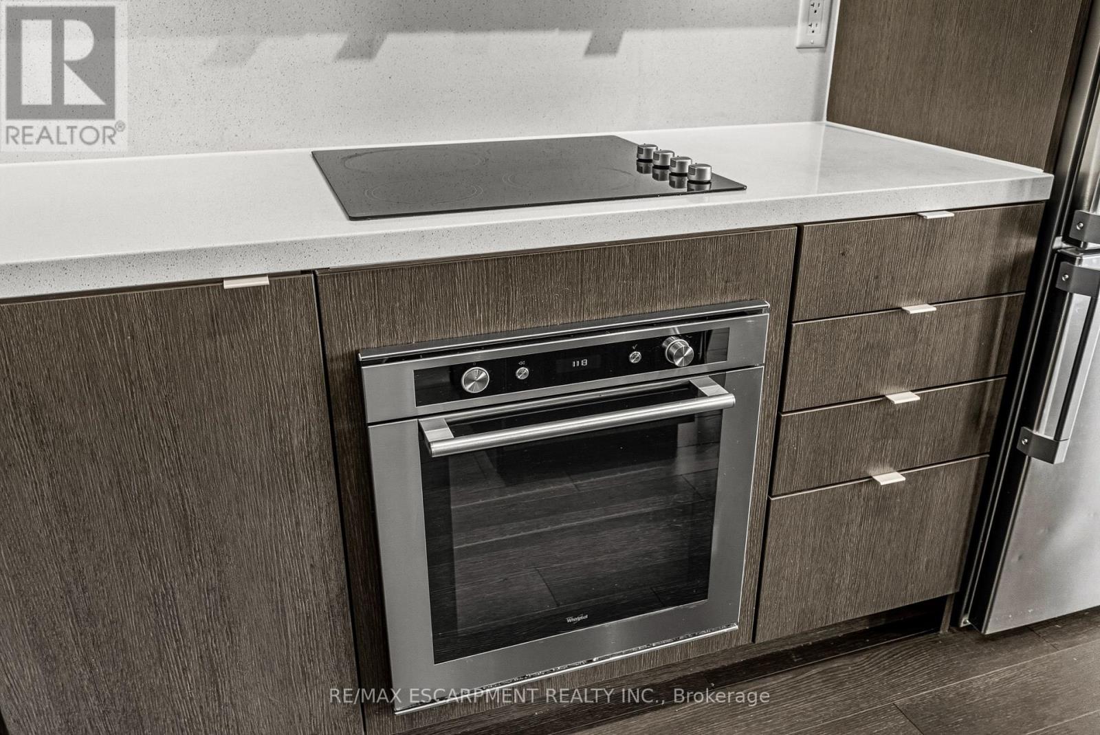 Welcome to Link Condos, ideally situated in one of Burlington's most sought-after neighbourhoods. You will love this bright and spacious 1 BR + Den unit; originally a builder model with all the bells and whistles, including built-in stainless steel appliances. A large kitchen island with quartz countertops, stunning dark hardwood flooring throughout, potlights and upgraded tile in the bathroom. The open balcony has unobstructed south/west views of Lake Ontario and the Niagara Escarpment with no one directly above, adding to the private feel, and gives tons of natural sunlight in the unit and for the exterior living space. Trails and parks at your doorstep, including amazing schools, shopping, public transit, and easy highway access. Tons of visitor parking and one owned space in the secured underground lot. An ideal location for young professionals, or if you're looking to downsize but don't want to compromise on location. The amenities include 24/7 concierge, a full gym, plus sauna, steamroom, plunge tubs, games room, and party room with full kitchen and common courtyard with BBQ. (id:64974)