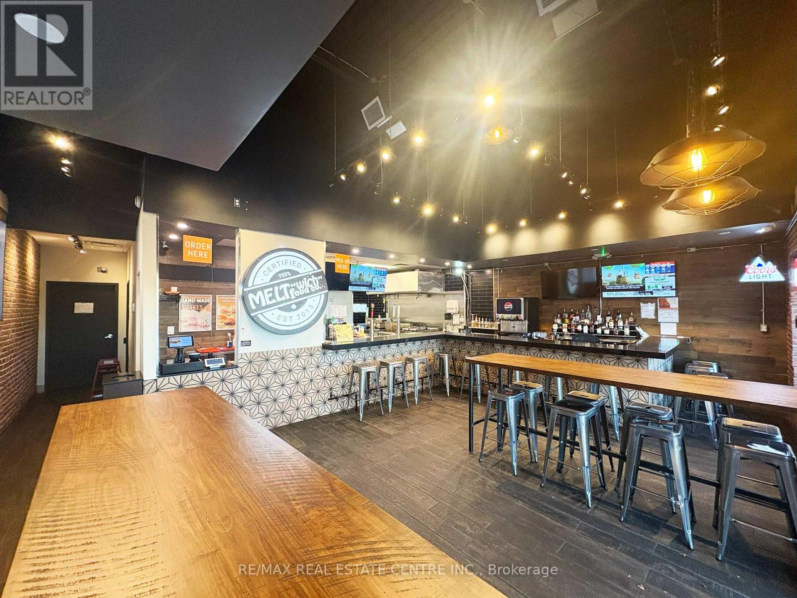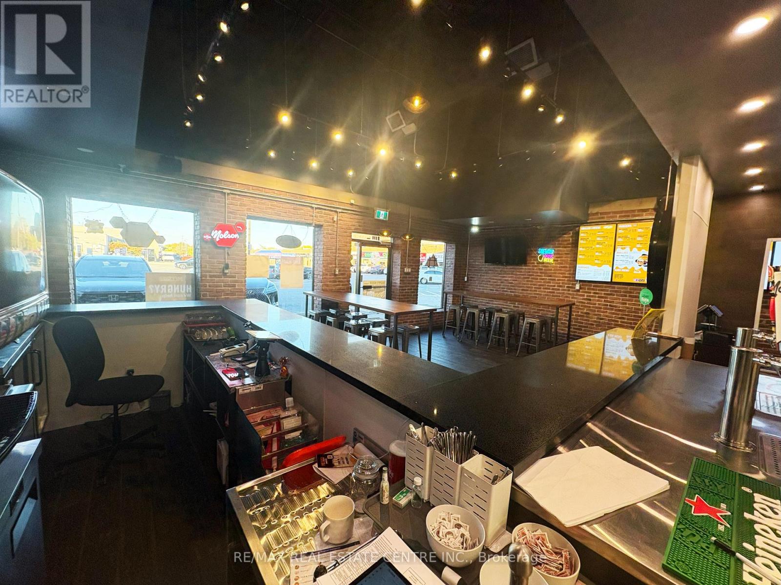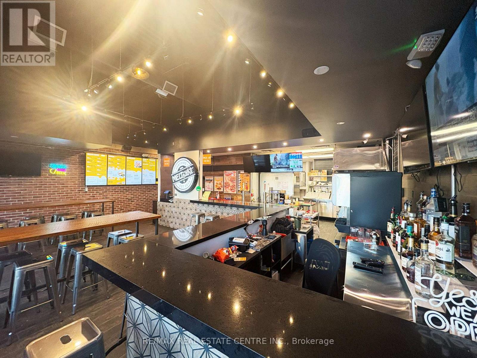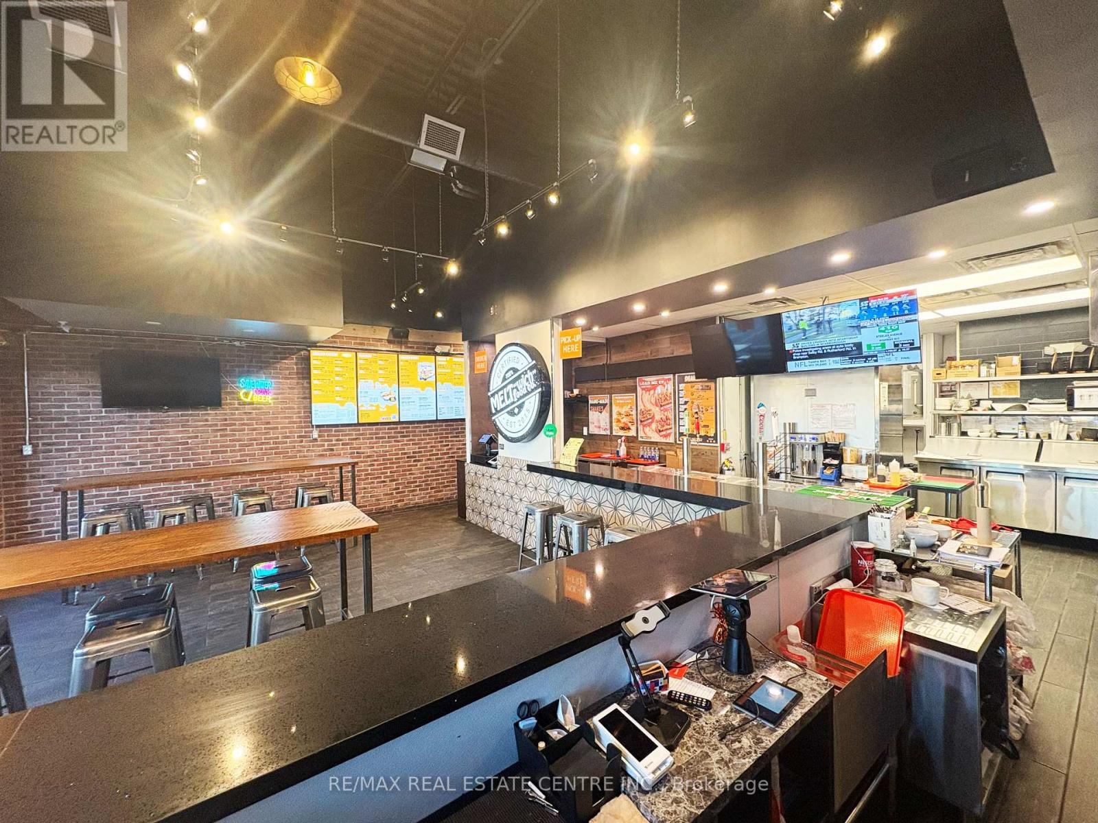 Turnkey opportunity to own an established Meltwich Food Co. franchise or step in with your own concept in a high-traffic retail hub just off the QEW, offering excellent visibility, strong footfall, and a loyal customer base. This 1,168 sq. ft. approx. Turnkey restaurant space is fully built-out and ready for immediate operation. Meltwich is known for its gourmet grilled-cheese melts, burgers, poutines, and milkshakes, with full franchise support and training. Alternatively, the versatile layout allows for rebranding or other option available. The location is part of a bustling retail complex anchored by AAA tenants including McDonald's, Benjamin Moore, Medical Centre and Pharmacy, Burlington Public Library, CIBC Bank, Dental Care, Subway, Service Canada, and many more, ensuring a steady stream of visitors. The property features ample parking, prominent corner signage, and a bright, inviting interior suitable for dine-in, take-out, and delivery operations. A key highlight is the LLBO license, allowing the sale of alcoholic beverages to expand revenue potential. Leasehold improvements and premium chattels are included for a seamless transition. The lease is managed at $3,406 per month plus TMI and taxes, with a total monthly cost of $5,039.60, making it an attractive arrangement for a new operator. Located in a thriving, growing market with a dense residential and commuter base, this property permits a wide range of uses including restaurant, retail, personal service, office, medical clinic, convenience store, and fitness/recreation facilities, making it ideal for entrepreneurs to operate Meltwich or launch a new concept. Don't miss this rare opportunity to own a turnkey franchise-or create your own business-at one of Burlington's most desirable retail destinations. (id:64974)