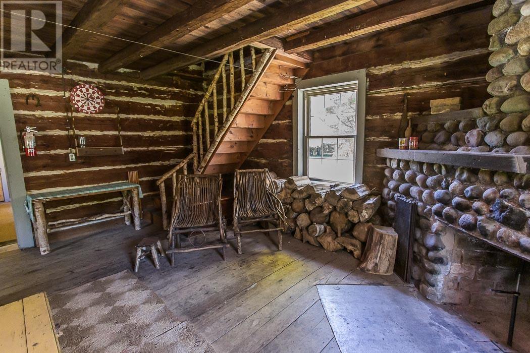 Exclusive 320-Acre Private Riverfront Estate and Northern Retreat on the Mississagi River for the Discerning Outdoorsman or Visionary Builder. One of Ontario's most extraordinary private holdings - this unspoiled wilderness estate includes both sides of the river and over a mile of secluded gated private driveway leading to a handcrafted log lodge rich with heritage and rustic elegance. For the individual who values privacy, tradition, and the essential things in life - solitude, wilderness, water, outdoor recreation, and heritage, this is not just property. It is a sanctuary. Ideal as a private family retreat, exclusive hunting and fishing lodge, or future estate residence, the possibilities here are as vast as the land itself. At the heart of the property sits a historic hand-hewn log cabin, lovingly preserved with its original stone fireplace, wood cookstove, sloping floors, and handcrafted details. Generations of outdoor adventure are etched into this property with hand-carved tallies, names, and a timeworn fishing map that whispers stories of days spent hunting, fishing, and gathering fireside. Surrounded by towering timbers of hardwoods and evergreens, meadows, and the river's rushing power, the land is rich with wildlife and ready for exploration. Whether fly fishing off your own shore, boating a winding stretch of the river, or walking forest trails in total privacy, this is a place to disconnect from the modern world and reconnect with what matters. For those who seek land not merely for what it holds, but for what it preserves - solitude, tradition, and timeless connection - this is a rare offering in the Canadian wilderness with convenient access by plane, vehicle, or helicopter. (id:64974)