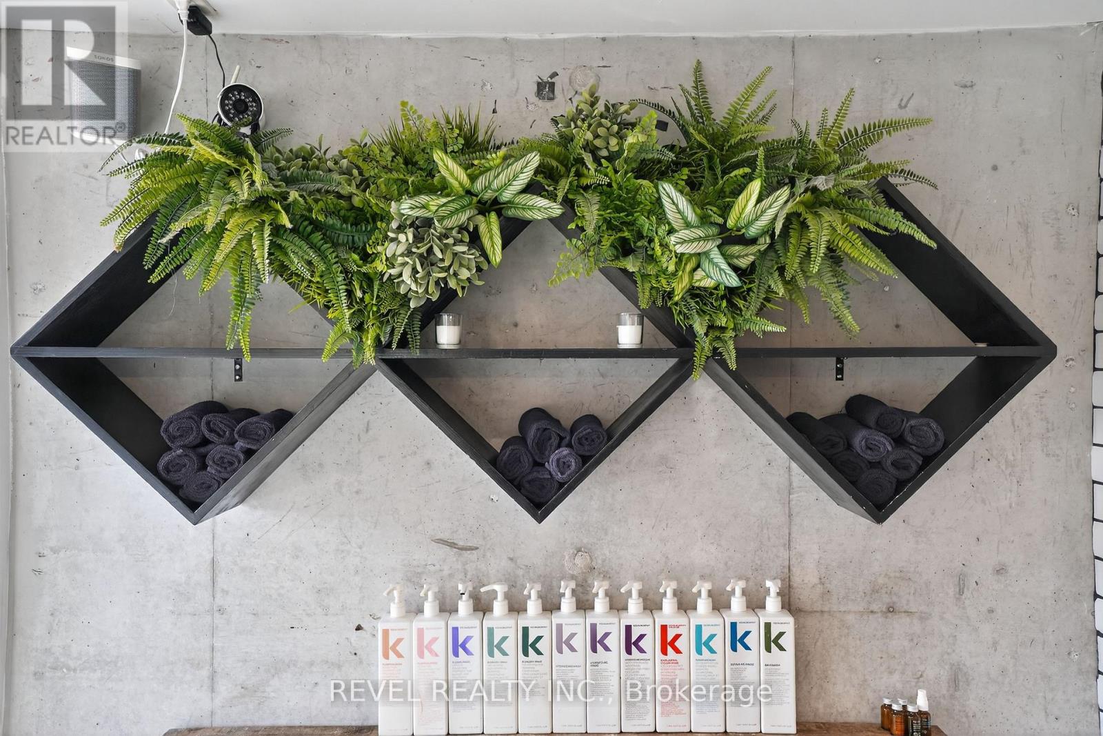 Outstanding opportunity to acquire a well-established, high-performing hair salon in one of downtown Toronto's most active residential corridors. Located in the heart of CityPlace, this thriving business benefits from constant neighbourhood traffic, strong brand recognition, and a loyal urban clientele. Operating since 2012, the salon has earned an exceptional reputation, reflected in 624 Google reviews with a 4.7-star rating and a solid client retention rate. The business is fully staffed with an experienced team and supported by organized systems, steady revenue, and documented financial performance, offering stability from day one. This modern two-level space is approximately 1,535 sq ft plus a 198 sq ft patio. Soaring 10.5 ft ceilings on the main floor, 9' ceilings upstairs, clean contemporary finishes and bright southern exposure create an inviting atmosphere. Heat and water are included in the monthly costs, contributing to manageable overhead. Ideal for an owner-operator, businesses looking to expand or investors seeking a proven concept in a premium downtown location with room to grow. (id:64974)