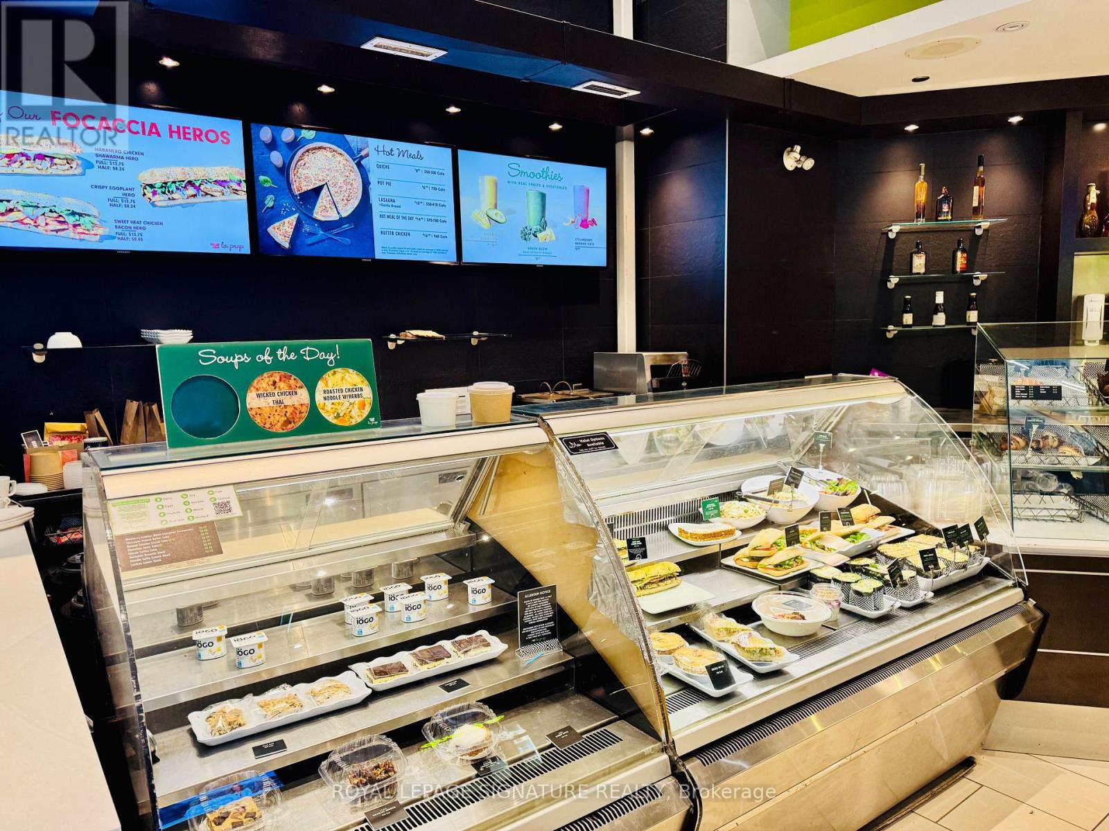 FRANCHISE BUSINESS FOR SALE! >>> LA PREP CAFE/Restaurant. Great Menu! Lots of Equipment! LEASE Until: 2035 with Renewal Options. Rent: Approx. $3,237.00/Mth. Superb build-out with Patio, Seating for 30. Storage Locker in Basement (Approx 50 sqft).Located in the Busy Office Tower. Lots of foot traffic! Located in North York's premier business neighbourhood. Subway Access !! High-density, close to Schools, Highways, Residential, Office, Retail, etc. Lots of parking underground & outside on the street. Cannot be re-branded. (id:64974)
