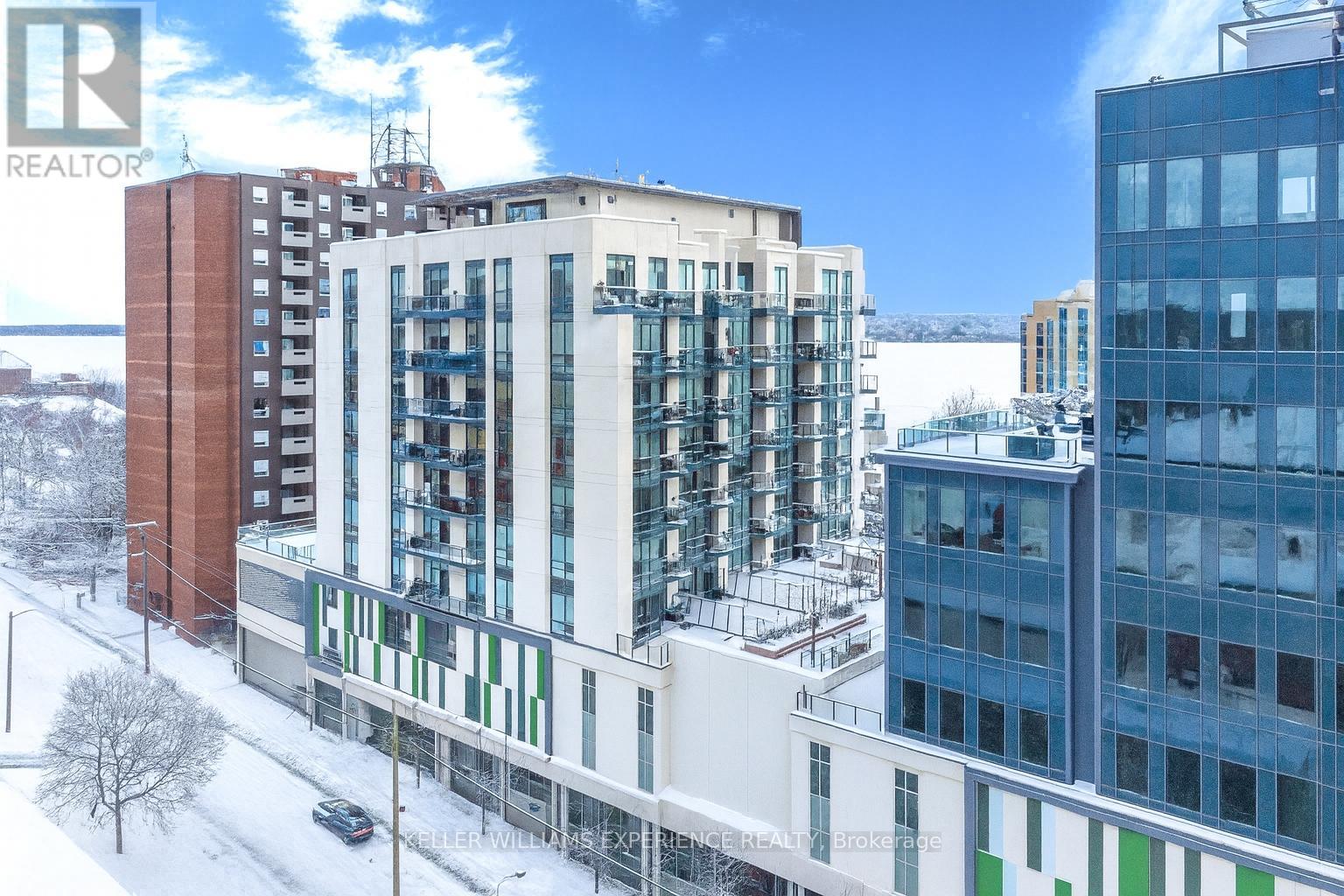 Experience elevated lakeside living in this stunning Grand Penthouse overlooking Lake Simcoe and Kempenfelt Bay. This spacious 2-bedroom + den, 2-bathroom suite blends luxurious design with everyday comfort, offering unobstructed west-facing views and a lifestyle that's just steps from Barrie's vibrant downtown, waterfront trails, fine dining, and boutique shopping. Inside, the bright open-concept layout impresses with 10-foot ceilings and floor-to-ceiling windows dressed in custom blinds, filling the space with natural light. The great room flows seamlessly to a large south-facing terrace, perfect for entertaining or simply enjoying sunset views. The primary bedroom includes a private balcony and a beautifully upgraded three-piece ensuite with a walk-in shower, modern vanity, and fresh new fixtures. The modern kitchen features stainless steel Whirlpool appliances, neutral cabinetry, white quartz countertops, and a stylish backsplash, complete with a gas hookup and a water line to the fridge. Both bedrooms are generously sized, and the den adds versatility as a home office, guest area, or cozy lounge. Additional highlights include in-suite laundry with custom shelving, an extra-large storage locker, and ample closet space throughout. Utility costs for 2025 totalled just $490.89 for water and hydro, with heating and cooling provided by a highly efficient heat pump system. Enjoy the convenience of owning underground parking, bike storage, and quality building amenities, including a fitness centre, party room, and a third-floor outdoor terrace with BBQ area. Affordable luxury, panoramic lake views, and a prime downtown address-this rare penthouse opportunity in Lakeview Condos is not to be missed. (id:64974)