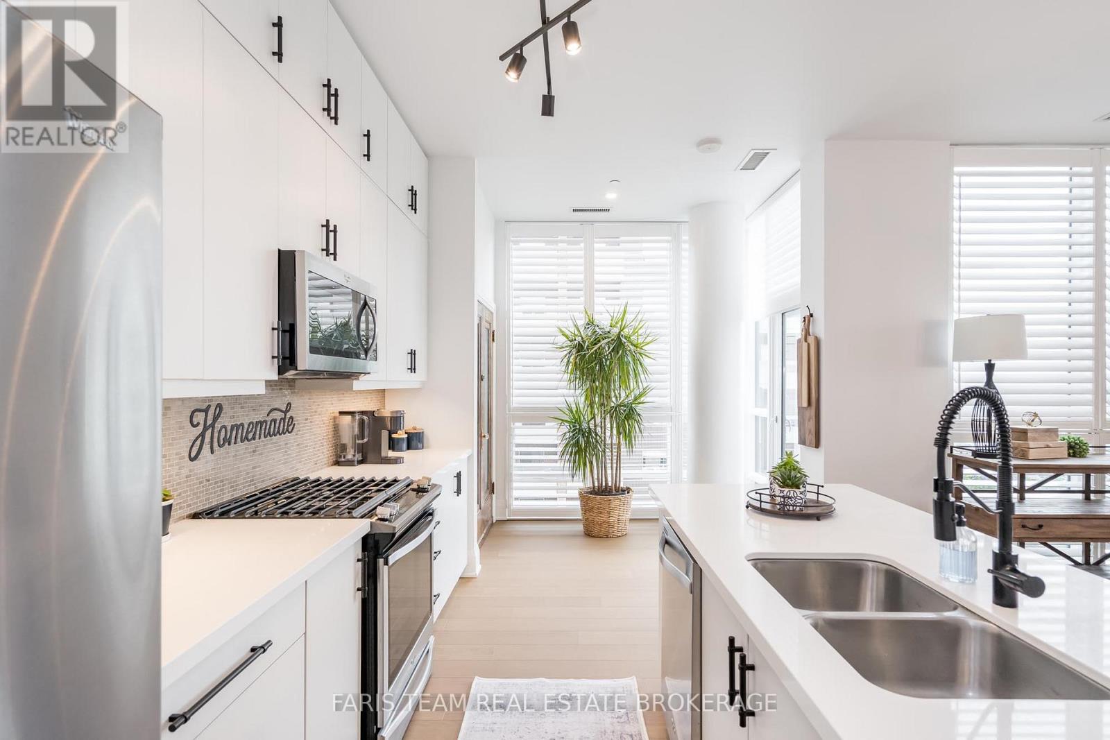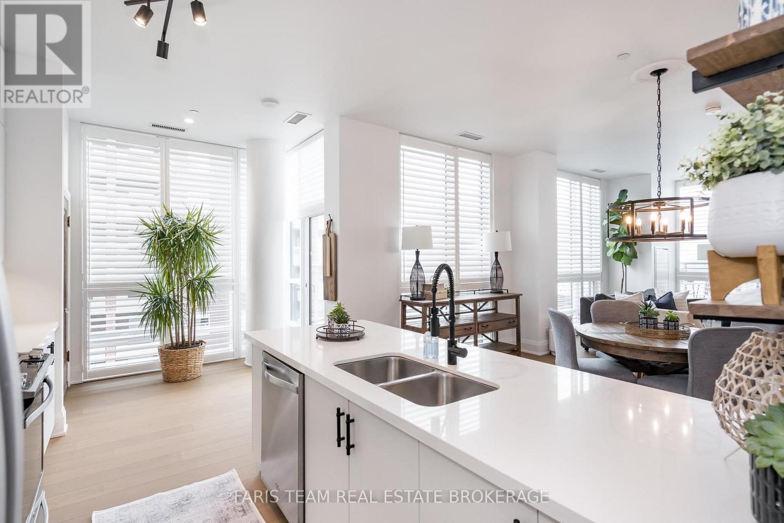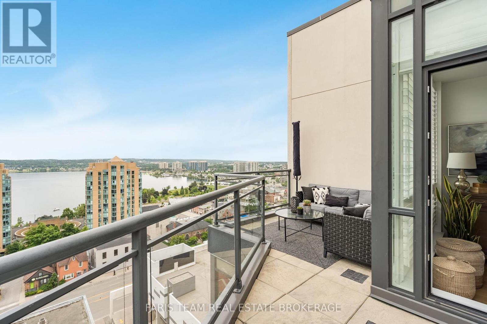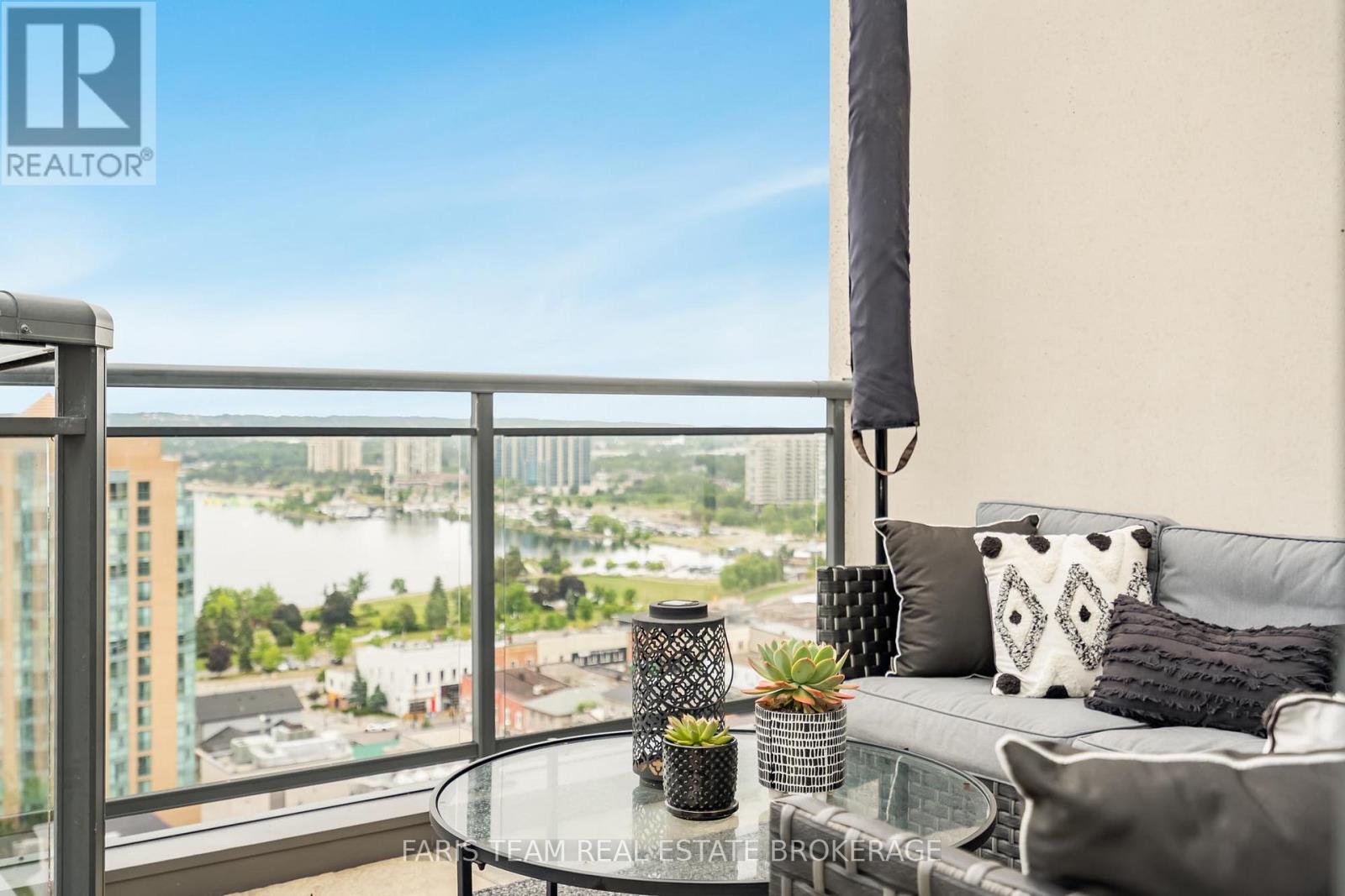 Top 5 Reasons You Will Love This Condo: 1) Grand penthouse offering over 1,600 square feet of thoughtfully designed space with two bedrooms, a cozy den, two modern bathrooms, a walk-in front closet, and a generously sized laundry room 2) Immerse yourself in luxury with tall 10' ceilings, brand new gleaming hardwood floors, a chef-inspired kitchen featuring a gas range, custom closet built-ins, and chic California shutters 3) Breathtaking vistas through floor-to-ceiling windows and from three private balconies showcasing the city skyline and the serene beauty of Kempenfelt Bay 4) Experience unparalleled convenience with underground parking, secure storage, bike facilities, an exercise room, pet-friendly living, and Kennedy's Lakeside Grocery just steps away 5) Expansive design combined with opulent finishes, this penthouse elevates refined living as a true masterpiece of elegance and sophistication. 1637 above grade sq.ft. (id:64974)