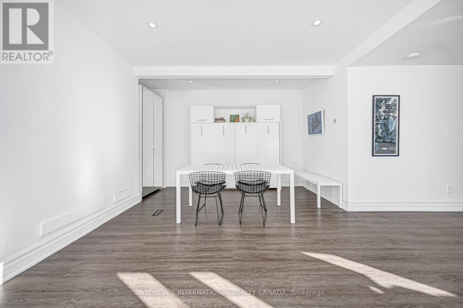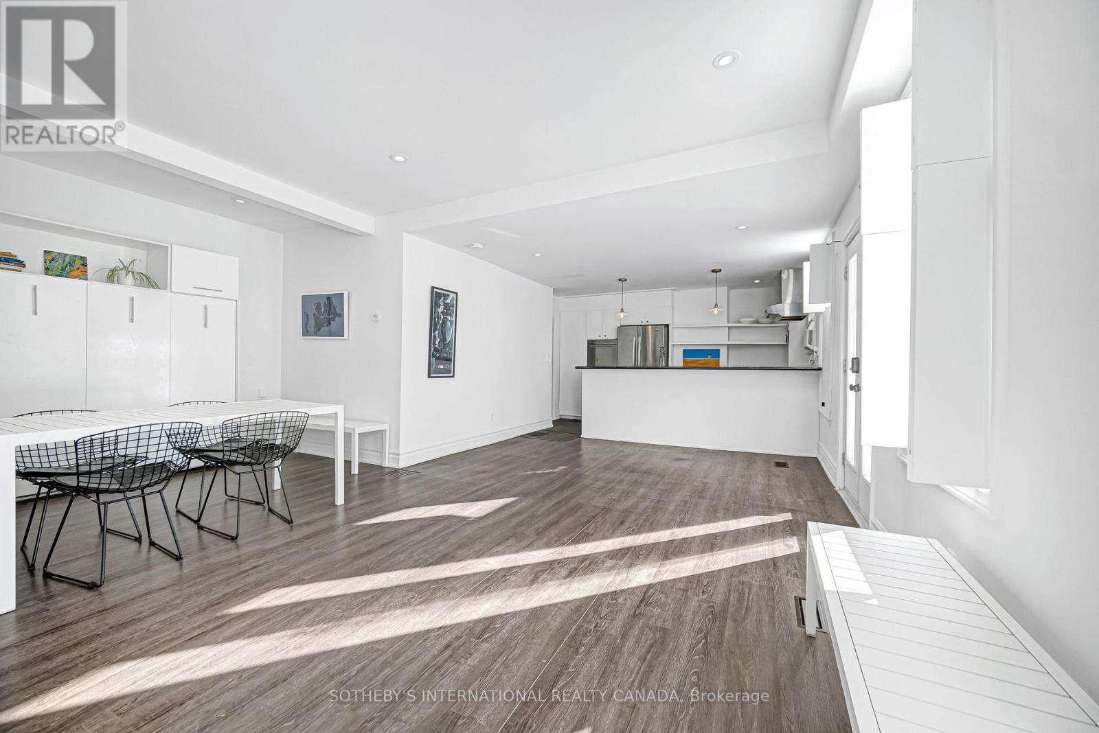 A light-filled, ground-level workspace designed for focused professional use, set within a thoughtfully renovated mixed-use building in the heart of Cabbagetown. Approximately 600 square feet, the space is organized as an open, flexible plan with strong street presence and generous front-facing windows that bring natural light deep into the interior. Clean lines and recessed lighting create a calm, neutral framework well suited to office, studio, and private practice uses across professional, creative and wellness. The layout supports a range of configurations - from open studio or collaborative workspace to private office or client-facing practice - with a clear separation between work area and service functions. A streamlined kitchen is discreetly integrated for day-to-day use, while the washroom is notably well considered, featuring contemporary finishes and a glass-enclosed shower, ideal for wellness, therapy, or studio-based operations. A landscaped street-level entrance offers visibility and signage opportunity, situating the space clearly within the neighbourhood. Located directly across from newly built high-density residential, the premises benefits from a growing local population and steady pedestrian activity. Just steps from Gerrard Street East and Parliament Street. A well-composed, turnkey workspace for practices seeking a visible, accessible ground-floor presence in an evolving urban setting. (id:64974)