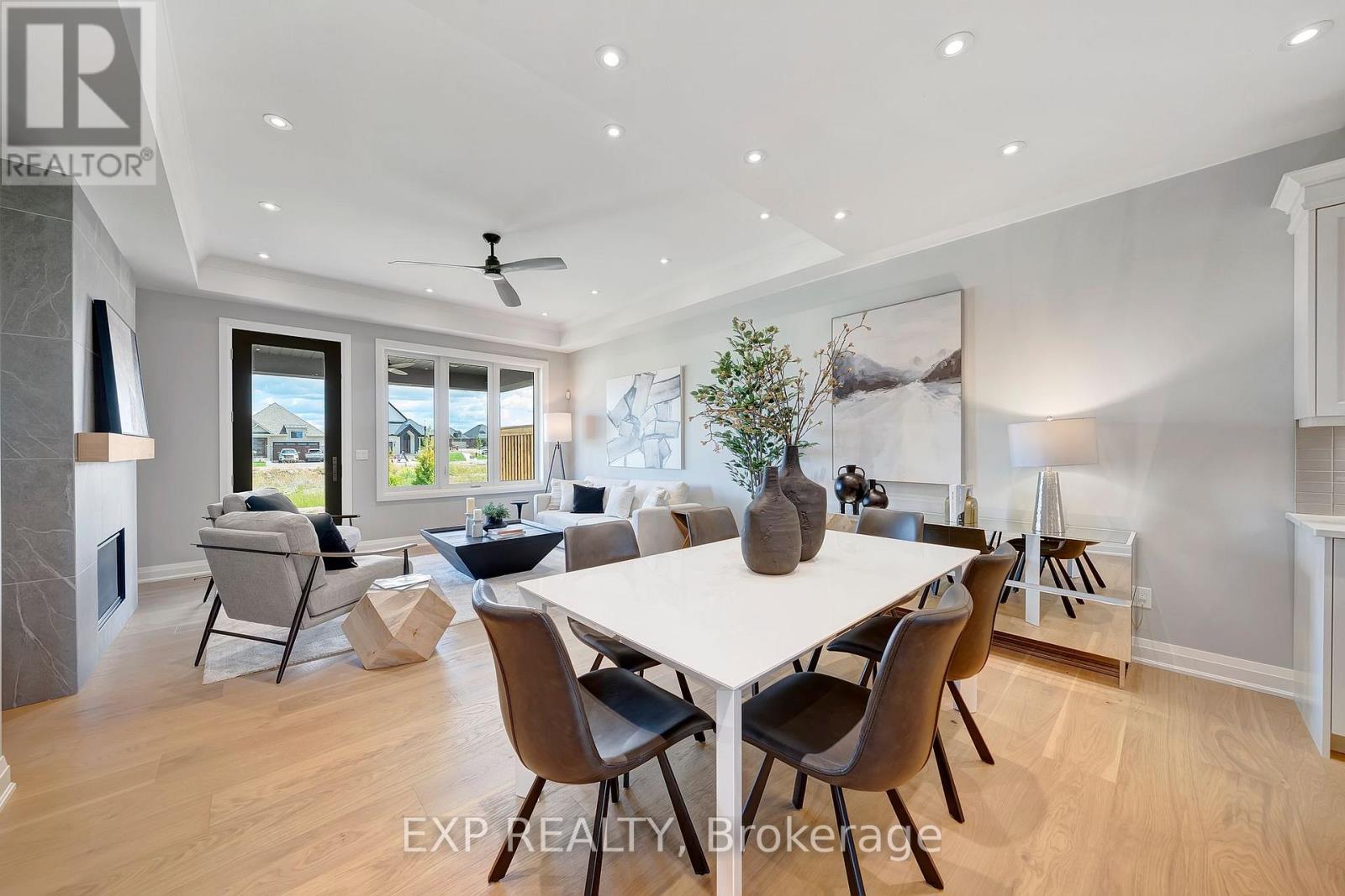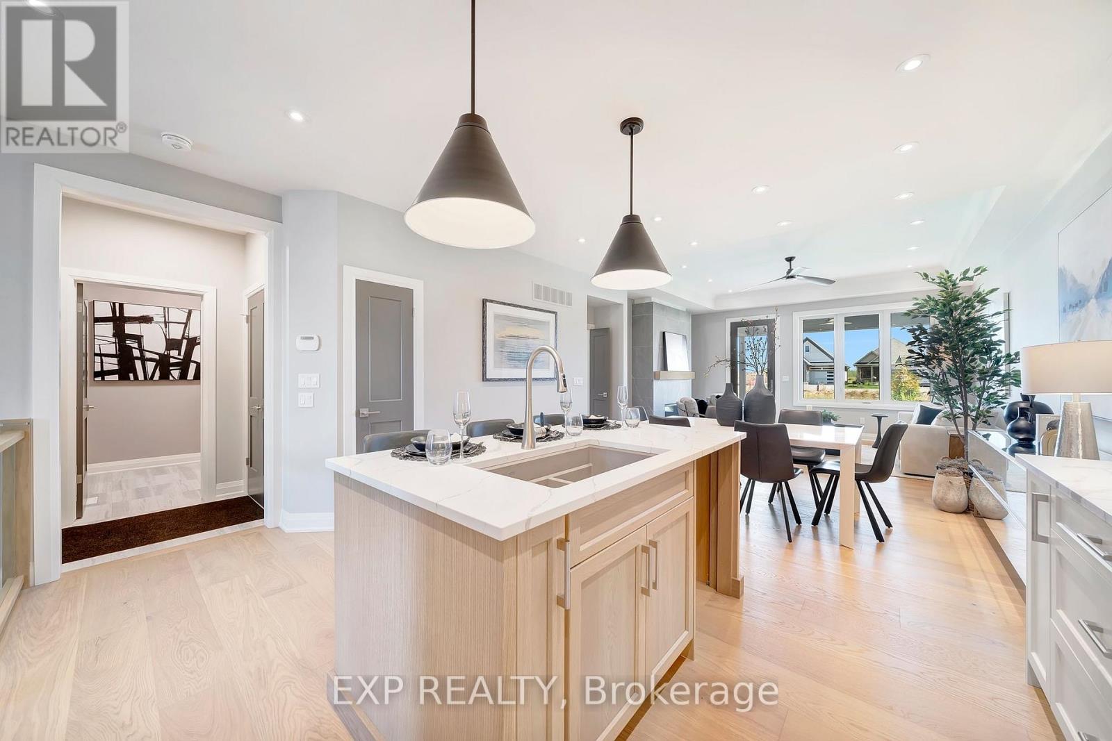 Welcome to WaterCrest at Hunters Pointe -- an exclusive 55+ active adult community in north Welland, in the heart of Niagara. This is one of the final releases from Lucchetta Homes, known for thoughtful design, quality finishes, and architecture that stands out. Monthly fees of $265 include access to a full suite of amenities: indoor saltwater pool, fitness centre, tennis and pickleball courts, hot tub, sauna, games room, library, banquet space, lawn care, driveway snow removal, and monitored security. The lifestyle value here is unmatched. This interior model, the Haven, offers 2,109 sq ft of finished living space with 2+1 bedrooms, 3 bathrooms, and an attached garage. The layout is open and airy, with 9 ft. ceilings and a cathedral ceiling in the great room. Oversized windows bring in the light, and a covered rear deck adds outdoor living space. Built to Energy Star standards, this home outperforms typical Ontario Building Code homes by 20% thanks to efficient mechanicals and smart construction. Outside, the brick, stone, and stucco facade pairs with an asphalt driveway, irrigation system, and a clean landscape package. Inside, you'll find hardwood floors, quartz counters, tiled shower surrounds, pot lights, and custom details throughout. The kitchen features full custom cabinetry with dovetail drawers, LED under-cab lighting, quartz surfaces, and tile backsplash. The great room centres around a gas fireplace with 24x24" tile surround and a white oak-stained mantel. The finished basement adds a rec room, bedroom, bath, tiled landing, painted doors, and upgraded carpet. Aria flush-mount vents, white oak railings with glass inserts, and designer finishes complete the home. This is your opportunity to be part of WaterCrest's final phase. Make it yours! (id:64974)