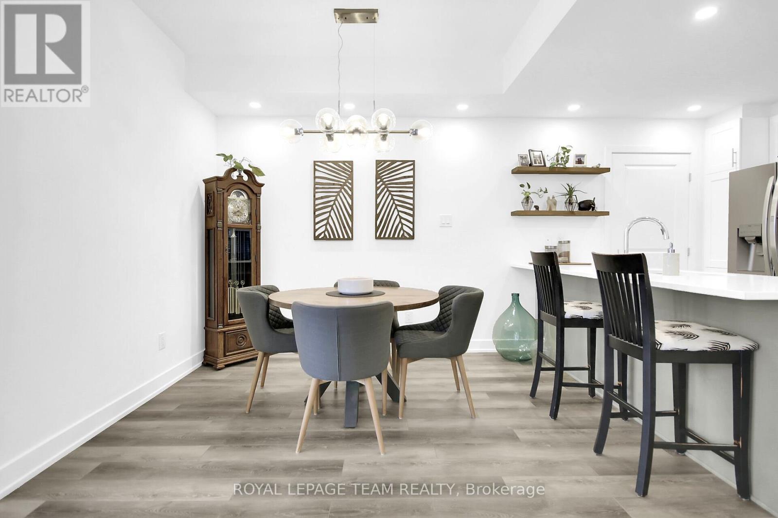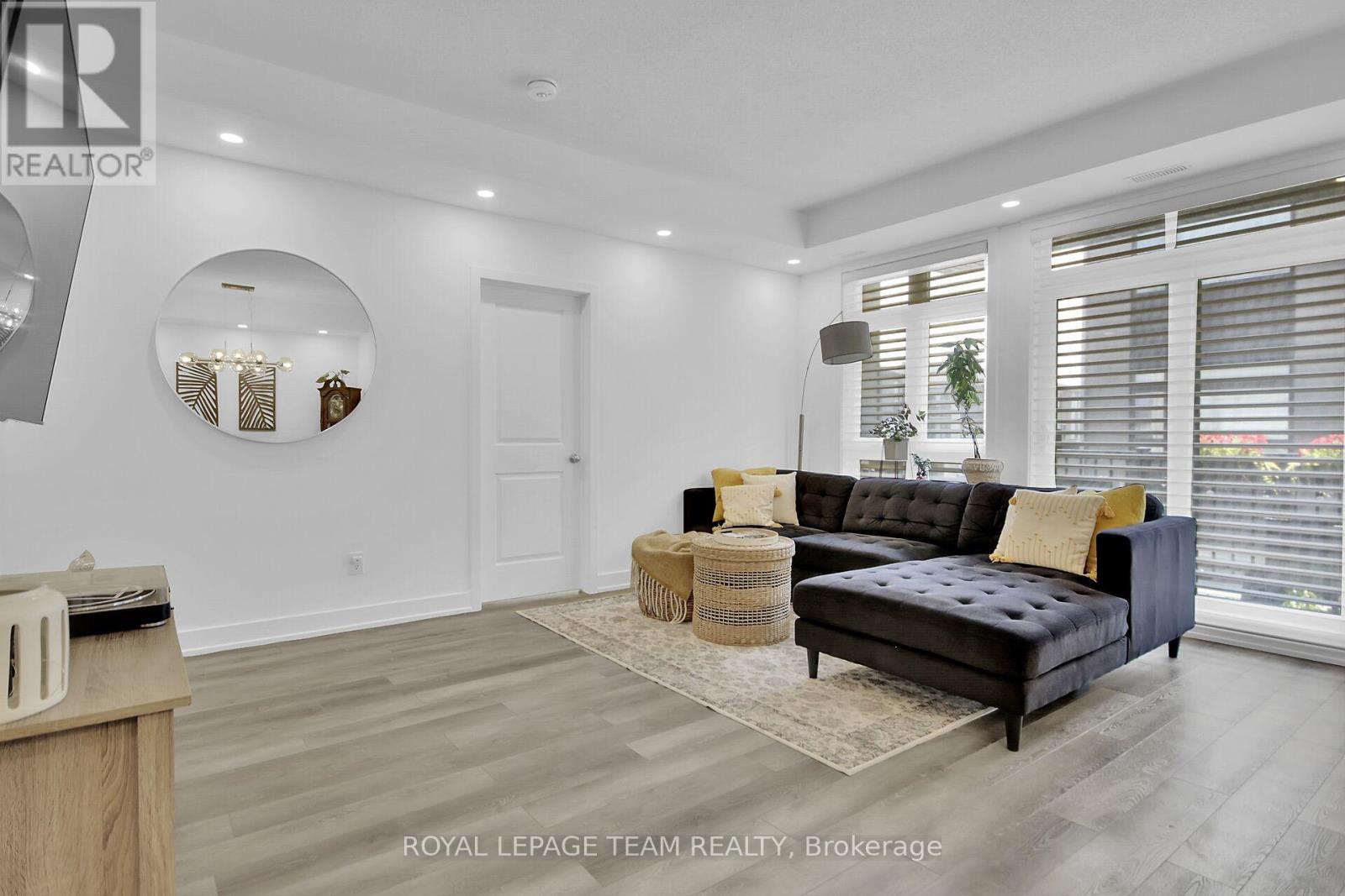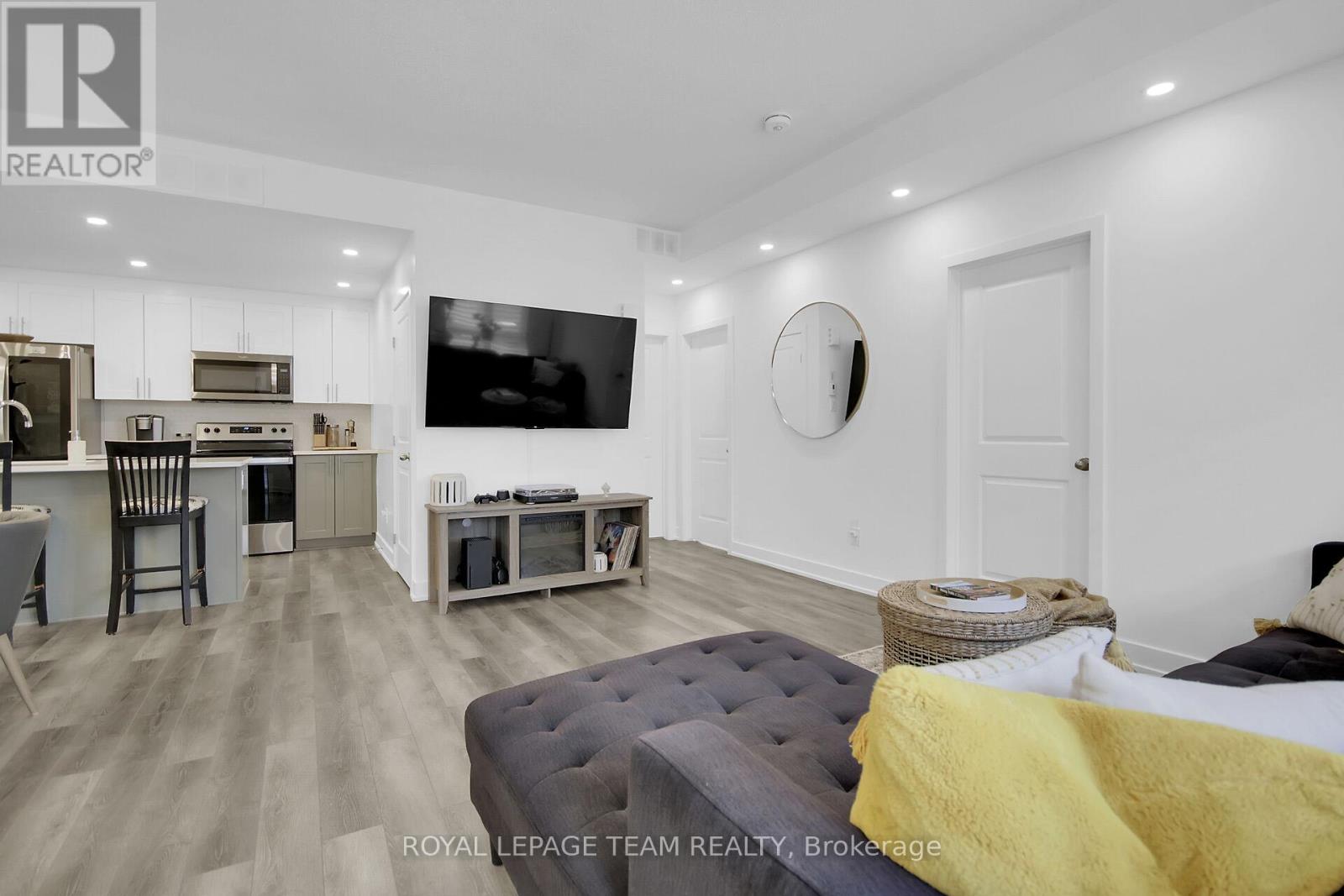 STUNNING, Bright & Spacious - Super Chic sought after MAIN level END unit located on the border of Kanata/Stittsville. This 4Year young 2 Bedroom Zen Urban Flat is thoughtfully designed for comfort and convenience and features w/an extensive list of upgrades (still under Tarion Warranty)! Generous Living Space welcomes you upon entry - Separate yet Open Dining Area + Bar Seating is complimented by a modern light fixture to set ambiance. The kitchen features 2-tone cabinetry w/soft close cabinets & drawers, quartz counters, SS appliances & trendy hexagon backsplash. Extra Pantry Space in the storage room w/custom shelving off the kitchen. Unit also offer In-Suite Laundry. The Primary Bedroom can accommodate a king-sized Bed & features a large customized walk-in closet & remote black out blinds. 2ndary Bedroom is an ideal Guest Bedroom + Office. Completing the space is a beautiful full bath w/updated shower tile, vanity & hardware. Luxury Vinyl Plank Flooring ThruOut. West facing balcony gets plenty of sun & space for electric BBQ. 1 parking spot included beside the unit along w/lots of visitor parking. Ideally located close to it all - transit, grocery, restaurants, CardelRec Complex (incl Soccer, Baseball, Swim Club, Track & more), and the TransCanada Trail. Super low fees (compared to condo apartments) - Pets Welcomed ! Great Opportunity not to be Missed !! (id:64974)