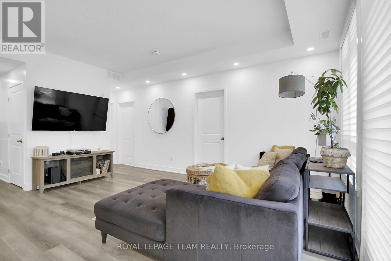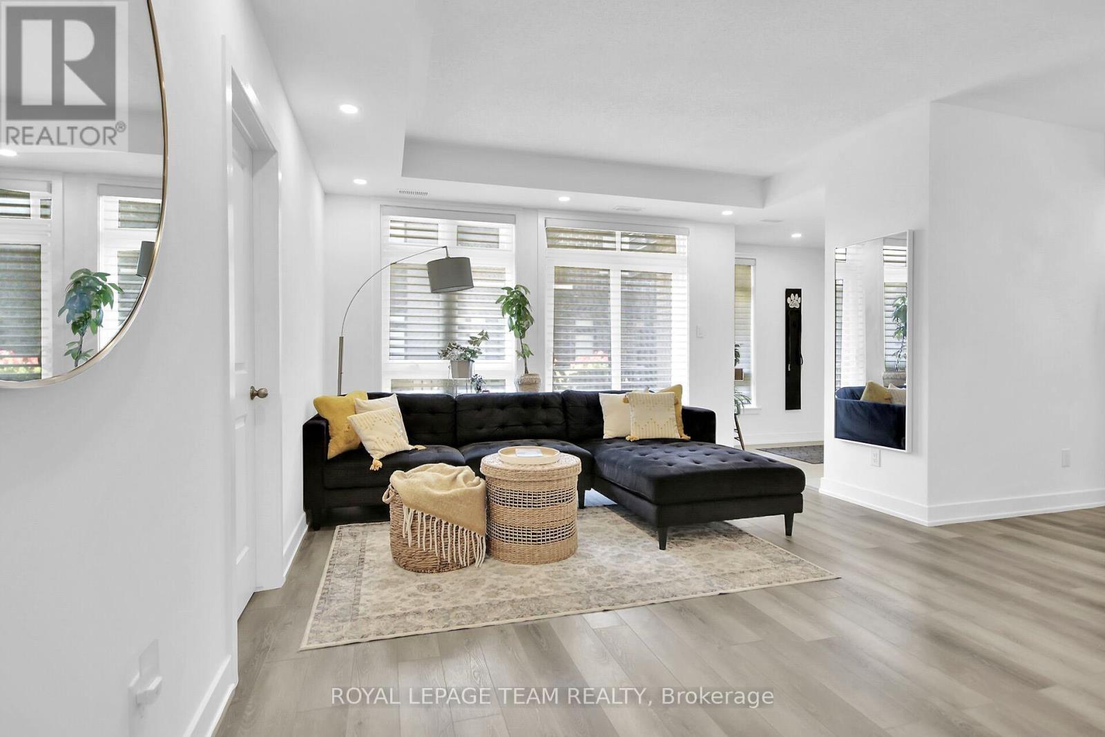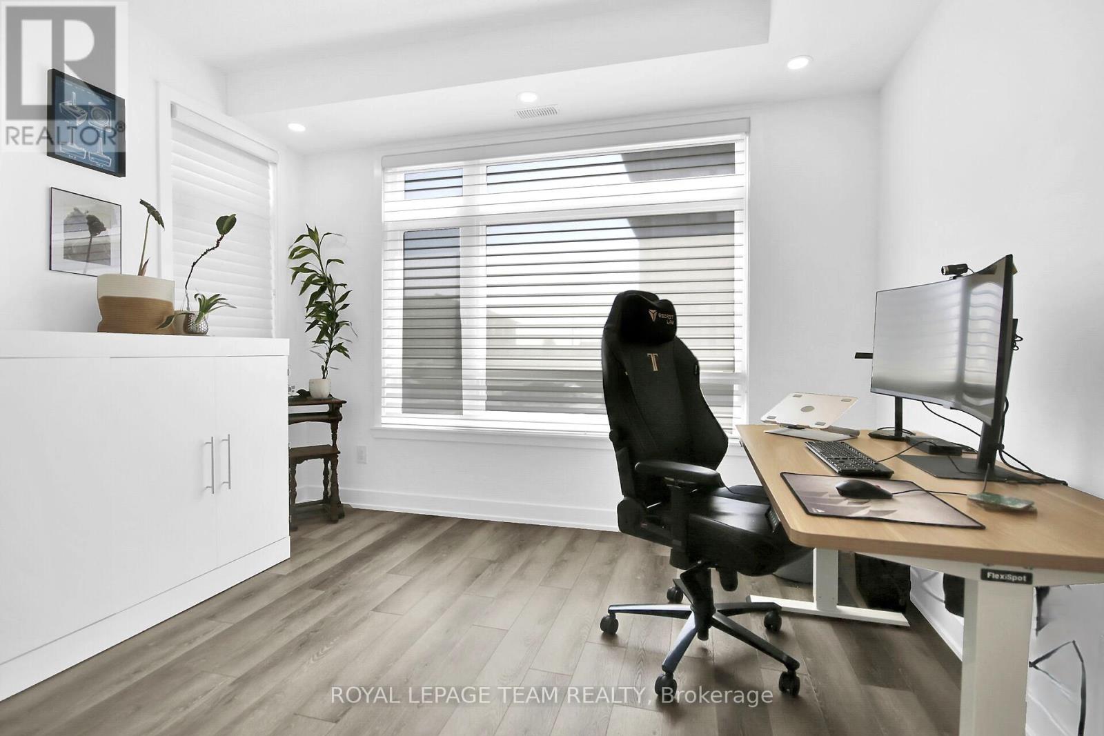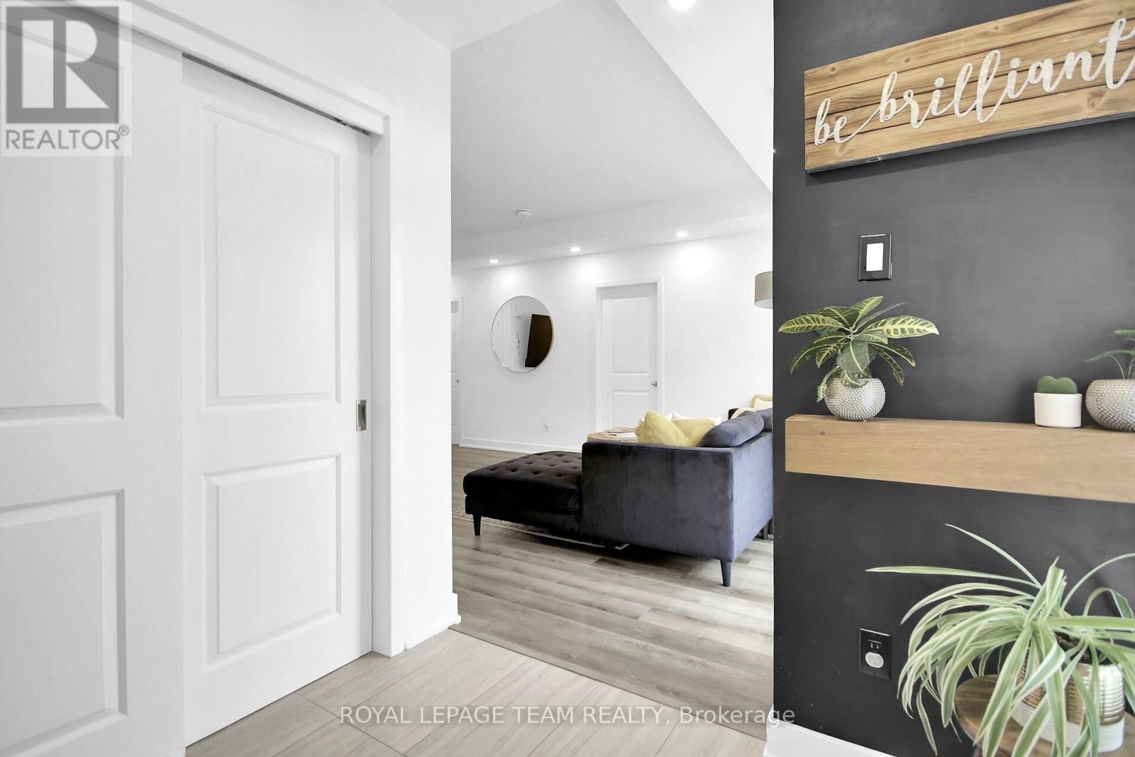 STUNNING, Bright & Spacious - Super Chic sought after MAIN level END unit located on the border of Kanata/Stittsville. This 4Year young 2 Bedroom Zen Urban Flat is thoughtfully designed for comfort and convenience and features w/an extensive list of upgrades (still under Tarion Warranty)! Generous Living Space welcomes you upon entry - Separate yet Open Dining Area + Bar Seating is complimented by a modern light fixture to set ambiance. The kitchen features 2-tone cabinetry w/soft close cabinets & drawers, quartz counters, SS appliances & trendy hexagon backsplash. Extra Pantry Space in the storage room w/custom shelving off the kitchen. Unit also offer In-Suite Laundry. The Primary Bedroom can accommodate a king-sized Bed & features a large customized walk-in closet & remote black out blinds. 2ndary Bedroom is an ideal Guest Bedroom + Office. Completing the space is a beautiful full bath w/updated shower tile, vanity & hardware. Luxury Vinyl Plank Flooring ThruOut. West facing balcony gets plenty of sun & space for electric BBQ. 1 parking spot included beside the unit along w/lots of visitor parking. Ideally located close to it all - transit, grocery, restaurants, CardelRec Complex (incl Soccer, Baseball, Swim Club, Track & more), and the TransCanada Trail. Super low fees (compared to condo apartments) - Pets Welcomed ! Great Opportunity not to be Missed !! (id:64974)