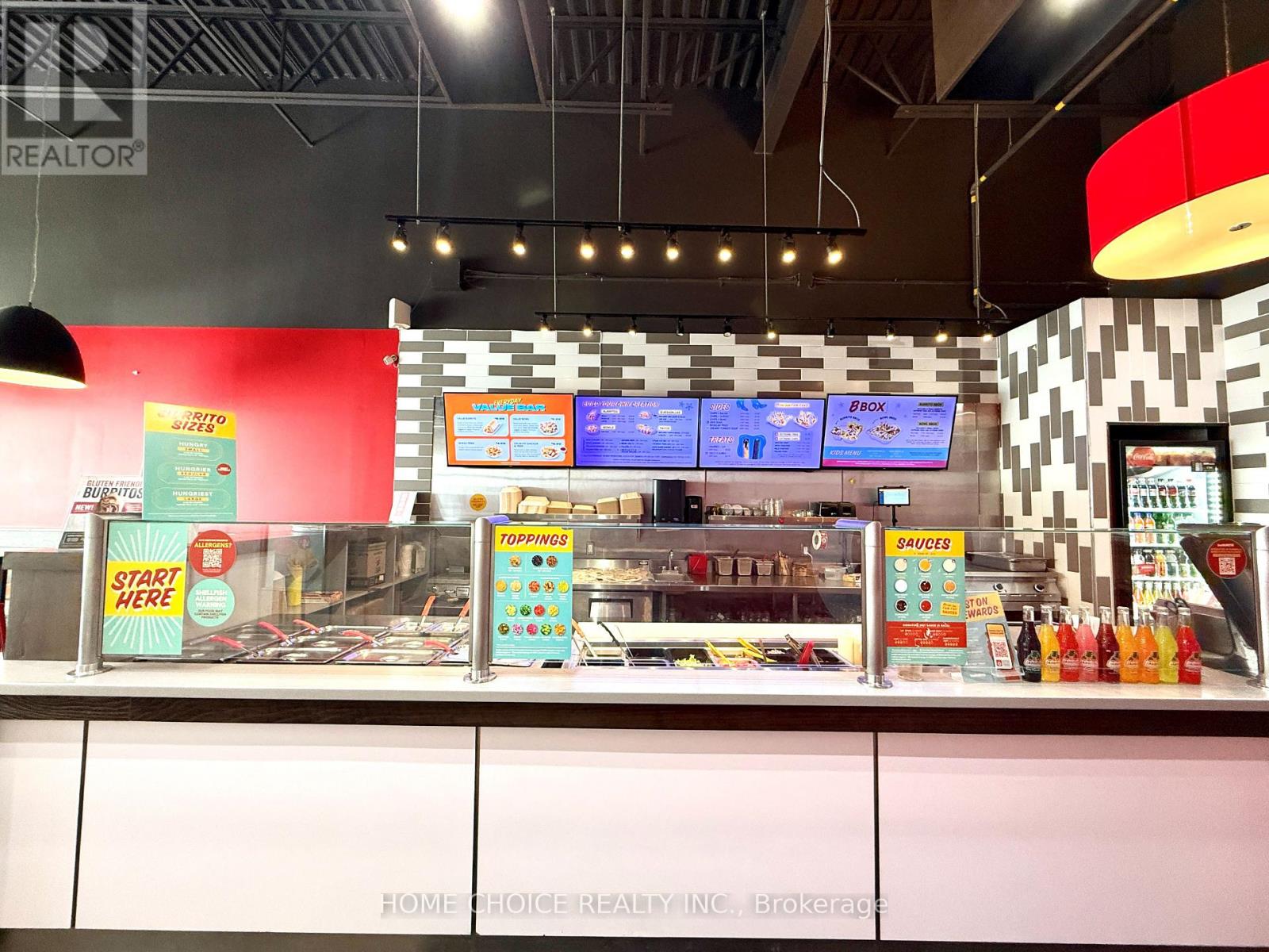 Location! Location! Location! Take advantage of this exciting opportunity to own a well-established Bar Burrito in a high-demand area of Barrie. Located in a bustling commercial district just minutes from Highway 400 and Georgian College, this business benefits from consistent foot traffic, strong visibility, and proximity to major anchors such as Cineplex, Zehrs, and LA Fitness. This turnkey operation offers impressive sales and solid profitability, supported by an efficient layout, quality equipment, and established systems. With a favorable lease in place (3 + 5 year term remaining) and attractive rent of $5,130 + HST, this is an ideal opportunity for an owner-operator to step in and further grow the business. Backed by a recognized franchise brand and loyal customer base, it provides both stability and expansion potential. Detailed financials and business information are available to qualified buyers. All inquiries and showings must be arranged through the listing agent; please do not approach staff directly. (id:64974)
