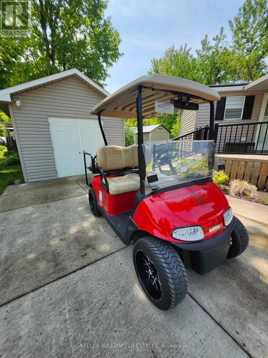 Check out this 6 month Premium Plus Seasonal Site at Our Ponderosa Cottage & RV Resort. INCLUDED- 2019 EZGO RXV 48V Golf Cart with Premium Seats, 14x7 Vortex Wheels and Mamba Tires, LED Light Kit, Rear Flip Frame with Seat, Retractable Seat Belts for Rear Passengers, and Golf Bag Attachment!! SLEEPS 10! This is the perfect getaway for anyone who likes to enjoy all that summer has to offer. Situated on a quiet cul-de-sac, this premium plus site has a front lawn with firepit area, and a spacious rear yard. The paved driveway allows 2 vehicles easily, and the shed has plenty of storage, and room for the golf cart to be stored out of the elements. The deck with hard awning features a screened in area to lounge in any kind of weather. Inside you'll find an open concept kitchen, living room with pull out sofa bed and an eating area. There is a spacious primary bedroom, the second bedroom offers 2 bunk beds (one with double on the lower bunk, and a roomy third bedroom. You won't run out of hot water as there is a full size tankless water heater!! Our Ponderosa is just minutes from Ipperwash Beach, one of the nicest sand beaches around, perfect for families. The park has something for everyone including an exclusive 9 hole golf course (included in the seasonal fees), horse shoes, children's programing, basketball court, bouncy pillow, sand volleyball courts, 2 pools and a water slide, chip wagon, playgrounds, splash pad, mini putt and there is scheduled evening entertainment with live performances. It really is one of the premier parks along Lake Huron. Included: Golf Cart, Tankless Water Heater, Indoor Furniture, Gas Stove, Refrigerator, Window Coverings, Storage Shed. (id:64974)