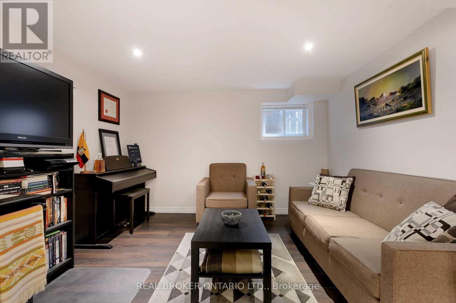 Bright and Pleasant 1-bedroom Unit in Lively Oakwood. This home has an efficient open concept living area with contrasting dark flooring, white walls, and pot lights. The modern renovated kitchen is well-lit with a lovely backsplash, laminate countertops, and overhead/under-counter cabinetry for plenty of storage. The washroom is also updated. The bedroom is spacious with a roomy mirrored closet and enough space for a work desk area. It has shared access to the large backyard and laundry room. Ideally located close to all essentials and Hwy 401 via Allen Rd. Steps to restaurants, cafes, shops, and more. Only an 8-minute walk to Eglinton W Subway station, 1 minute to the Oakwood LRT station, and15 minutes to Cedarvale Park, trails, and ravines. Utilities and appliances included! (id:64974)