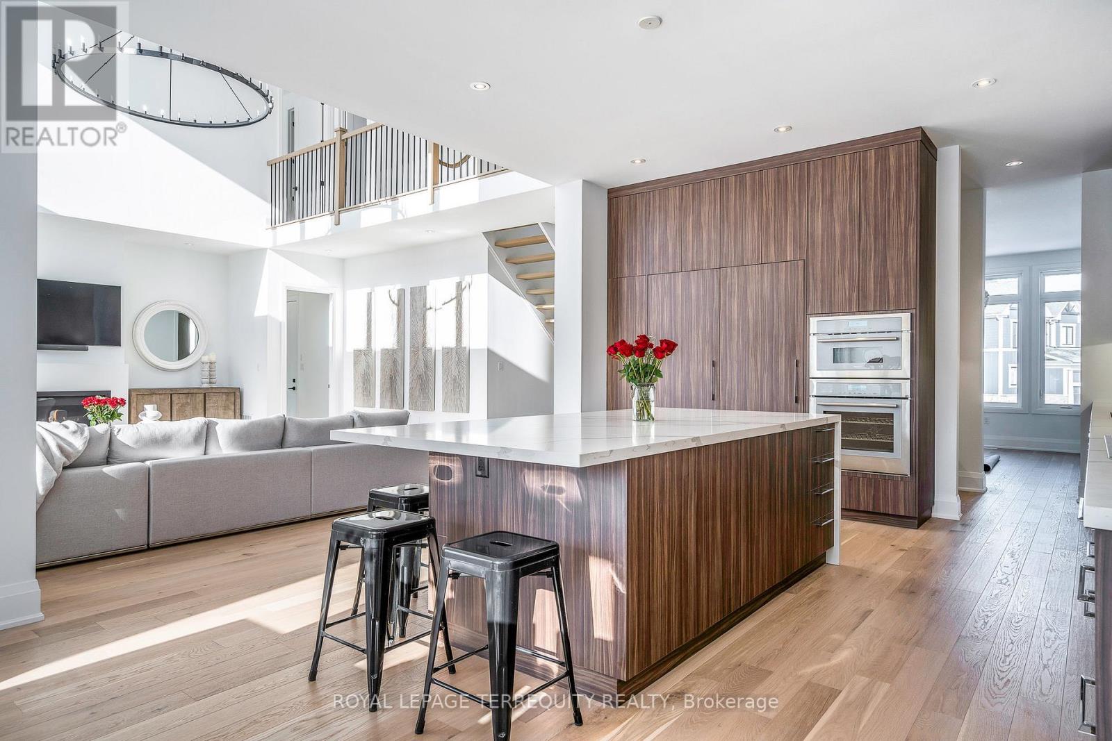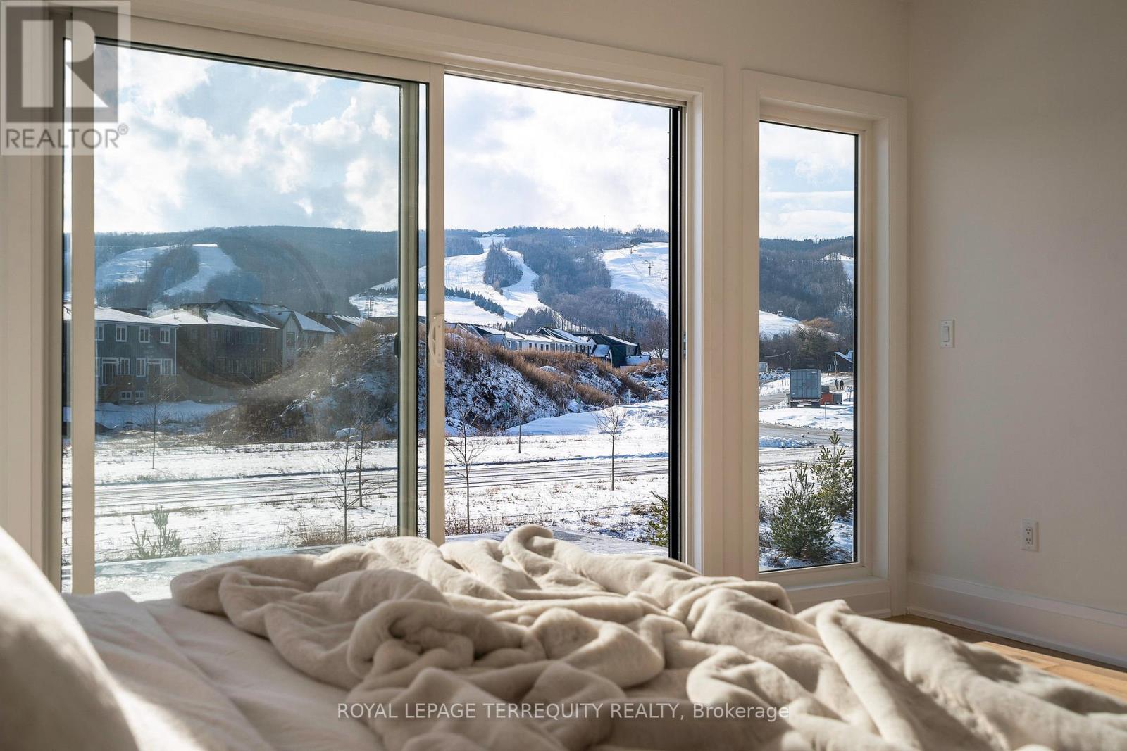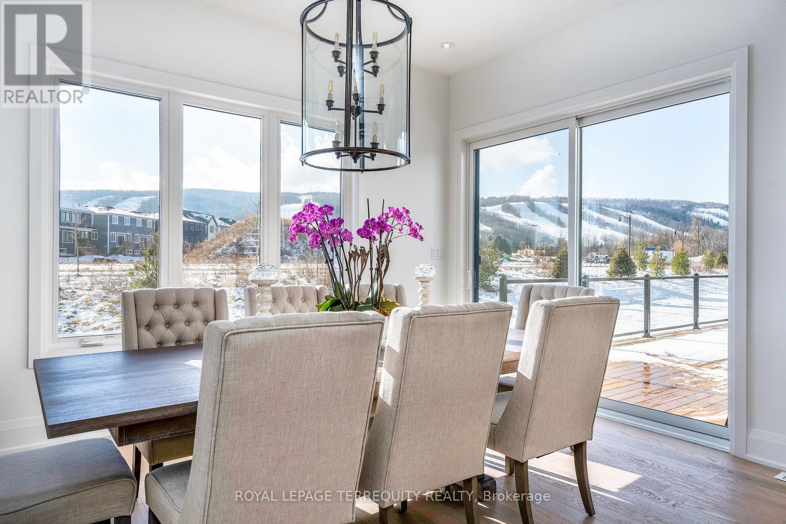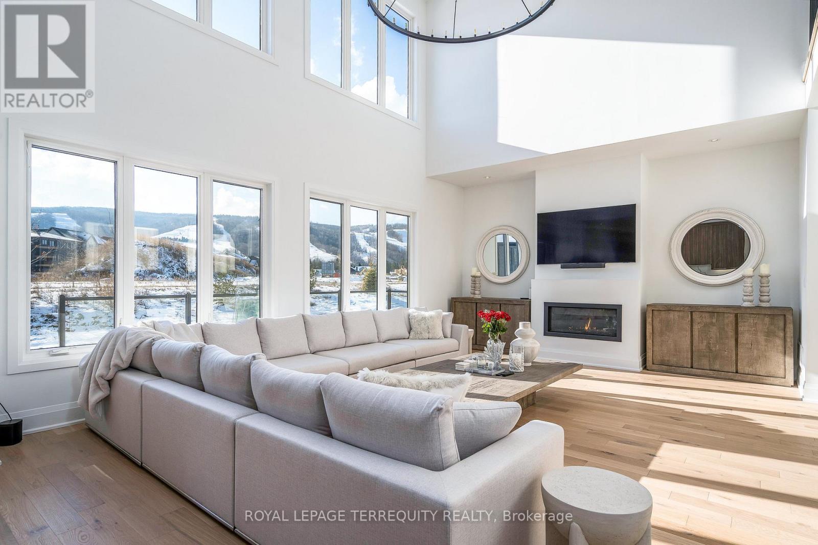 This designer executive home offers over 3,000 sq.ft. of modern, open-concept living with panoramic mountain views in one of Blue Mountain's most sought-after communities. Featuring over $400,000 in upgrades, the home showcases 10' ceilings on the main floor and 9' ceilings on the second floor, along with wide plank hardwood floors throughout. The chef's kitchen includes Thermador built in appliances, quartz countertops, an oversized island, and a bar fridge. The expansive great room with a gas fireplace and floor-to-ceiling windows provides an inviting space to relax and entertain.Four spacious bedrooms each have private ensuites, including a primary suite with a double glass-framed shower, deep soaker tub, and heated floors. Additional highlights include motorized blinds, a full laundry room with an LG front-load washer and dryer, a private backyard with an expansive deck, and parking for up to six vehicles.Just minutes from the Village, ski lifts, shops, restaurants, and trails, this home combines modern elegance with the ultimate Blue Mountain lifestyle (id:64974)