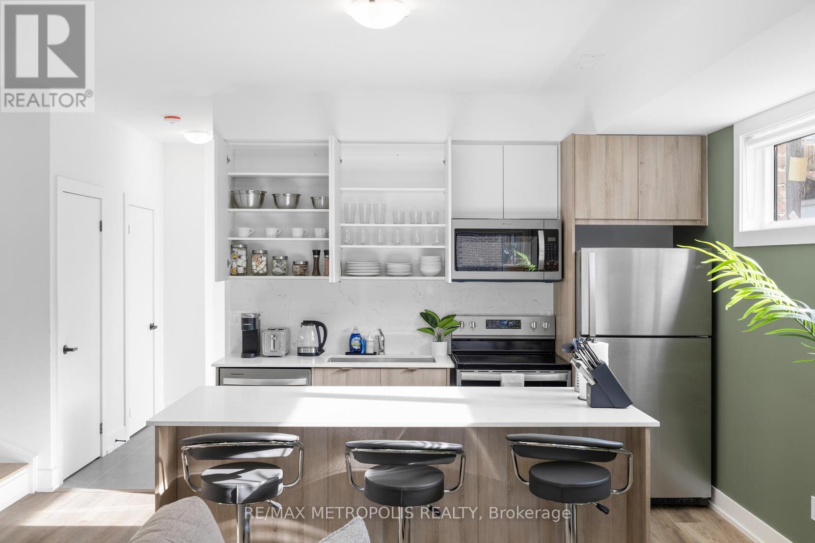 A fully-furnished, bright and modern laneway home in the heart of Roncesvalles. This well-laid-out 3-bedroom, 3-bathroom unit offers 1,274 sq ft of living space over two levels.The main floor features an open-concept living and dining area with laminate flooring, connected to a modern kitchen with stainless steel appliances, a centre island, and backsplash. Ensuite laundry is included.All three bedrooms are located on the second floor for added privacy. The primary bedroom features a walk-in closet and 3-piece ensuite. A second 3-piece bathroom serves the remaining bedrooms, with an additional 3-piece bathroom on the main floor.The unit includes one parking space. Located steps from Roncesvalles shops, cafés, and restaurants, with easy access to TTC, Bloor GO Station, Dufferin Mall, High Park, grocery stores, and specialty markets. Short-term rental options available. (id:64974)