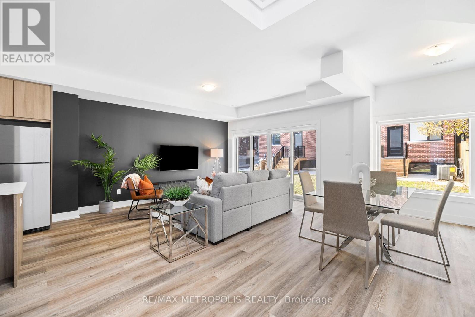 Welcome to this fully furnished 3-bedroom, 2.5-bathroom laneway home that offers 1,480 sq ft of modern living space with laminate flooring throughout, generous closet space, and ensuite laundry.The open-concept living and dining area flows into a modern kitchen featuring stainless steel appliances, a center island, and contemporary backsplash. The unit comes equipped with small appliances and cutlery, making it move-in ready.All bedrooms are spacious and filled with natural light. The primary bedroom includes a private 3-piece ensuite. A full bathroom is located on the third level, with an additional powder room on the main floor. Street parking available through City of Toronto. Steps to boutique shops, cafés, and restaurants, and close to Bloor GO, TTC subway, Dufferin Mall, High Park, grocery stores, and specialty food markets. Available for short or long term. (id:64974)