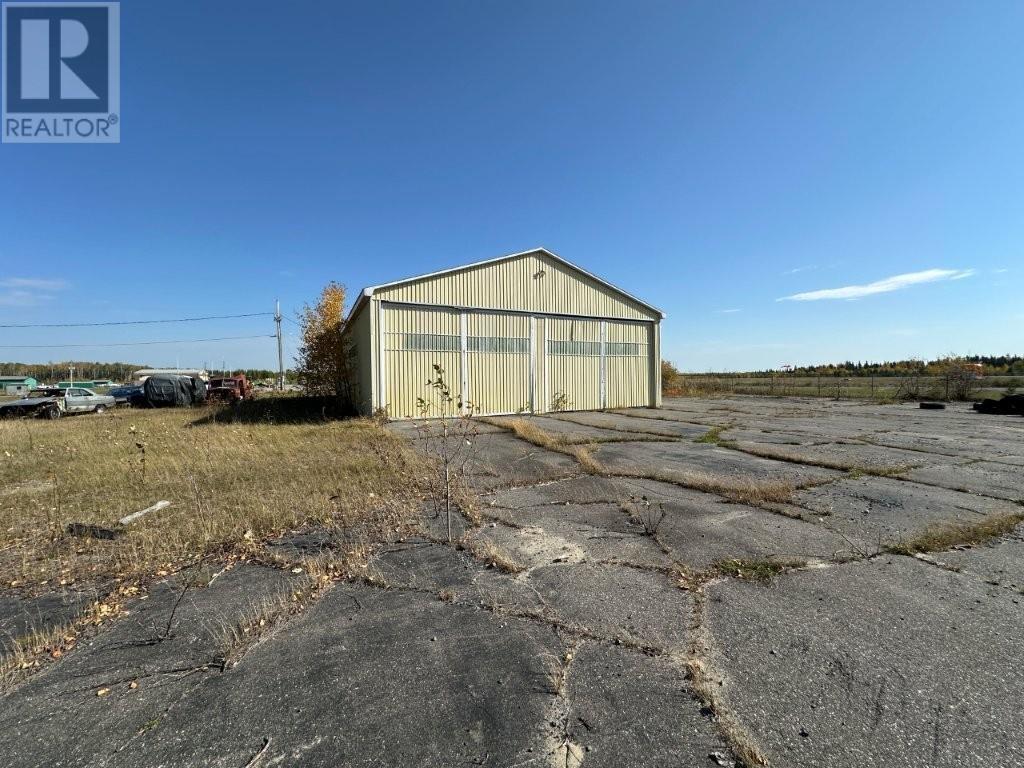 Unique opportunity to own a large 45x80 ft shop located right at the Geraldton Airport - a prime spot with excellent potential and versatility. The shop features two distinct sections: the north side, accessed from Macodrum Drive, is a heated mechanical shop ideal for repairs, maintenance, or related work; while the south side offers direct access to the runway, making it perfect for plane storage or aviation related operations (not currently heated). The property includes a large parking lot and convenient access for both vehicles and aircraft, and is situated close to the Ring of Fire development, offering long-term potential for future growth and investment. This sale is for the building only, as it sits on leased municipal land, and per current municipal regulations, business operations must also include an aviation-related business. Whether you're expanding an aviation business or seeking secure storage with runway access, this property offers a rare and practical set up. Visit www.century21superior.com for more info and pics. (id:64974)