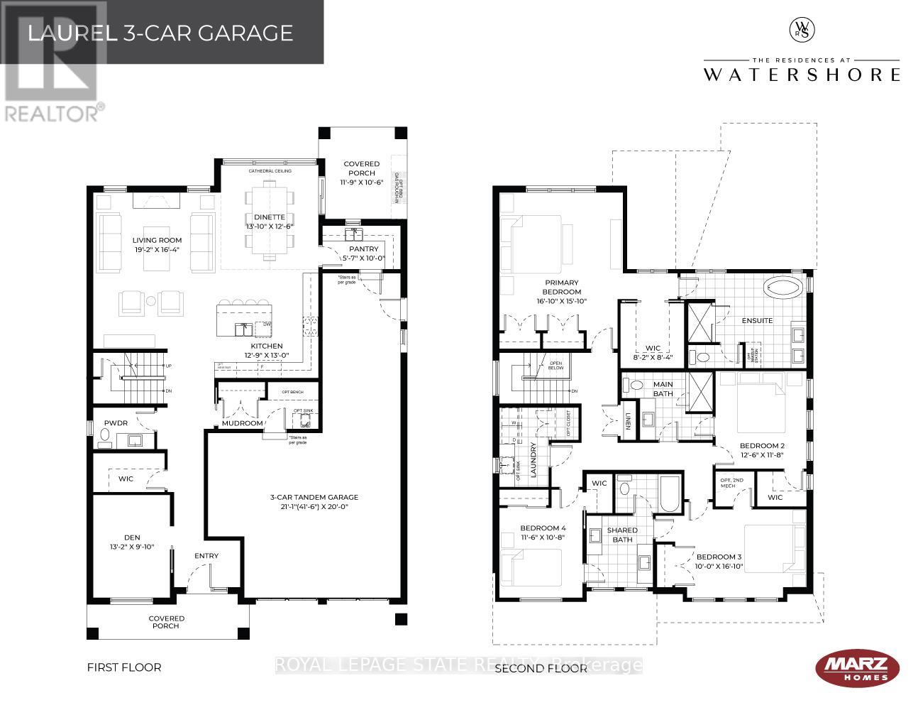 Welcome to The Residences at Watershore, an exceptional new lakeside community in Stoney Creek, just steps from the shores of Lake Ontario. This exclusive enclave blends refined design with modern comfort and includes over $80,000 in upgrades. The 3-car tandem garage Laurel features 4 bedrooms and 4 baths across 3,347 square feet of meticulously designed living space. The main floor offers soaring nine-foot ceilings and an open-concept layout that seamlessly connects the kitchen, dining, and living areas. A vaulted dinette ceiling and oversized windows fill the home with natural light, creating an airy and inviting atmosphere. The chef-inspired kitchen is the heart of the home, featuring an oversized island ideal for entertaining, a walk-in pantry complete with sink, cabinetry, and shelving, and direct access to the mudroom for added convenience. A den located at the front of the home provides a versatile space for productivity & relaxation. A covered back porch extends the living area outdoors for year-round enjoyment. Upstairs, the luxurious primary suite boasts a spacious walk-in closet and a spa-inspired ensuite with a custom glass shower, double sinks, and a deep soaker tub- a private retreat designed for relaxation. Additional bedrooms are generously sized, while a convenient 2nd floor laundry with sink and a shared bathroom ensure comfort and practicality for family and guests. Located near major highways, shopping, and everyday amenities, the Residences at Watershore offers a rare opportunity to embrace the tranquility of lakeside living without sacrificing convenience. With 65% of the community already sold and closings scheduled just one year from purchase, this home combined timeless style with modern luxury. Please note: photos are provided for illustrative purposes only and do not reflect the exact features of this home. The images shown are of similar Laurel floor plan and include upgrades and finishes that are not part of the standard purchase price. (id:64974)