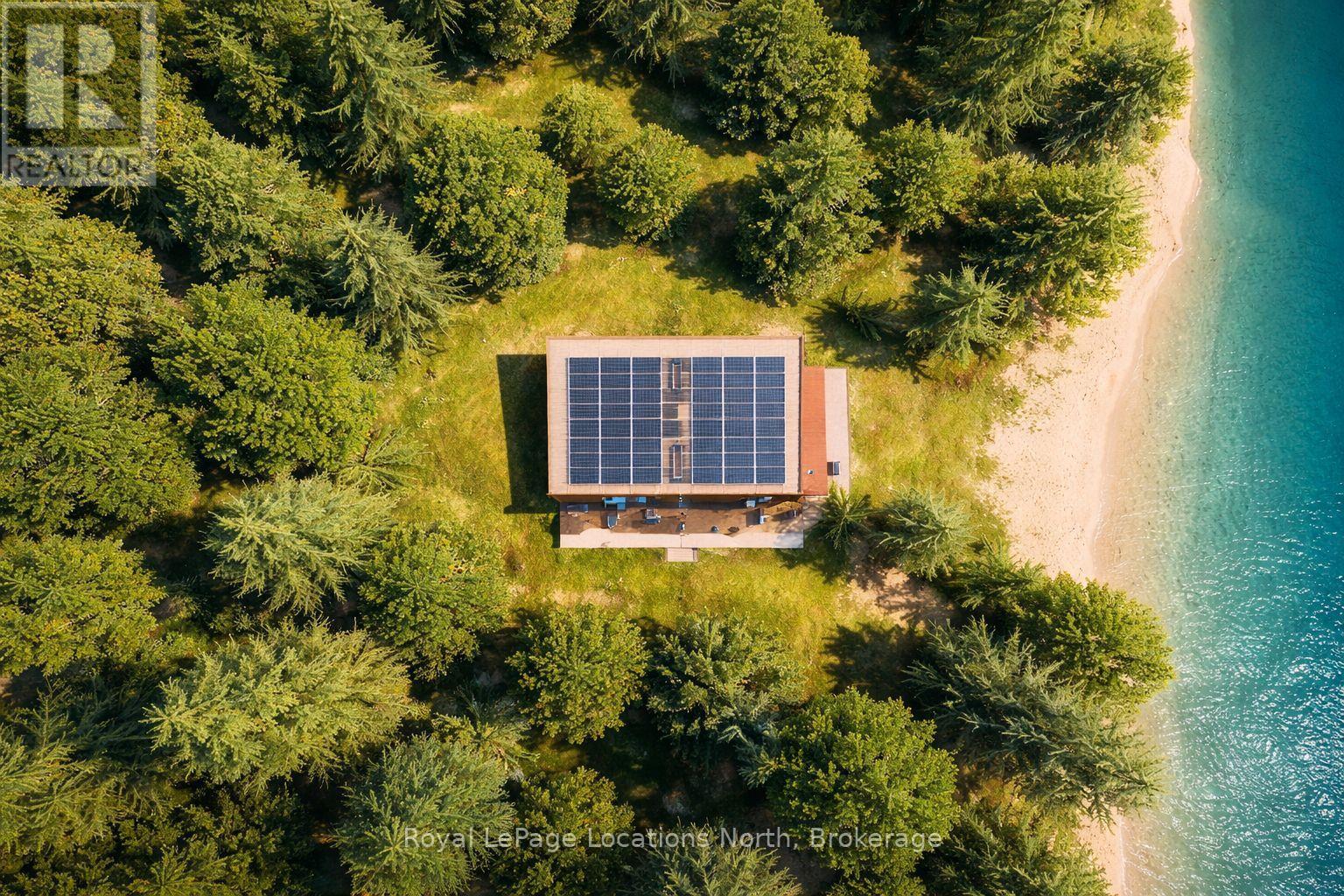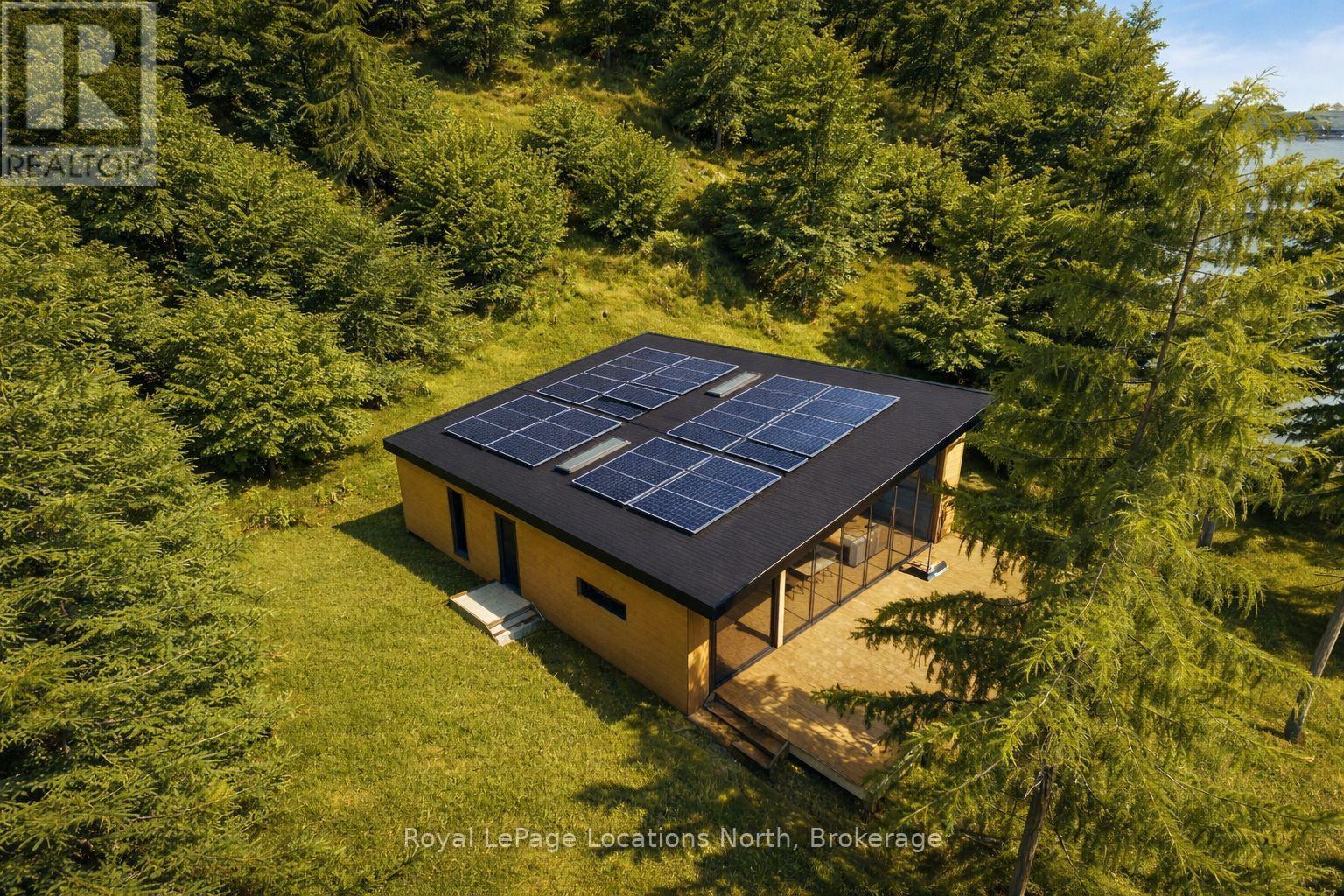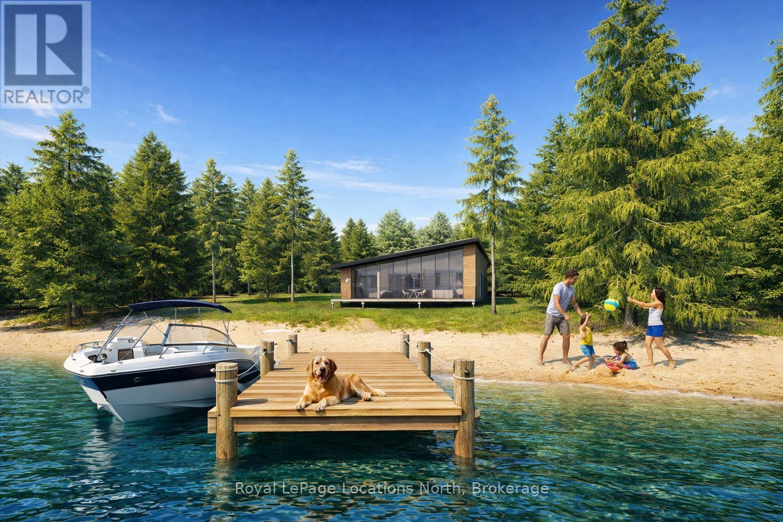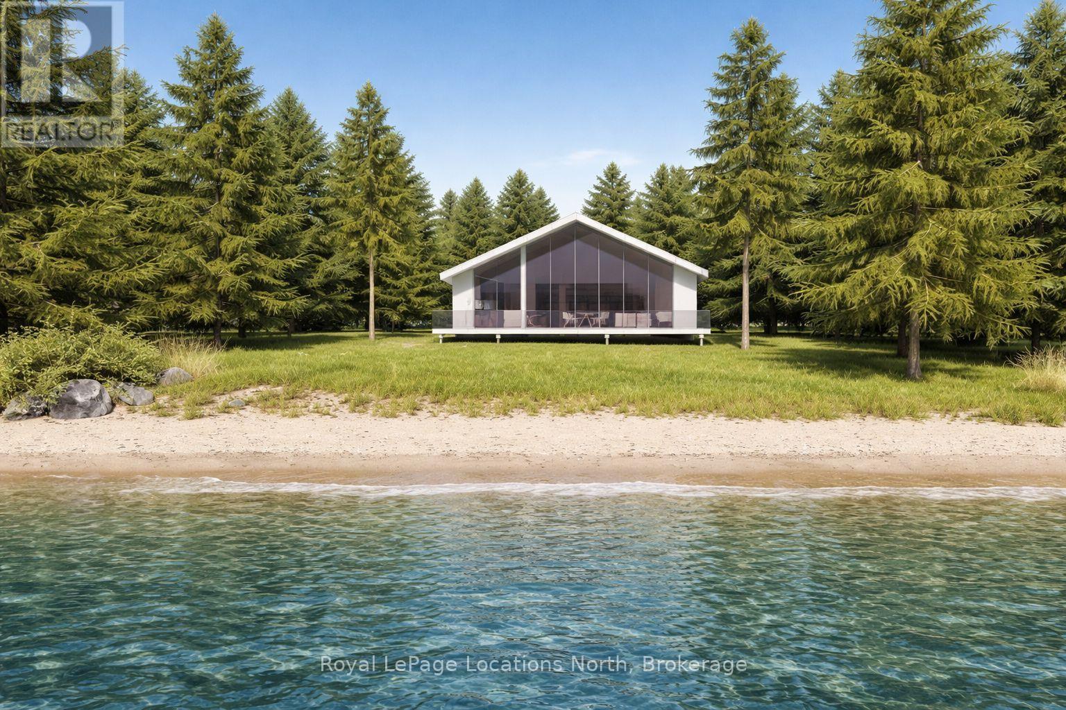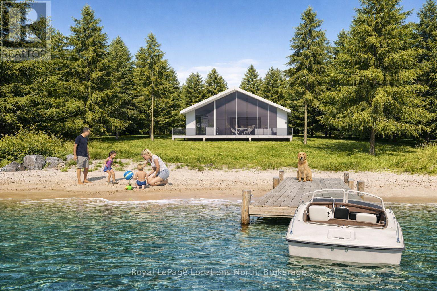 **Luxury Off-Grid Living: A Modern Masterpiece on Giant's Tomb Island** Discover the pinnacle of island exclusivity on the protected leeward side of Giant's Tomb Island. This TO BE BUILT 1,470 sq. ft. contemporary cottage offers a rare opportunity to own a sustainable sanctuary in southern Georgian Bay, adjacent to the pristine wilderness of Awenda Provincial Park. The "Shed Roof", one of two designs, is a triumph of modern aesthetics and functional island living. A full-height glazing wall spans the lake-facing façade, capturing uninterrupted, panoramic views of the bay's turquoise waters. The home is engineered for a seamless indoor-outdoor lifestyle, featuring a true beachfront walkout design that leads from the living space directly to a full-width deck and your own private shoreline. At the heart of the home is an expansive open-concept Great Room, perfectly designed for entertaining. The chef-Inspired kitchen features a central social island and a walk-in pantry for effortless storage. A private primary bedroom suite is a secluded retreat situated in the right wing, ensuring maximum privacy from guest areas. Two other well-proportioned bedrooms in the left wing share a full bath. A centrally located den serves as the perfect home office or overflow sleeping area. Embrace off-grid independence and self-sufficiency with a state-of-the-art rooftop solar power system, complete with an inverter and battery storage. This smart-home-ready build includes high-performance energy-efficient glazing, a modern septic system, and fully pressurized domestic water systems, ensuring luxury comfort in a remote setting. The Ultimate Georgian Bay Retreat. Experience the rugged beauty of granite boulders and crystal-clear water from a home designed to blend into the natural environment. Pick one of three lots and customize your vision of island luxury. **All home imagery is conceptual** (id:64974)