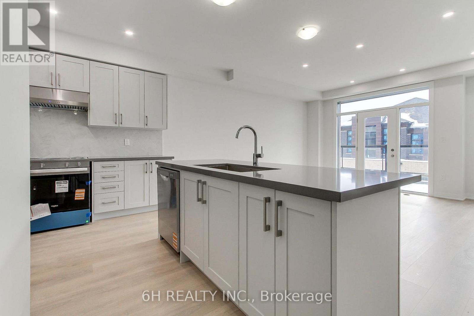 Live Beyond Ordinary at Townsquare: An exquisite, turnkey masterpiece by OPUS Homes-BILD Builder of the Year (2024 & 2021). This brand-new 3-storey townhome offers striking curb appeal and a meticulously upgraded interior designed for immediate enjoyment. Step through the 8' tall doors into an airy retreat featuring 9' ceilings, triple-glazed windows, and premium Tier 2 "Forest Dainitee" laminate flooring throughout-offering a sleek, carpet-free environment on all levels. The heart of the home is a chef-inspired kitchen featuring upgraded "Preston MDF Fog Grey" cabinetry with deep uppers over the fridge, a powerful 680 CFM under-cabinet hood fan, and stunning "Grey Expo" quartz countertops with a sophisticated 1.5" mitered edge. The culinary space is perfected with a Blanco supersingle sink, Moen fixtures, and an elegant 2x6 Eterna Volkas White backsplash in a custom herringbone pattern. Lighting is a focal point, with an enhanced package including 8 pot lights in the Great Room and 4 in the kitchen. Both the Principal Ensuite and the main bathroom are fully upgraded, boasting designer 1" hexagon and mosaic flooring, premium cabinetry, and quartz counters. Complete with a full appliance package, solar panel conduit, fresh home air exchanger, and an electric car charger rough-in, this home is the ultimate blend of sustainability and modern luxury. Don't settle for ordinary; move right into the OPUS lifestyle. (id:64974)
