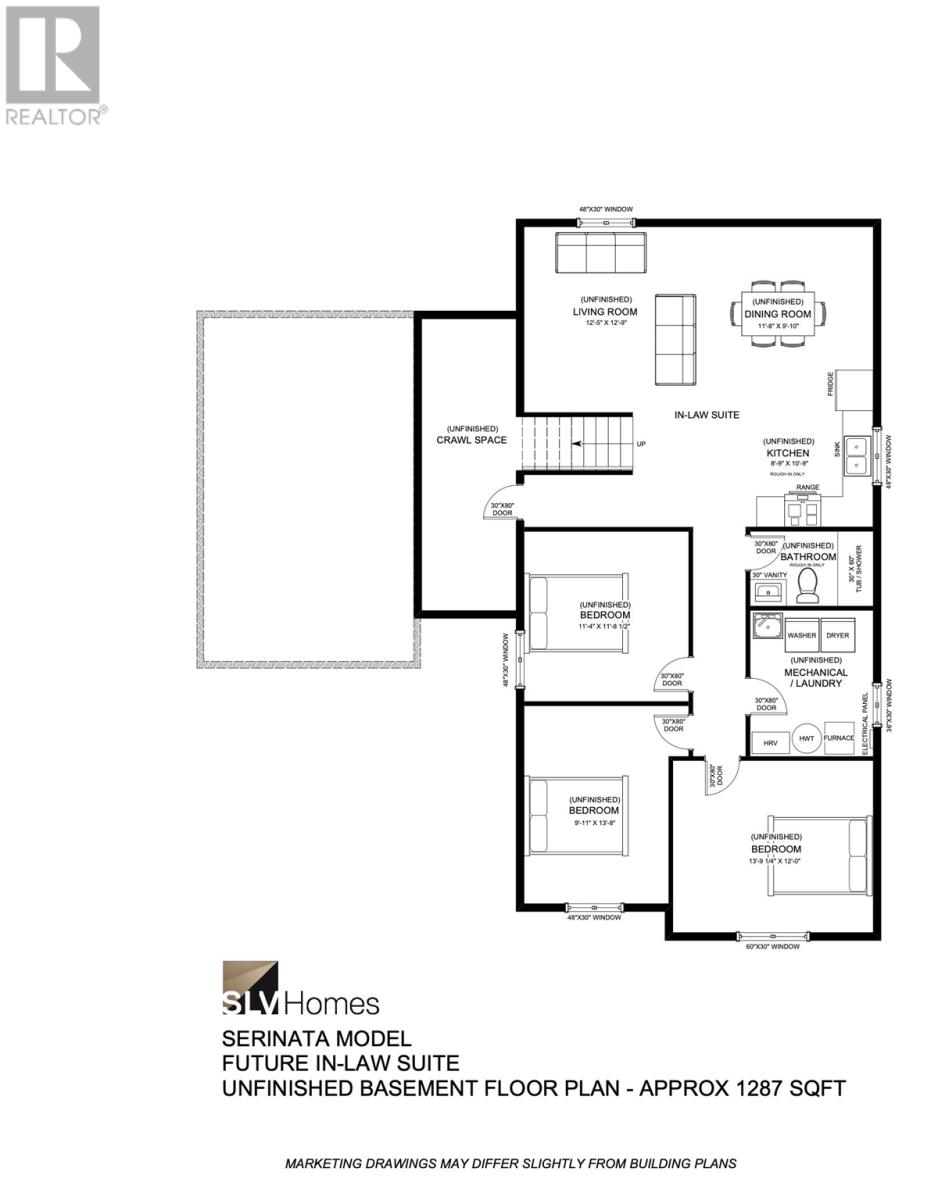 Thoughtfully Designed, Quality Built. Welcome to The Serinata, a beautifully designed 1,324 sq ft bungalow by SLV Homes, located on Lot 4 on Sherbrook Drive. This thoughtfully planned home offers modern design, quality craftsmanship, and a functional layout ideal for comfortable everyday living, with the added benefit of an unfinished basement designed for future in-law suite potential. The main level features a bright open-concept kitchen, dining, and living area, perfect for both entertaining and family life. The custom kitchen includes a center island, while the dining area provides direct access to a 12'x 12' deck, creating the perfect space for outdoor relaxation. This home offers three bedrooms on the main floor, including a spacious primary suite with walk-in closet and private 3-piece ensuite featuring a custom shower. Two additional bedrooms are conveniently located near a 4-piece main bathroom. A welcoming entrance and main-floor laundry add everyday convenience to the thoughtful layout. The home also includes a single attached garage with interior access. Built with comfort and efficiency in mind, features include 9' ceilings on the main floor, high-efficiency natural gas furnace, HRV unit, central air conditioning, tankless hot water heater (rental), and a gas BBQ hook-up at the rear deck. The unfinished basement offers excellent future development potential and is designed with a possible in-law suite layout, including rough-ins for a future kitchen and bathroom, along with space for additional bedrooms and living area. Tarion Warranty included. HST included with rebate assigned to the builder. Home is not built yet. Construction to commence soon. (id:64974)