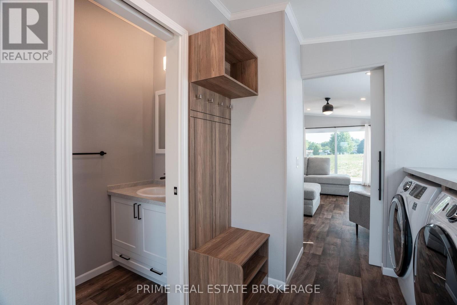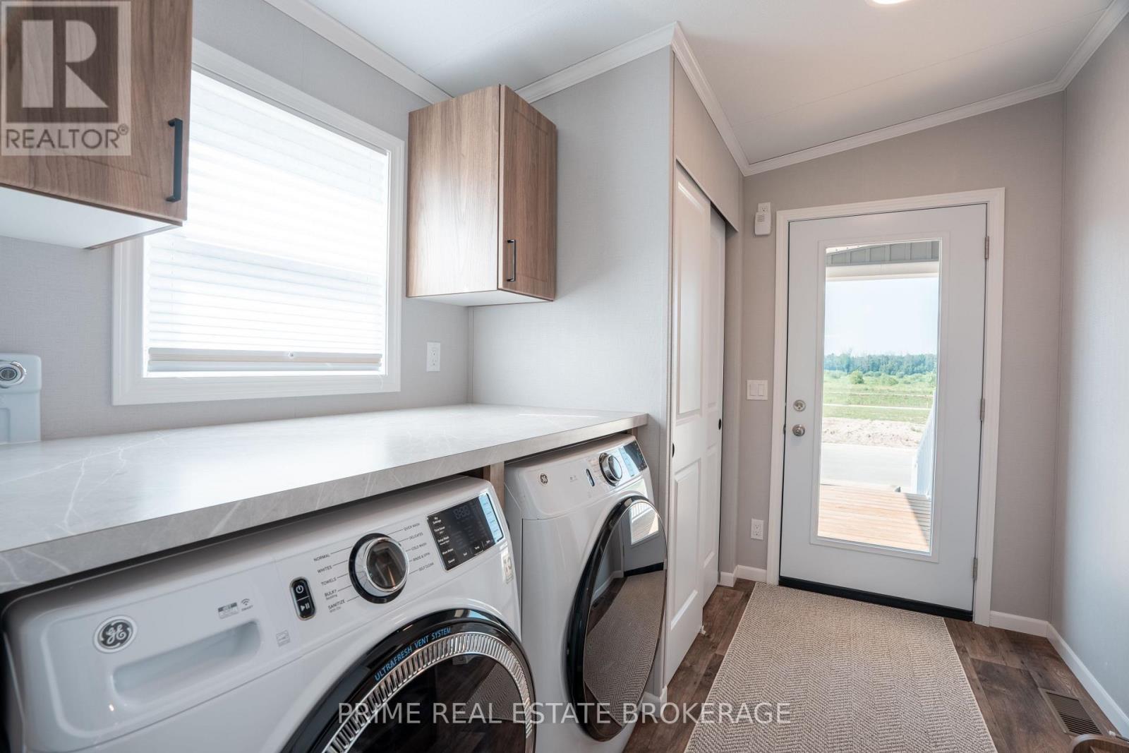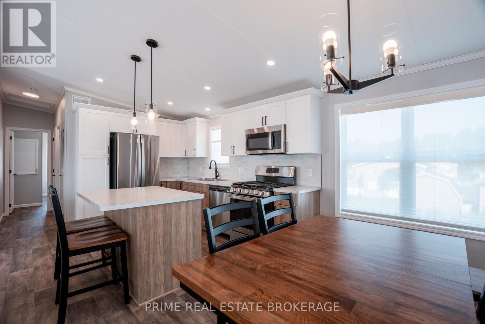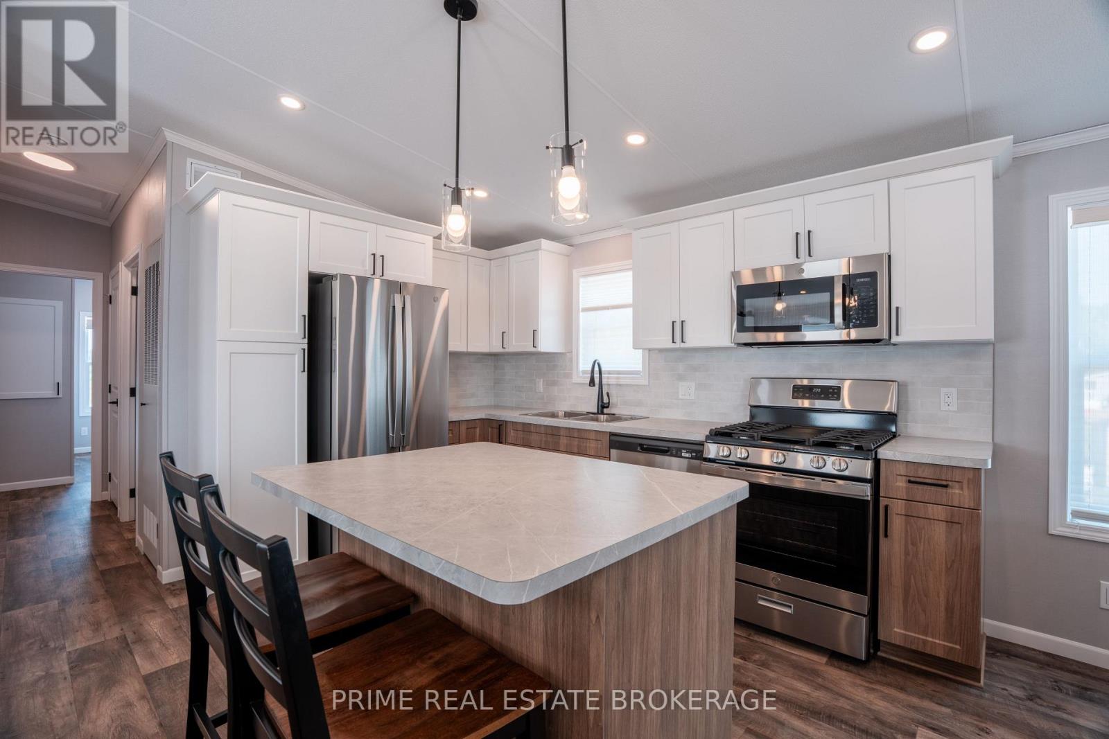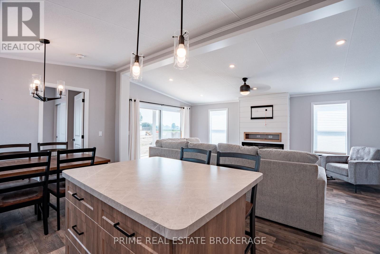 Discover the perfect blend of style, comfort and simplicity in this beautifully crafted Canadian-built Northlander Aspire, nestled in The Village - a peaceful, well-maintained community just east of Listowel. This 2-bedroom, 1.5 bathroom newly constructed modular home offers thoughtful features throughout. Enjoy a morning beverage or unwind in the evening in a serene, natural setting on the charming 10' x 10' covered front porch. Inside, a bright and open-concept layout connects the kitchen, dining, and living areas, enhanced by large windows, patio doors, and modern lighting. The kitchen is both functional and stylish, featuring elegant, two-tone white/urban cabinetry, stainless steel GE appliances, a ceramic tile backsplash, and an island with seating ideal for casual meals or entertaining. The spacious living area features a built-in fireplace, creating a warm and inviting space during the winter months. Adjacent to the main living area is the 2 piece bathroom and a laundry room with storage for everyday convenience while a second bedroom ensures there is space for visitors or an alternate work area. The rear 8'x 10' covered porch provides the perfect setting for relaxation and casual enjoyment with neighbours and friends. Paved streets and walking trails along the perimeter of the community promote a healthy lifestyle and residents of The Village also benefit from a welcoming clubhouse offering social events and a sense of connection. With shopping, dining, curling, golf, and other amenities just minutes away in Listowel, this home offers an easy going lifestyle in a quiet and friendly setting. NOTE: Land is leased ($575/month). Modular home is owned-a mortgage specialist can be available, if desired. Grass to be planted by the owners as construction and set up are completed in this new area. (id:64974)