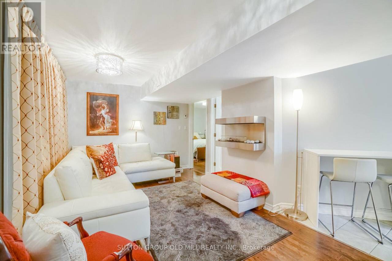 Welcome to this beautifully appointed ground-level garden suite in the heart of Toronto's vibrant Junction neighbourhood-offering the comfort & feel of a main-floor home, not a typical basement apartment. Your front door is at ground level! It's your own private entrance complete with a patio for your exclusive use! This space invites you to start your mornings with coffee outdoors & to come home to a quiet, refined retreat. Inside, luxury meets thoughtful design. The custom chef's kitchen features quartz countertops, tile backsplash, ample storage, high-end stainless steel appliances, & a gas stove. It all flows seamlessly into a spacious open-concept living & dining area.There's a built-in breakfast bar with 2 chairs that works for meals or for a work station. A sleek wall-mounted fireplace adds warmth & sophistication, creating the perfect setting for relaxing or entertaining. The generous L-shaped bedroom offers excellent space & storage options - and includes the washer, dryer & laundry tub behind one of the mirrored doors. The spa-inspired bathroom delivers true indulgence with a separate glass shower & a deep soaker tub. And a shared storage space is also available to be included. This rare walk-out suite sits at ground level with abundant natural light, making it feel bright, airy, and welcoming throughout. Adding to the convenience is direct access to your very own laneway parking space just steps from your door which is a standout feature in the city. Stylish, serene, & exceptionally well-located, this is a unique opportunity to enjoy elevated living in The Junction. The location is exceptional as you can walk to transit, shops, restaurants and even High Park in one of the cities best neighbourhoods. This suite is exceptional in so many ways - looking for an exceptional tenant to make it their new home! (Photos from previous occupant.) Plus 40% of utilities. No pets. No smoking. (id:64974)