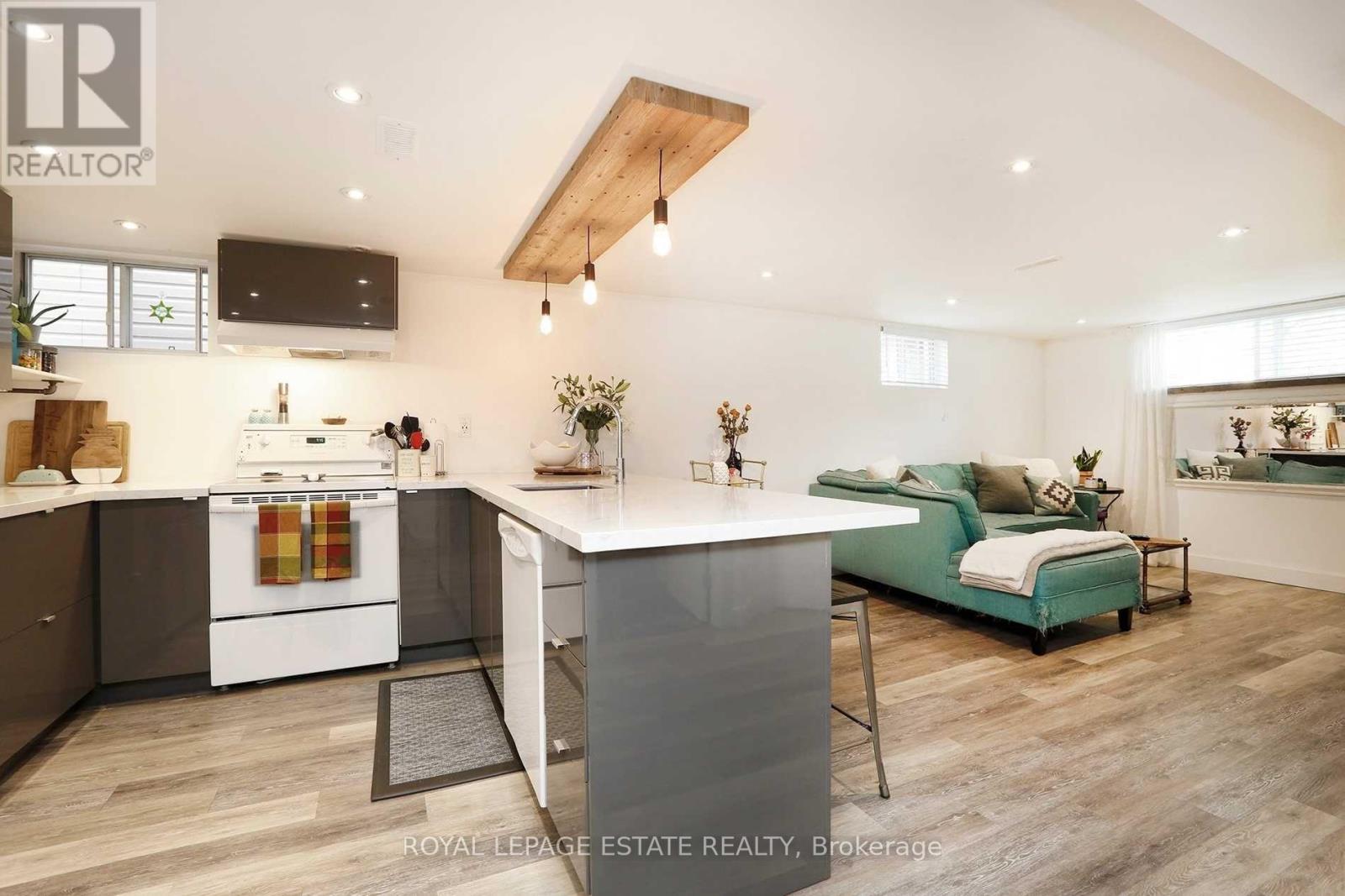 Beautifully renovated two-bedroom basement apartment located on a quiet residential street just north of Kingston Road. This well-finished space offers modern upgrades, clean design, and practical living in a convenient Scarborough location.The apartment features pot lights throughout, keeping the space bright and comfortable. The kitchen has been updated with new cabinetry, quartz countertops, and a custom light fixture that adds character without feeling overdone. The bathroom is a standout, finished with heated marble floors, granite countertops, double sinks, and a glass walk-in shower.Everyday amenities including shops, cafés, restaurants, grocery stores, and services are close by along Kingston Road. Nearby parks and green spaces provide options for walking, jogging, or cycling, with Scarborough Bluffs parks and waterfront trails easily accessible by bike or short drive.Transit is convenient with TTC bus routes along Kingston Road, offering straightforward connections to subway stations and the rest of the city. The area is established and residential, with access to schools, community centres, and recreational facilities. Shared laundry facilities included. Kitchen equipped with refrigerator, stove, microwave, and dishwasher. Utilities are included; tenant is responsible for internet, phone, and cable services if desired. Unit features built-in shelving, all existing electric light fixtures, heated marble bathroom floors, and granite bathroom countertops. Tenant has use of the backyard and BBQ. Separate entrance provided. Short-term rentals, including Airbnb, are strictly prohibited.Photos are from when the unit was previously occupied. (id:64974)