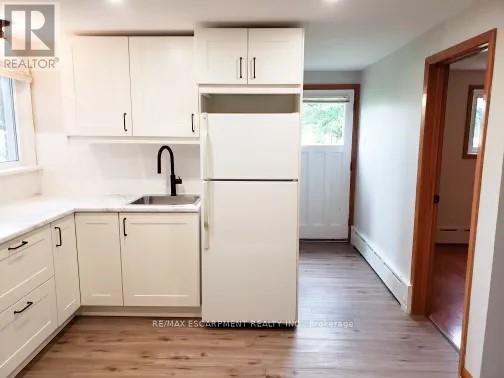 Welcome to the lower unit of this Port Colborne Duplex! This 2 bedroom, 1 bathroom unit was extensively renovated In 2021. The kitchen boasts brand new cabinets and luxury vinyl flooring and also features pot lights and ceramic tile backsplash. Primary bedroom has original hardwood flooring, a ceiling fan with a light and a deep single closet with under stair storage. Second bedroom is upstairs and has carpet flooring, a ceiling fan with a light and a double closet. The 4-piece bathroom offers luxury vinyl flooring, a new sink and vanity, dual flush toilet and a bath-fitter tub/shower. Separate laundry room from the other unit includes a washer and dryer, storage closet and laundry sink. Heat and water are included in the lease, hydro is in addition to the lease costs. Rear yard is for the enjoyment of the OTHER unit, however the small patio located just outside the rear door of this unit will be available for use. Garage will be used by the landlord and is not included with the unit. 2 driveway parking spots on the right side of the driveway. (id:64974)
