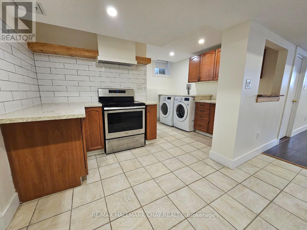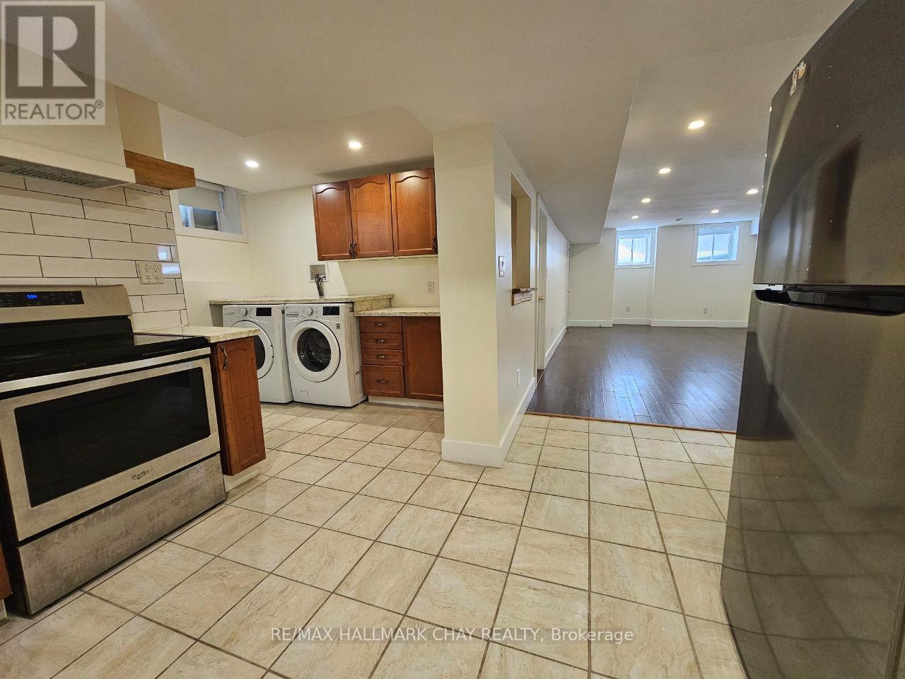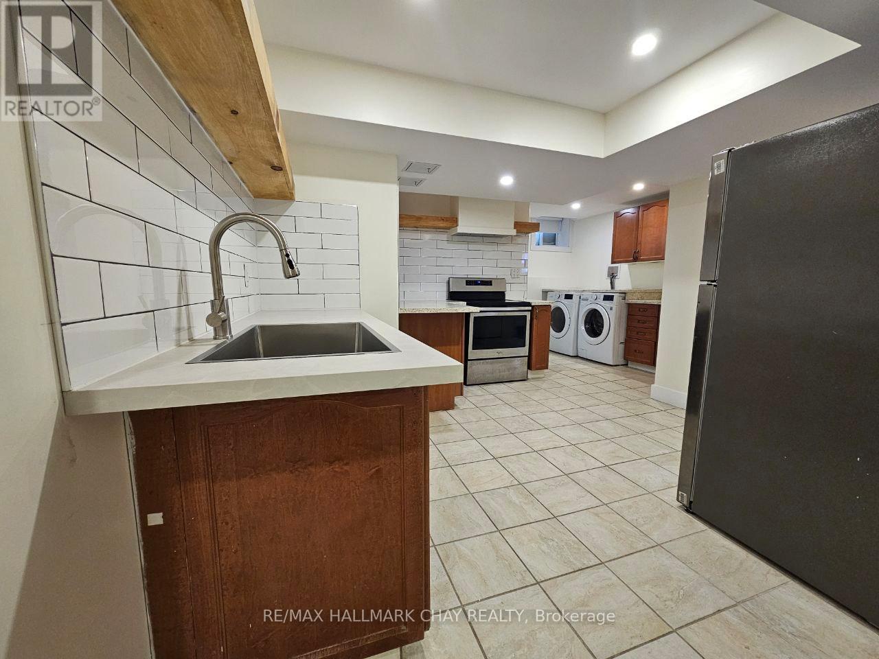 Legal 1-bedroom basement apartment available for annual lease in the desirable Holly neighbourhood in Barrie's south end. This well-maintained unit features a separate entrance, private in-suite laundry, and a spacious kitchen with ample cabinetry and stainless steel stove and refrigerator, dishwasher, and exhaust fan hood. Washer and dryer are included for your exclusive use. Large windows provide plenty of natural light throughout the space. One driveway parking space is included. Tenant to pay one-third of utilities in addition to the monthly rent. Ideally located just minutes to Highway 400 and close to all amenities, shopping centres, parks, and everyday conveniences. Only a 15-minute drive to the Barrie waterfront, offering beautiful lake views, walking trails, beaches, and year-round recreational activities along Kempenfelt Bay. (id:64974)