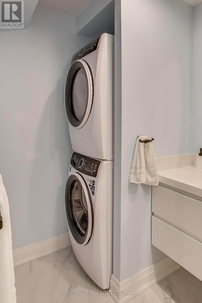 Welcome to this stunning, brand new lower-level basement apartment at 21 Rolyat Street... never lived in and thoughtfully designed with modern comfort and style in mind.This bright and beautifully finished suite features a gorgeous new kitchen complete with dining space, tiled backsplash, stainless steel appliances, a built-in cooktop, built-in dishwasher, stainless steel fridge, smooth ceilings, and elegant pot lights throughout. The open-concept living area offers a warm and inviting space to relax or entertain.Enjoy two spacious bedrooms and a contemporary 4-piece bathroom, all finished with quality craftsmanship and attention to detail. The unit also includes a full-sized, private front-load washer and dryer for your exclusive use.With a private entrance and your own separate hydro meter, you'll appreciate both privacy and independence. All utilities are included except hydro & internet/cable.Situated at 21 Rolyat Street, this unbeatable location places you in the heart of the city... just steps to the vibrant Ossington Avenue strip, a lively and walkable destination known for its cozy cafés, bakeries, boutiques, pubs, restaurants, and transit. You're also just minutes from Trinity Bellwoods Park, making it perfect for enjoying green space in a highly desirable, family-friendly, and safe neighbourhood.This is a rare opportunity to live in a brand-new suite in one of the city's most sought-after communities. Move in and enjoy modern living at its finest!Please NO smoking and NO pets. (id:64974)