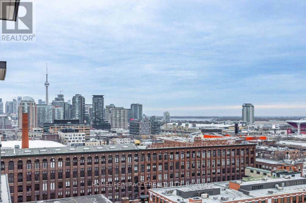 Experience modern urban living at XO Condos by Lifetime Developments. This stylish 1 Bedroom + Den suite offers a functional layout with a versatile den/flex ideal for a second bedroom, home office, or guest space, along with two full bathrooms for added convenience. Featuring approx. 586 sqft of interior space plus a private balcony 54sqft, the suite is enhanced by soaring 9-ft ceilings, premium laminate flooring, a sleek contemporary kitchen with integrated appliances. Wrap-around floor-to-ceiling windows provide breathtaking panoramic views of the city and lake, filling the space with natural light. Enjoy exceptional building amenities including a gym, party room, media room, and think tank. Ideally located with the streetcar and TTC at your doorstep, steps to King Street shops and cafes, Liberty Village, the CNE, and the lakefront, with an easy 20-minute commute to the Financial District. (id:64974)