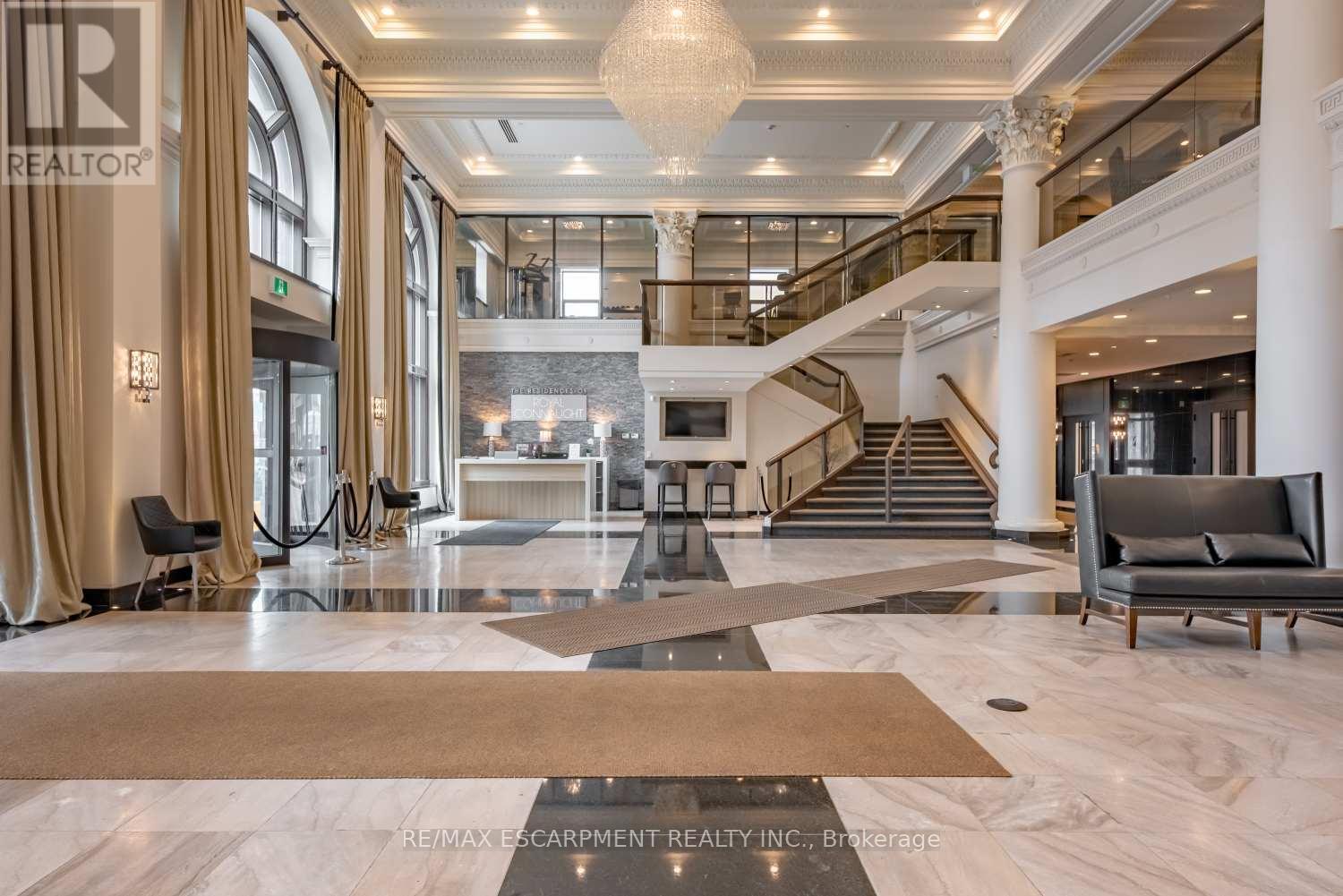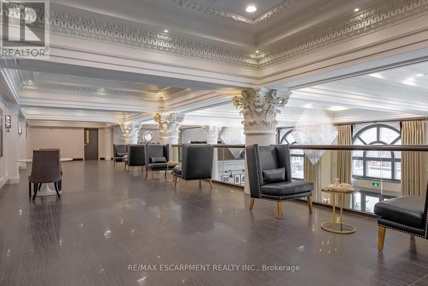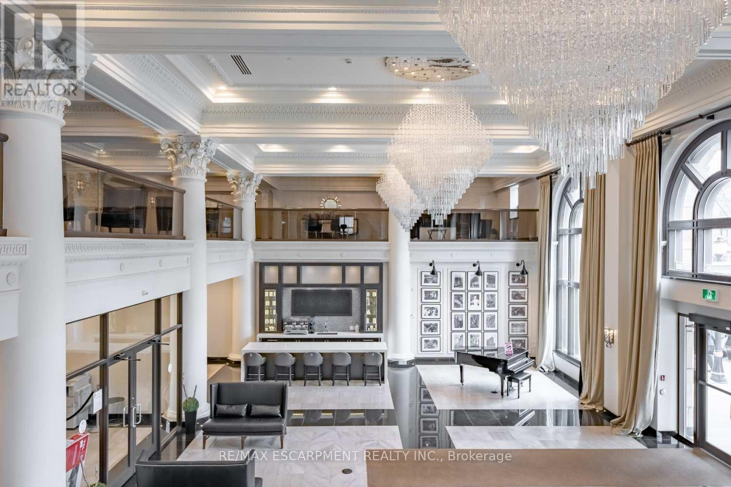 This is your chance to live in a piece of history! The Royal Connaught building is in the very heart of downtown Hamilton. This furnished lower penthouse apartment is over 700 square feet! Look out over the vibrant downtown skyline, with views of the lake and Toronto skyline. This awesome one-bedroom, one-bathroom condo has 12-foot-high ceilings and an extremely usable floor plan. The large primary bedroom is the perfect sanctuary. There is a convenient in-suite laundry as well. The building itself is magnificent, steeped in history. Equipped with many amenities - a fully equipped gym, a state-of-the-art theatre room, rooftop terrace, concierge service, and a lobby to die for! Starbucks is right outside your door, just an elevator ride away. Fantastic location steps to the GO Station, James Street North, King William Street, the Art Gallery of Hamilton, the Farmers' Market, and more. Welcome home! RSA. (id:64974)