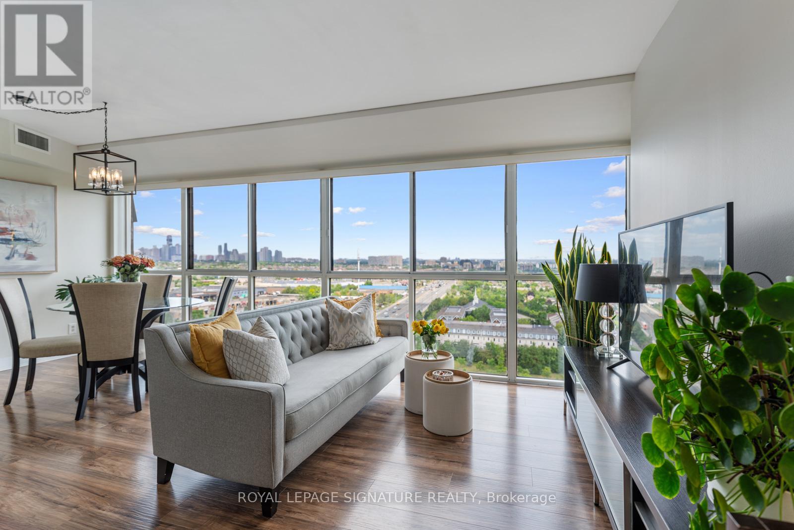 Stunning Penthouse Condo with Breathtaking Lake & City Views!Welcome to this beautifully maintained 2+1 penthouse suite in the highly sought-after Kingsmere on the Park, offering unobstructed views of Lake Ontario and panoramic sunrises and sunsets from wall-to-wall, floor-to-ceiling windows. This spacious 2-bedroom plus den layout features an open-concept living/dining area, a Modern & Upgraded kitchen with ample cabinetry/ Quartz Countertops and Stainless steel appliances.The generously sized primary suite includes a 4-piece ensuite bath and walk-in closet, complemented by a second full bathroom,ensuite laundry, and additional pantry/storage. This unit comes with two premium parking spots and a private storage locker.Residents enjoy exceptional indoor amenities, lush landscaped grounds, an expansive outdoor patio, and direct access to trails and Huron Park. Experience the serenity of a quiet, community-oriented building-ideally located near shopping, transit, schools(including UofT), hospitals, and recreation.Amazing amenities: Carwash, Hobby room, Indoor Pool, Gym, Sauna, Bike Room, Guest Suite, Party room, Cinema room. All Utilities are included as well as Cable TV/Internet and the daily joy of breathtaking sunrises* (id:64974)
