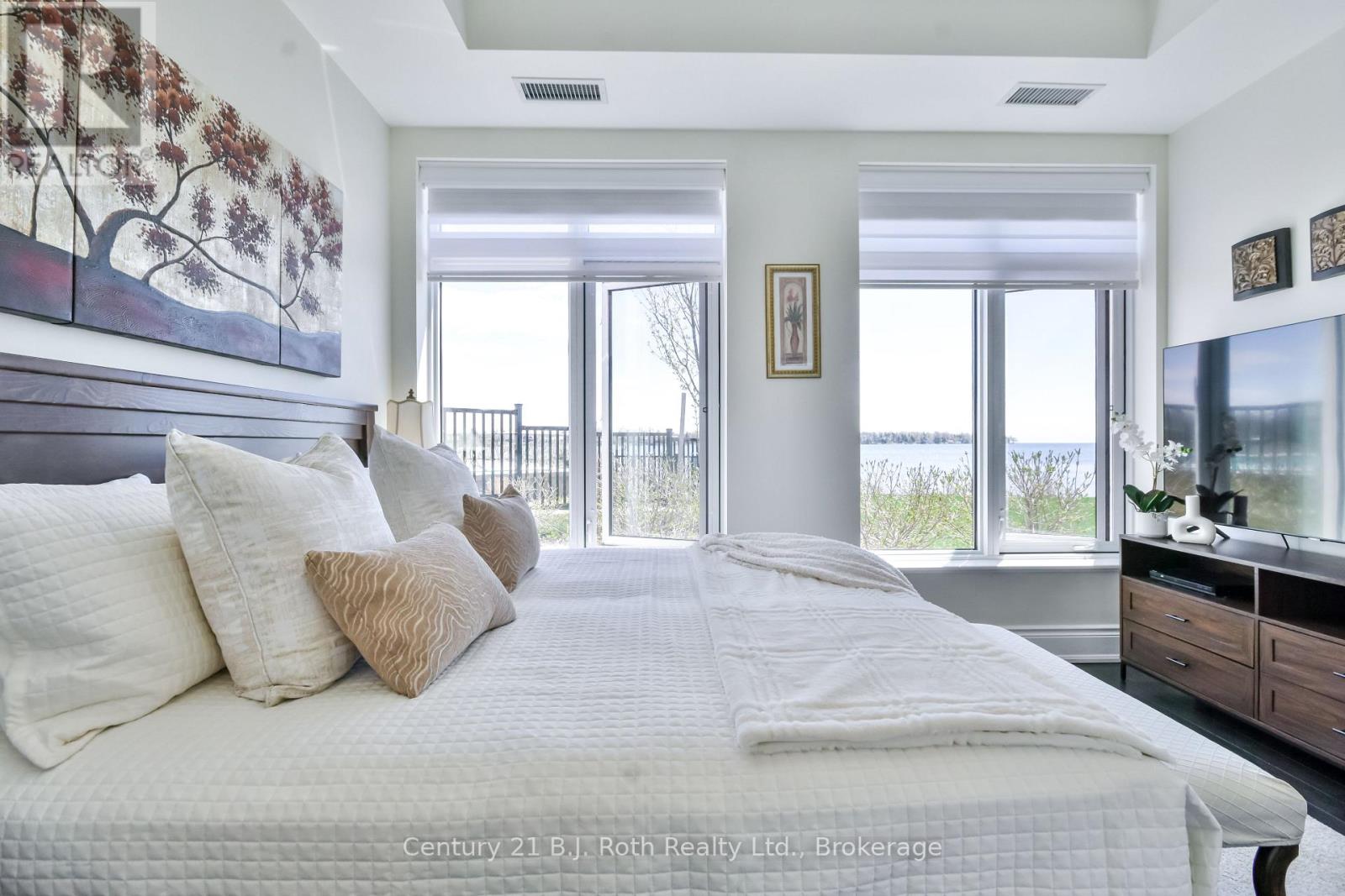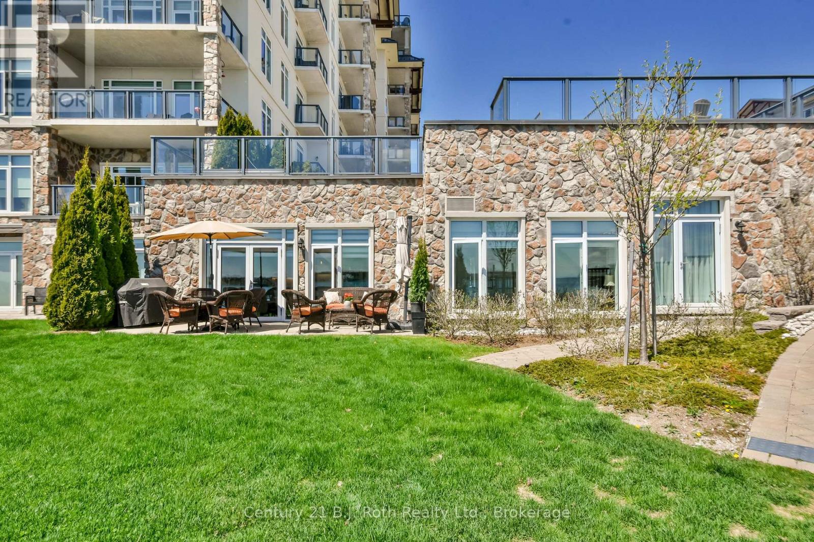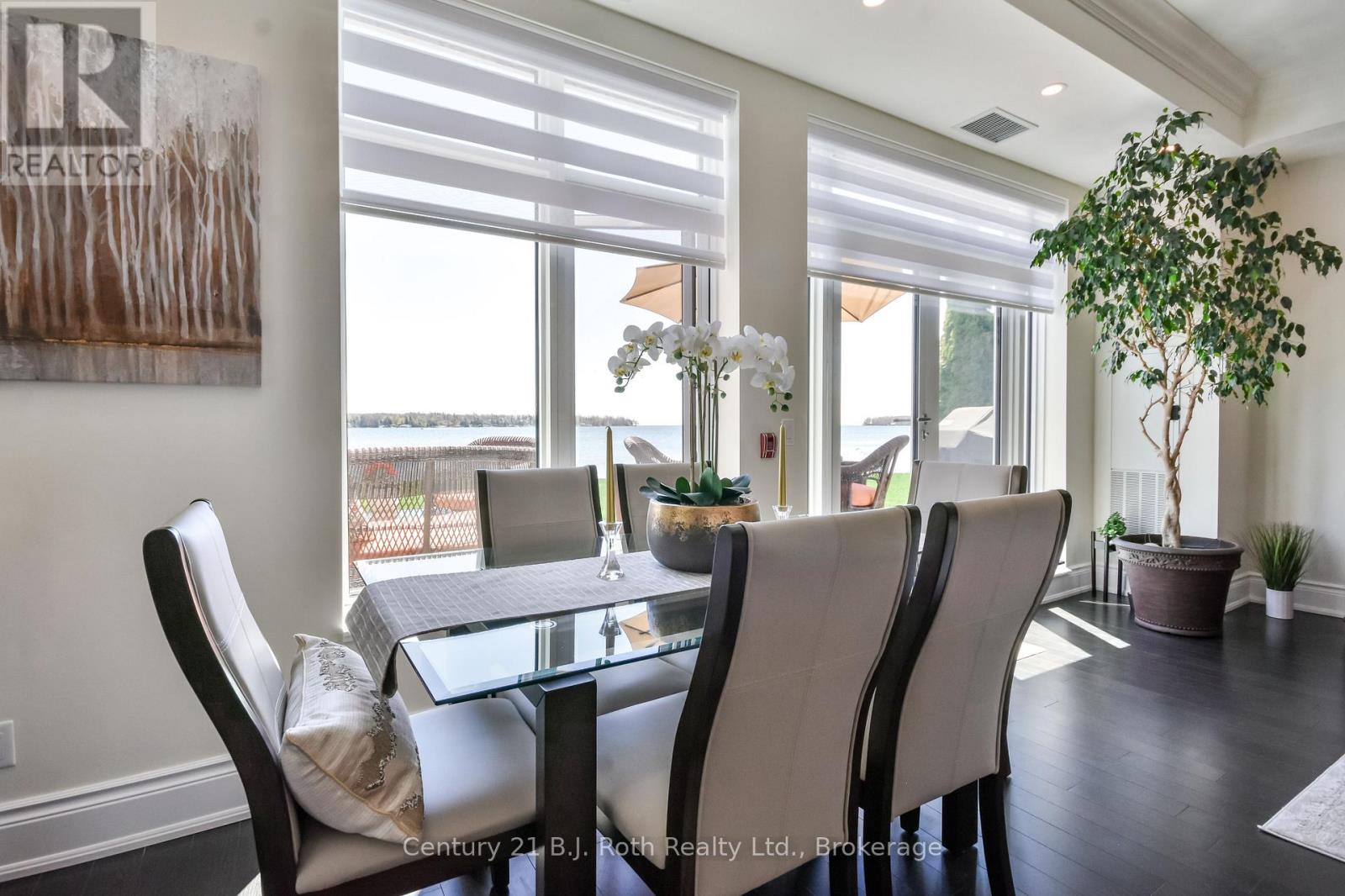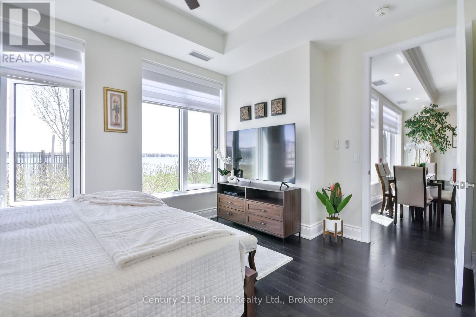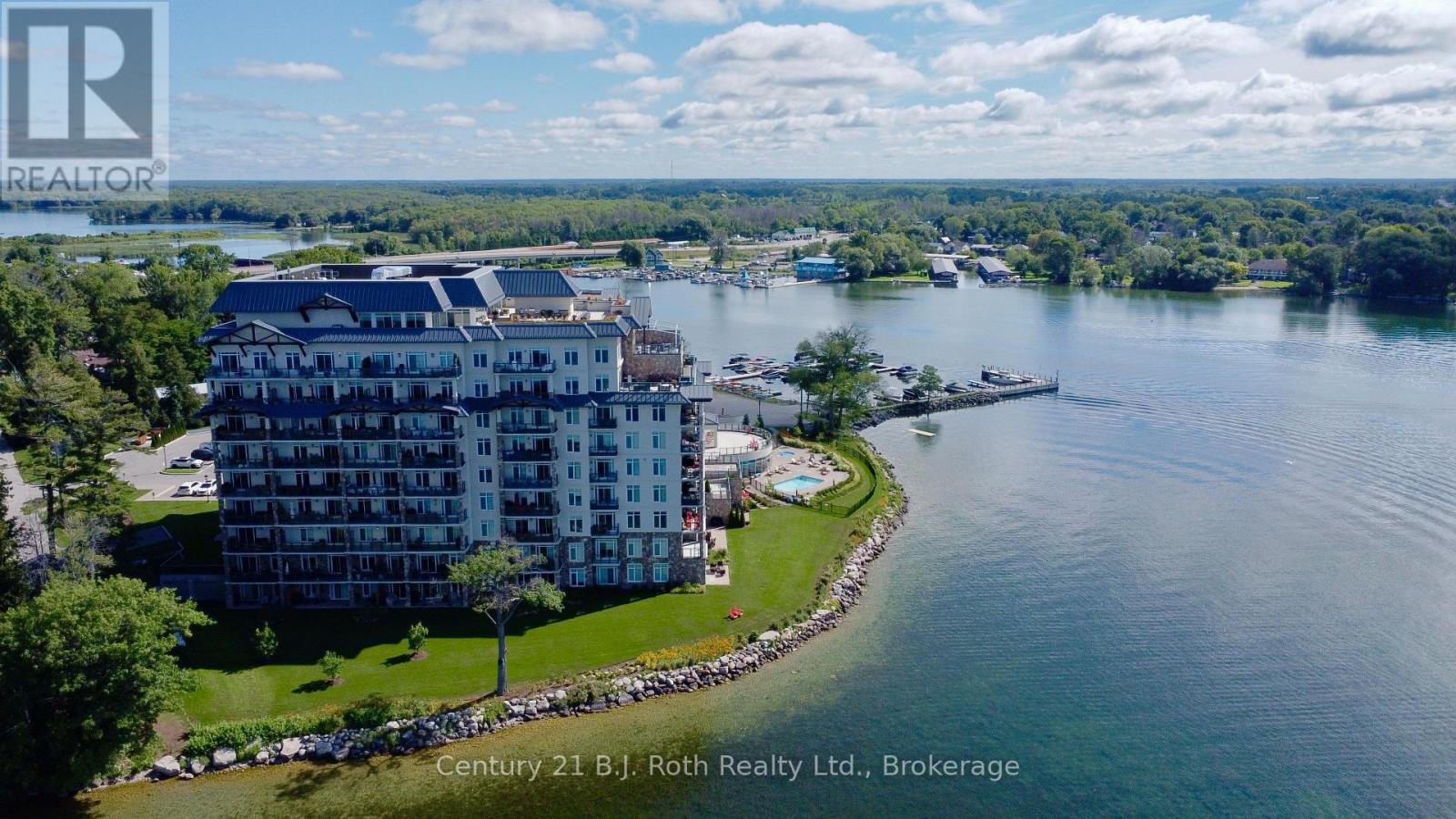 WATERFRONT WALKOUT CONDO WITH PANORAMIC VIEWS, JUST STEPS TO THE WATER. Welcome to waterfront lifestyle at its finest. This ground floor, elegantly appointed 1,262 sq ft condo is perfectly positioned, offering spectacular southwest views from your principal rooms and your 166 sq ft ultra private terrace for year-round enjoyment on Lake Simcoe. Step inside to find a bright large open concept layout with soaring 10-foot ceilings, a high end gas fireplace, and wall to wall windows with motorized blinds, patio doors with phantom screens. The spacious great room flows seamlessly into an upgraded chefs kitchen, featuring premium appliances, elegant finishes, and ample space, perfect for entertaining or simply enjoying the view while you cook. The grand primary bedroom offers the ultimate retreat, complete with its own spa inspired bathroom, and a second full bathroom includes an oversized shower. The generous den provides flexible space for a second bedroom, home office, creative studio or a guest room. Step out onto your oversized, ultra-private terrace and take in the stunning sunsets or your morning coffee with nothing but lake views and fresh air. This condo also comes with the added value of two underground parking spaces, just mere steps away and full access to exceptional resort-style amenities: a sparkling outdoor pool, hot tub, fitness centre, sauna, billiards, table tennis, rooftop lounge, library, hobby room, and elegant party space with BBQs. Hosting overnight guests? A private guest suite is available too. With beautifully landscaped grounds, a quiet shoreline, and dock rentals just steps away, this is lakeside living at its most refined. Located just 10 minutes from downtown Orillia and Casino Rama, and only 1 hour and 15 minutes from the GTA, this property is perfect as a full-time residence, summer home, or weekend escape. Come experience a lifestyle where every day feels like a getaway. (id:64974)
