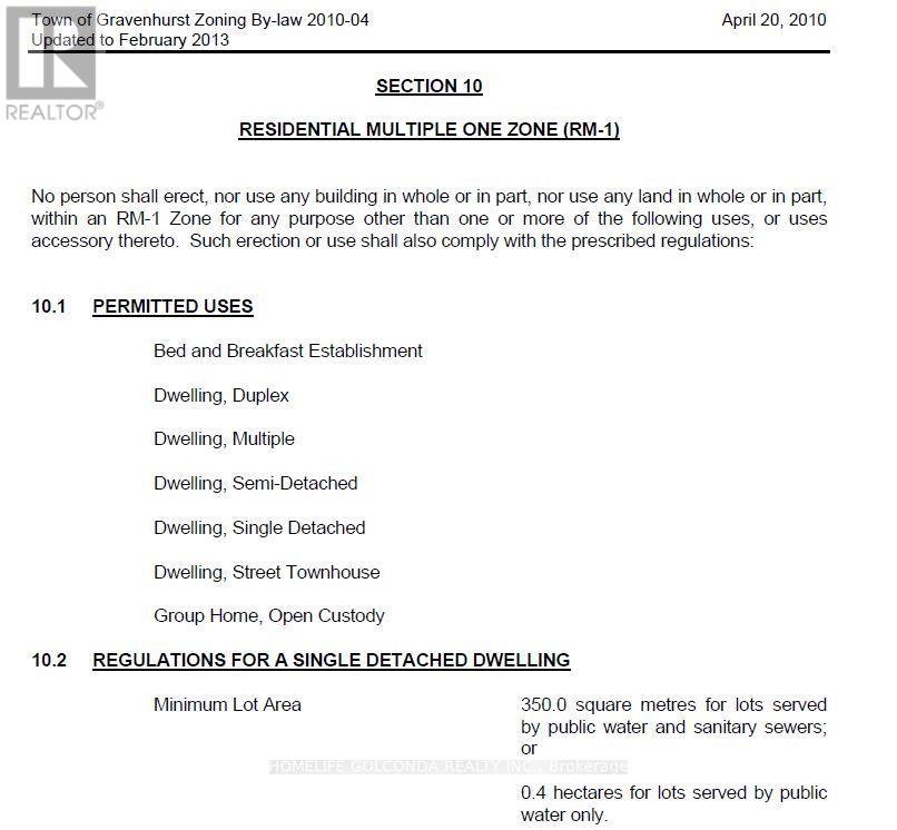 Prime in-town multi-residential development opportunity in the heart of Gravenhurst. Zoned Residential Multiple One (RM-1), permitting a wide range of residential uses including single detached, semi-detached, and multi-unit dwellings. A special provision allows for the potential development of up to five residential units. Take advantage of the newly announced 13% HST rebate program and strong rental demand in the growing Gravenhurst market. Ideally located just steps to Gull Lake Park and within close proximity to Independent Grocer, downtown amenities, and waterfront attractions. Municipal water and sewer services are available at the road. Excellent opportunity for builders, developers, or investors seeking a manageable multiplex project in Muskoka. Seller may consider Vendor Take Back (VTB) financing for qualified buyers, providing added flexibility in today's lending environment. Buyer and Buyer's Agent to conduct their own due diligence. Go Direct. (id:64974)