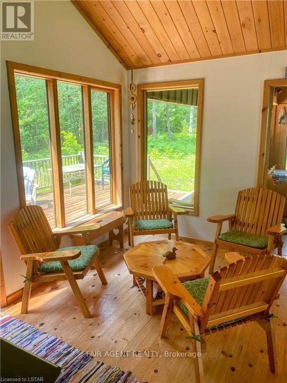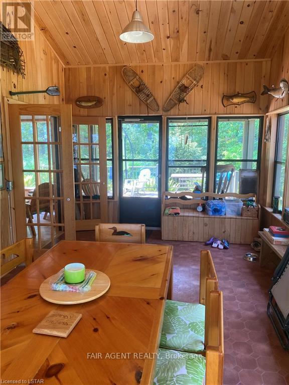 Located on a the South West Island shore of Sandy Island on Lake Nipissing, directly south of Sturgeon Falls. Family friendly, turnkey retreat with 200 feet of safe sandy beach. Just bring your bathing suit and food. Great for swimming, fishing and boating. Good docking. Walkable lot with blended forest (not rocky). Modern 3 bedroom insulated open concept cottage 1536 Sq. Ft. Sleeps 8 plus a bunky. 3 piece bathroom, utility room, large sun room/dining area, open kitchen and living room area with cathedral ceiling throughout and a large south facing deck. Propane appliances with hot water. Gravity fed water system. Generator. Approved legal septic. Sleep Cabin approx 280 square feet with ensuite bathroom and deck. Out house, fire wood, shed, workshop, storage shed. 20-25 minutes from Starlight Marina. A fantastic place for summer and winter is waiting for you! Opportunity for additional adjacent lot 24, 2.4 Acres, sand beach with a rock point - level building lot for second dwelling or for additional privacy. (id:64974)