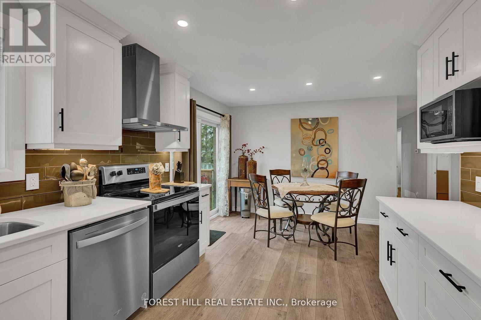 Discover this all-inclusive, main-floor unit, thoughtfully renovated to create a bright and welcoming living space. The updated eat-in kitchen showcases modern stainless steel appliances, under-cabinet lighting, and stylish finishes, with a seamless walkout to a private deck and spacious backyard-perfect for outdoor dining and relaxation. Elegant flooring and pot lights throughout add warmth and character. Enjoy the convenience of private laundry within a well-appointed 5-piece bathroom featuring a double vanity and generous storage. Ideally located, this home offers a perfect balance of contemporary upgrades, comfort, and functionality. (id:64974)
