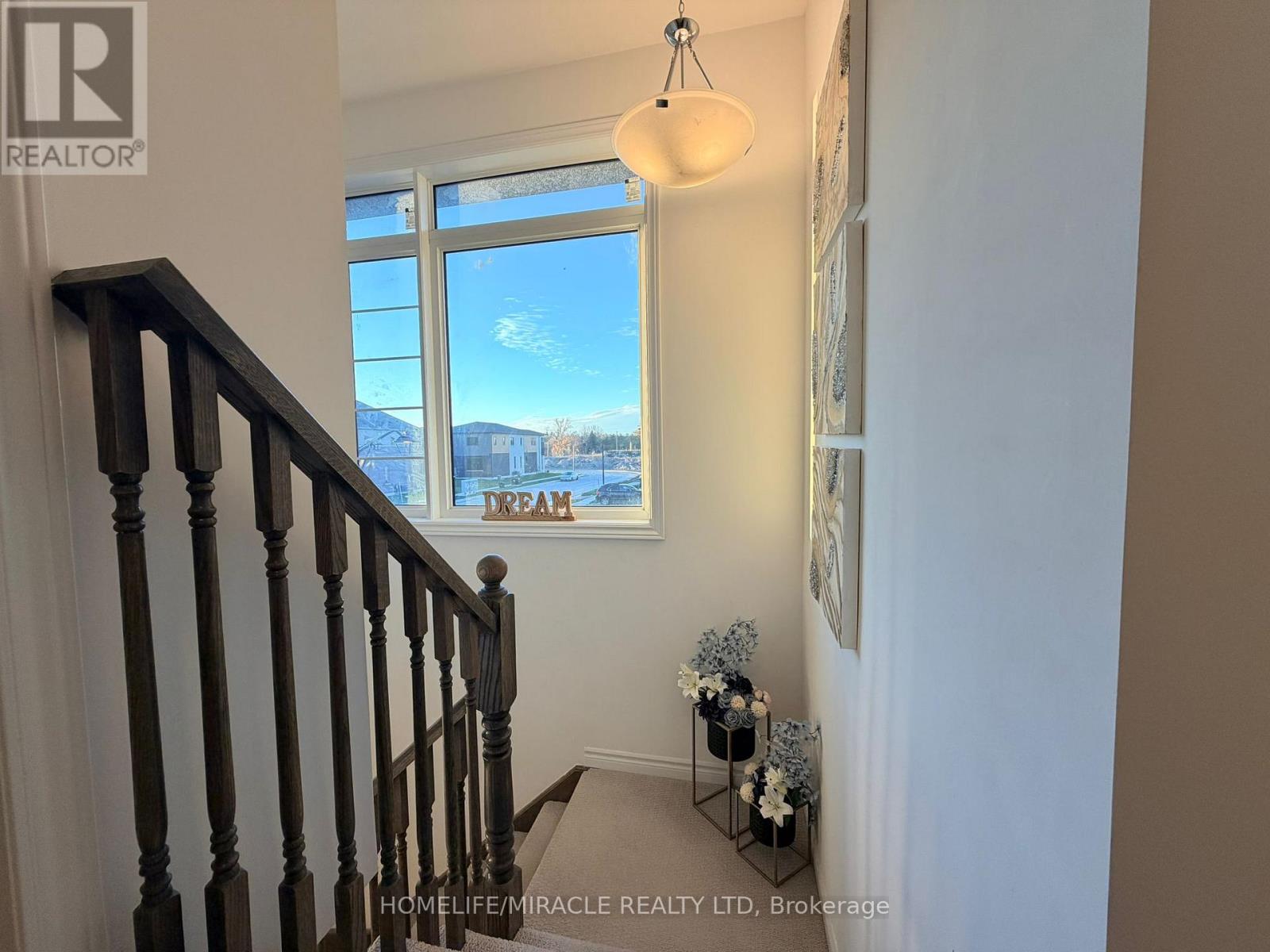 Move-in ready corner enhanced end-unit townhouse in sought-after West Brantford, offering the privacy and feel of a semi-detached home. This bright and spacious 1696 sq. ft., 2-storey freehold home features 3 bedrooms and 2.5 bathrooms, oversized windows for abundant natural light, and 9-ft ceilings on the main floor. The modern kitchen boasts quartz countertops, deep sink, and extended cabinetry, flowing into a generous living and dining area ideal for entertaining. The primary bedroom includes a walk-in closet and private ensuite, complemented by convenient second-floor laundry, direct garage access, and smart garage door control. Prime location with a 1-minute walk to transit, 5 minutes to Sobeys, and easy access to Costco and Lynden Park Mall-corner units like this are rare and rent fast. (id:64974)