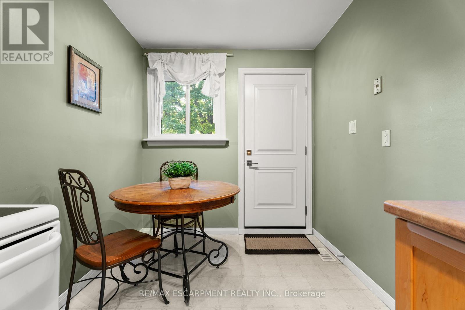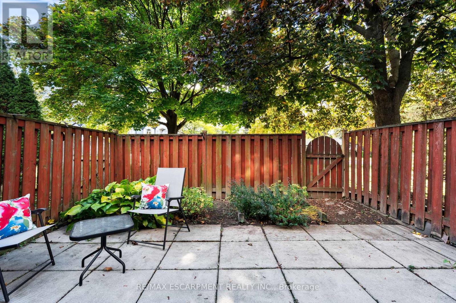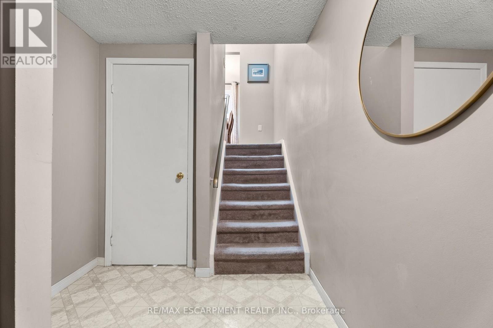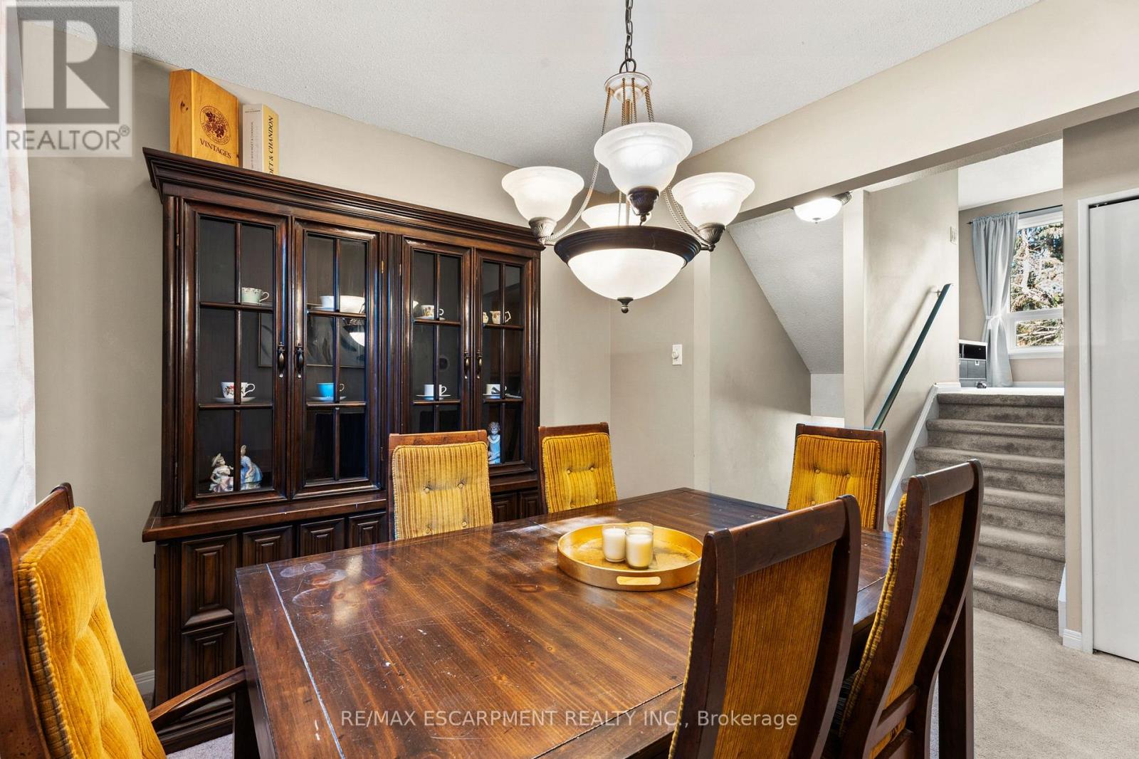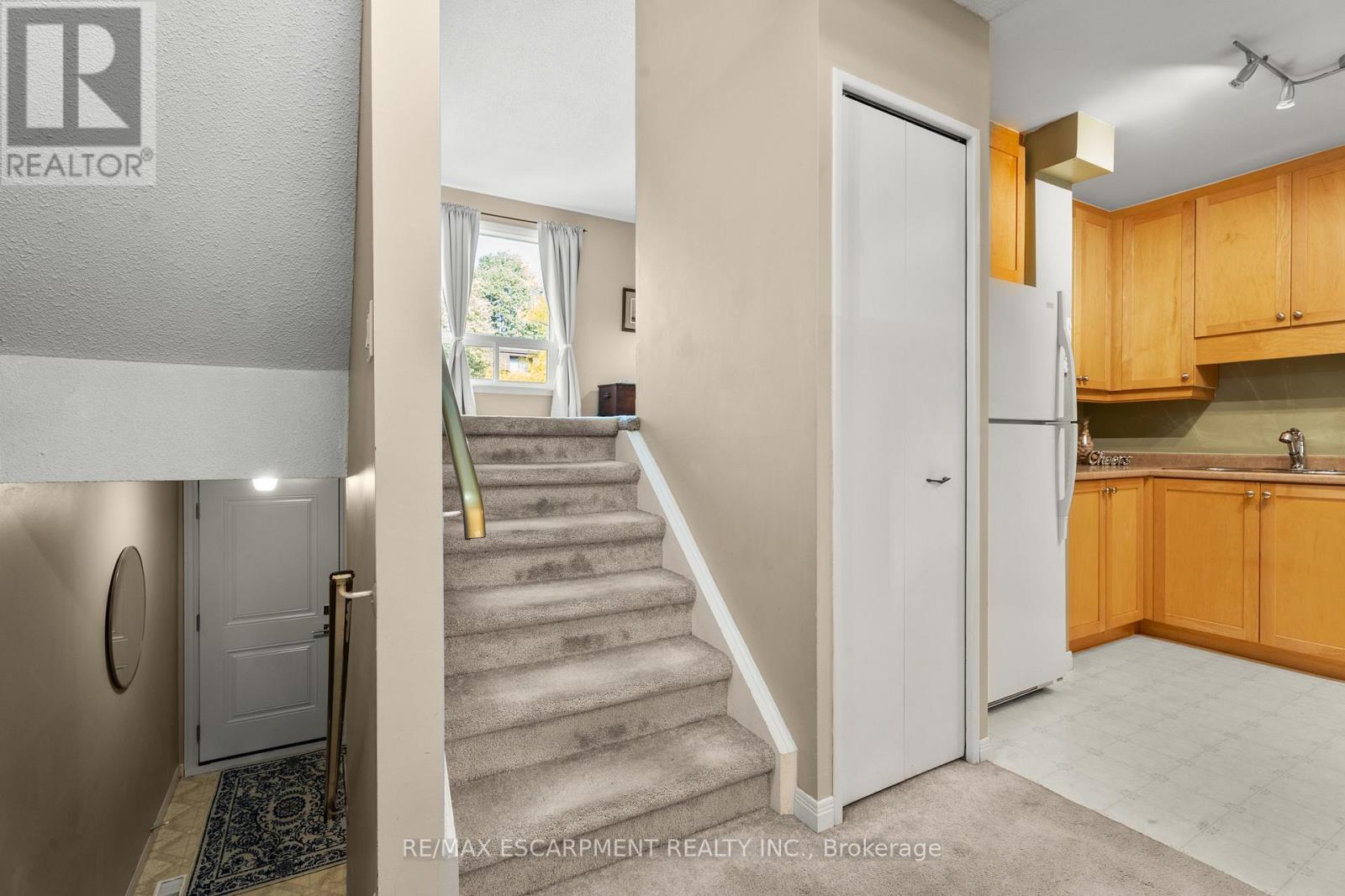 Welcome to this beautifully maintained end-unit townhome in one of Hamilton's most desirable West Mountain communities, set within a family friendly condo complex featuring an on-site park and a comprehensive condo fee that includes Cable TV, High Speed Internet, Water, Building Insurance and Maintenance, Common Elements, and Ground Maintenance/Landscaping. Designed with a unique split-level layout, this home offers the perfect balance of openness and separation across its bright, spacious levels. The welcoming foyer leads up to an eat-in kitchen and dining area with updated cabinetry and direct access to the fenced, low-maintenance yard - perfect for morning coffee or weekend BBQs. Just above, the living room features large windows that fill the space with natural light. The upper levels include a primary bedroom retreat complete with an updated 4-piece bathroom, followed by two additional bedrooms on their own level, offering privacy and flexibility for family, guests, or a home office. The double-deep driveway and garage provide parking for three vehicles. The unfinished basement includes laundry facilities and plenty of storage space. Recent updates include attic and basement insulation (2023), new windows and doors (2025), a furnace replaced 4 years ago, and a whole-home humidifier installed on the furnace this past November. Located close to parks, shopping, schools, and highway access - this home combines comfort, convenience, and value in a sought-after West Mountain neighbourhood. (id:64974)
